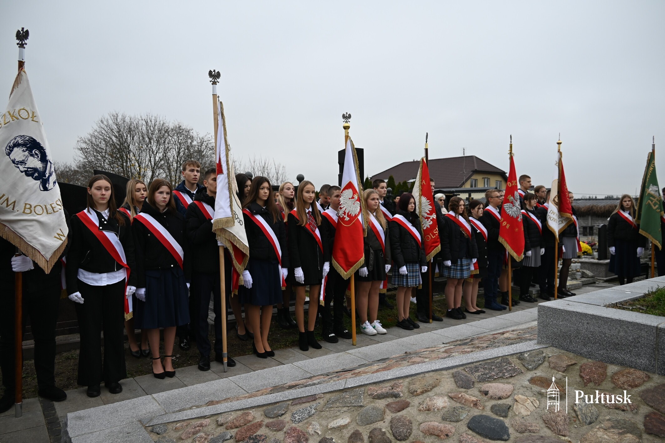 Główna część uroczystości z udziałem pocztów sztandarowych pułtuskich szkół, instytucji i stowarzyszeń odbyła się przy mogile żołnierzy polskich poległych podczas wojny polsko-bolszewickiej w 1920 roku. Wartę honorową w historycznych mundurach pełnili uczniowie Zespołu Szkół Zawodowych im. Jana Ruszkowskiego oraz I Liceum Ogólnokształcącego Centrum Naukowo-Biznesowego Feniks im. 13 Pułku Piechoty w Pułtusku.