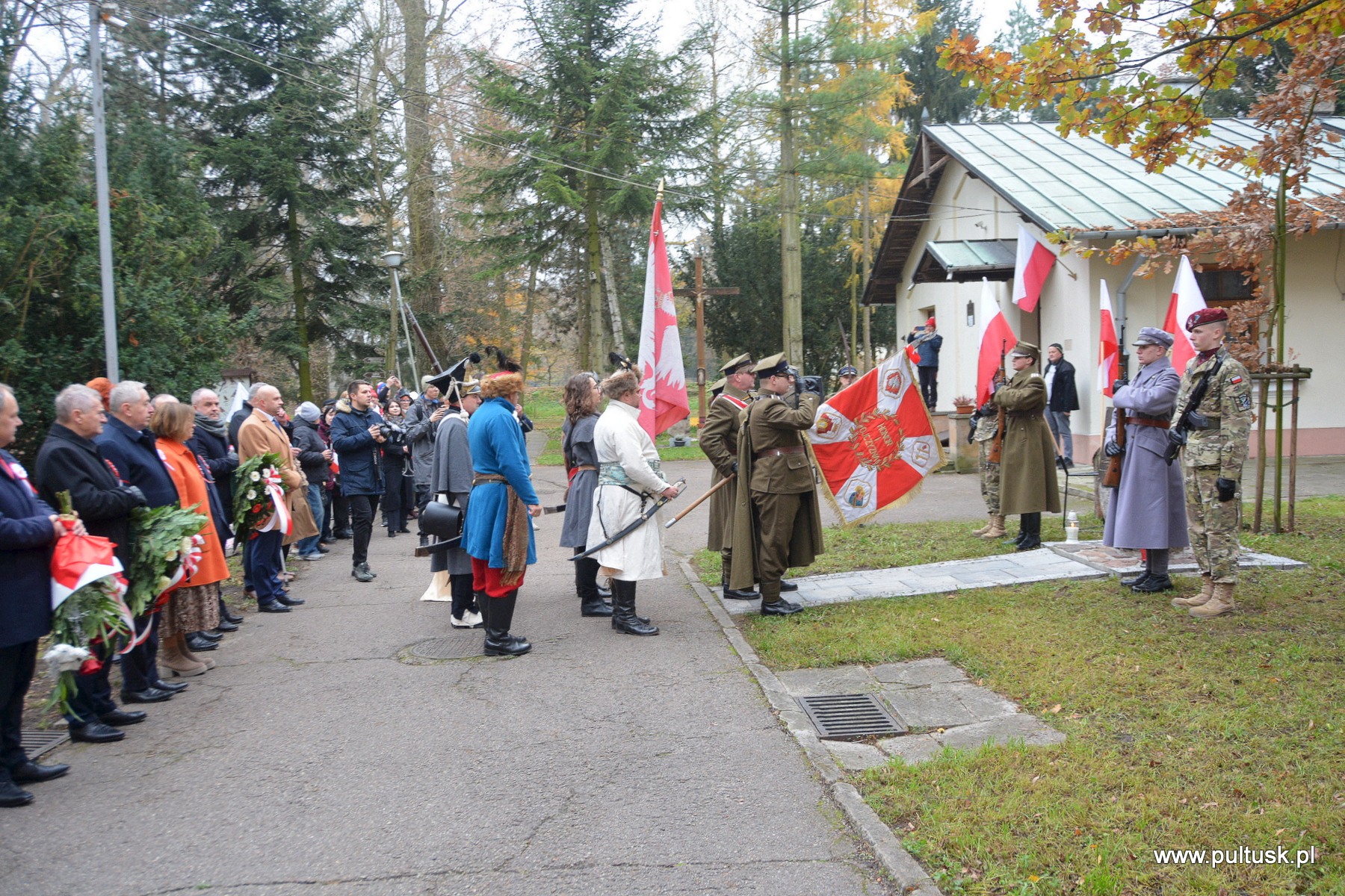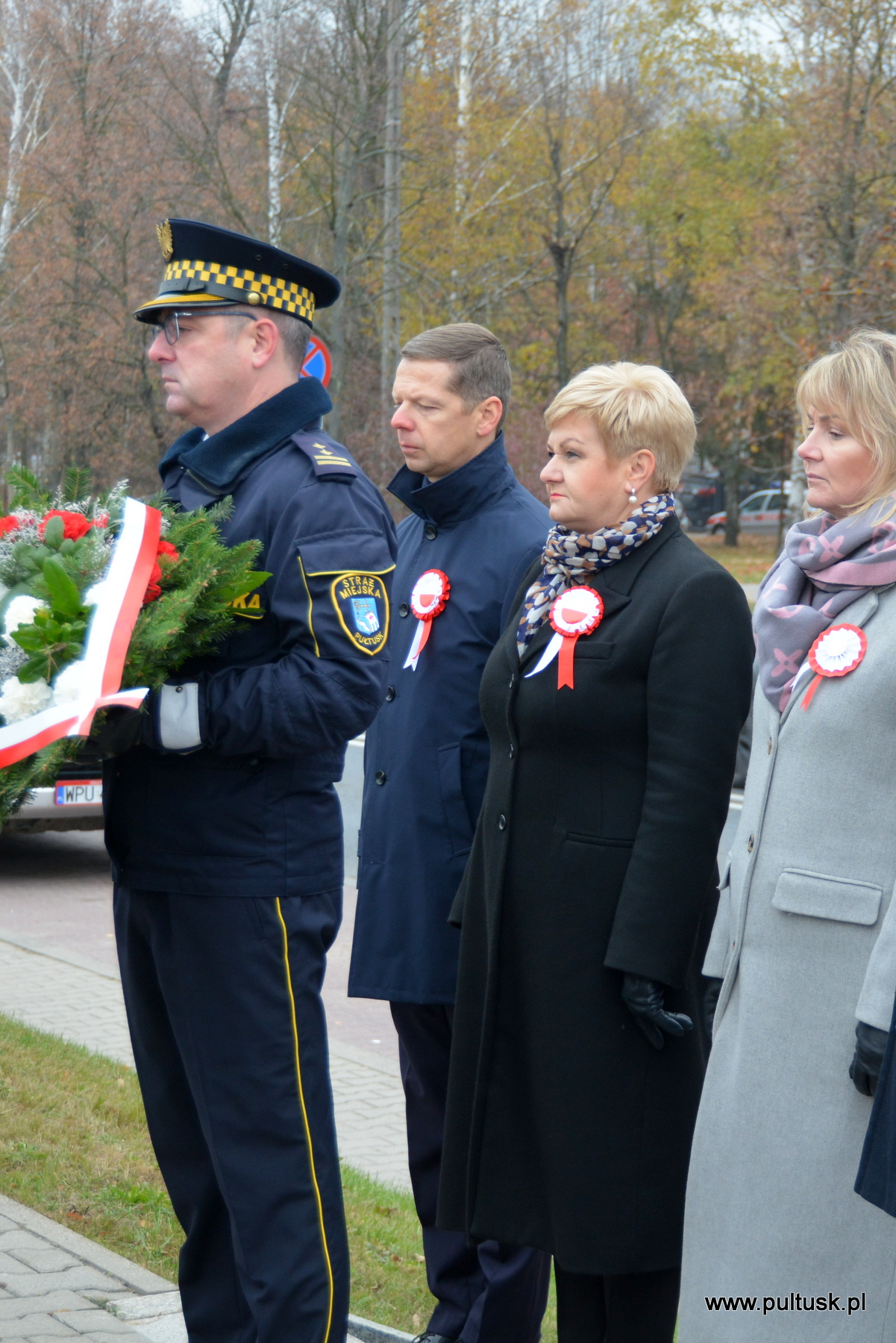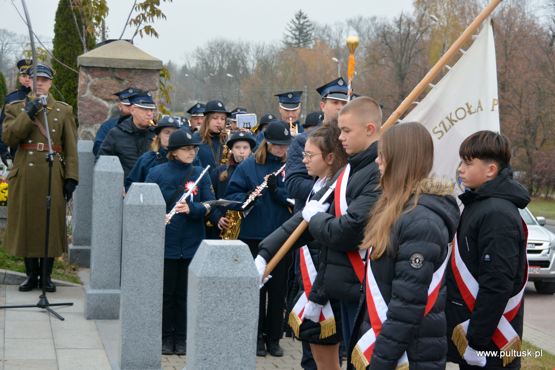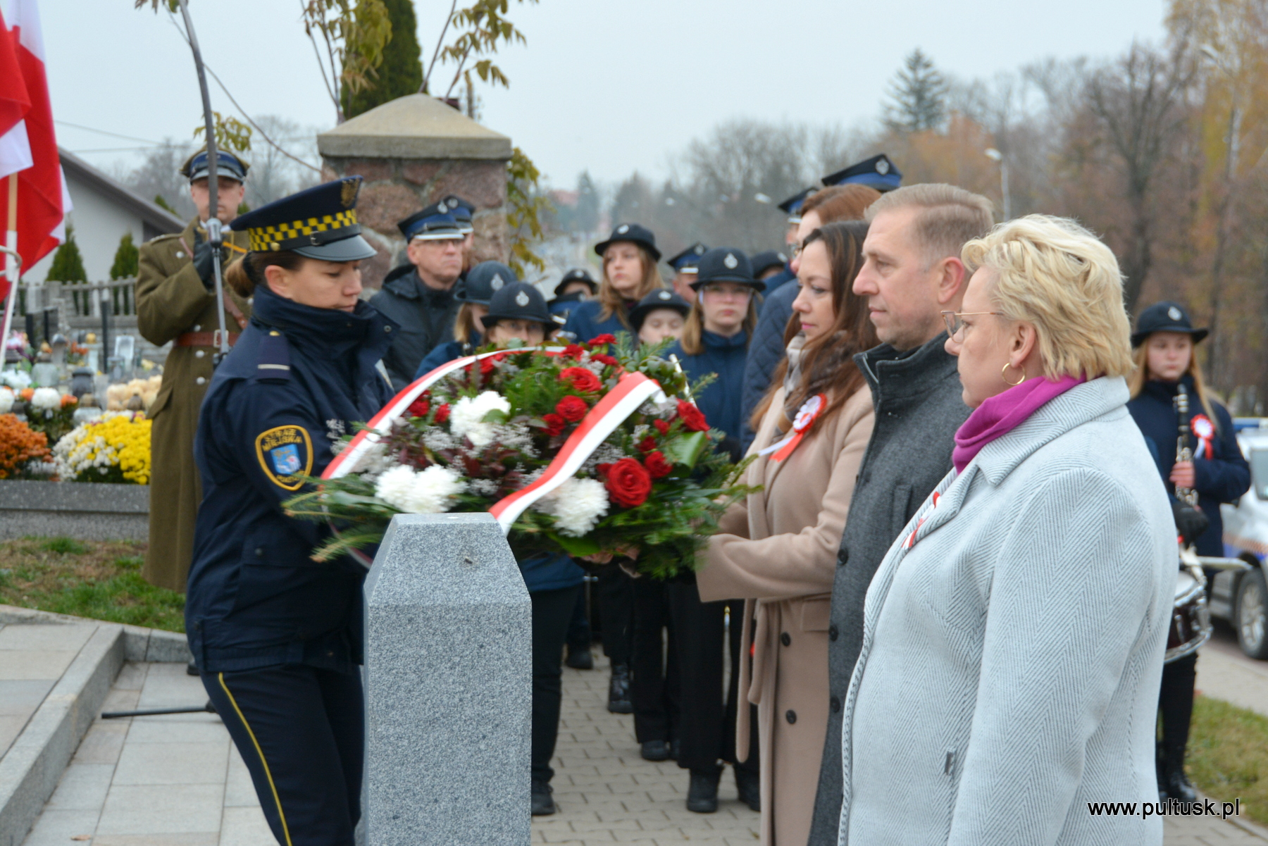11 listopada 2024 r. w Pułtusku odbyły się obchody Narodowego Święta Niepodległości zorganizowane przez Samorządy – Gminy Pułtusk i Powiatu Pułtuskiego. Tradycyjnie zainicjowały je uroczystości złożenia kwiatów pod pomnikami upamiętniającymi Ojców Niepodległości – Marszałka Józefa Piłsudskiego (współorganizowana przez Związek Piłsudczyków RP Oddział w Pułtusku), Ignacego Jana Paderewskiego (współorganizowana przez Stowarzyszenie Wspólnota Polska, Dom Polonii w Pułtusku) oraz Wincentego Witosa (współorganizowana przez Stowarzyszenie Pamięć i Tożsamość im. Wincentego Witosa). Centralna uroczystość pułtuskich obchodów 106. rocznicy odzyskania przez Polskę Niepodległości odbyła się przy mogile żołnierzy poległych w 1920 r. znajdującej się na I cmentarzu w Pułtusku. Wartę honorową wystawiali – Zespół Szkół Zawodowych im. Jana Ruszkowskiego w Pułtusku (w mundurach historycznych pełnili ją Oskar Niezgoda i Bartosz Pasztak) oraz I Liceum Ogólnokształcące Centrum Naukowo – Biznesowego im. 13 Pułku Piechoty w Pułtusku (w mundurach szkolnych pełnili ją Mateusz Obłuski i Bartosz Kaczmarczyk). Dowódca uroczystości był rekonstruktor Artur Samsel. Uroczystość rozpoczęło podniesienie flagi państwowej na maszt i odegranie hymnu państwowego. W skład pocztu flagowego wchodzili: sierżant rezerwy Piotr Jaszczułt – członek Pułtuskiej Grupy Rekonstrukcji Historycznej 13 Pułku Piechoty, aspirant Patryk Todorowski – funkcjonariusz Komendy Powiatowej Państwowej Straży Pożarnej w Pułtusku, starszy sierżant Łukasz Pilarski – funkcjonariusz Komendy Powiatowej Policji w Pułtusku. Oprawę muzyczną uroczystości zapewniała Miejska Młodzieżowa Orkiestra Dęta Ochotniczej Straży Pożarnej w Pułtusku. Nauczyciel historii w Zespole Szkolno – Przedszkolnym w Przemiarowie Maciej Kaźmierczak przedstawił rys historyczny, a następnie głos zabrał ksiądz kanonik Jarosław Arbat, Proboszcz Parafii św. Mateusza w Pułtusku, który zainicjował modlitwę w intencji poległych za Ojczyznę. W imieniu Samorządu Gminy Pułtusk wiązankę kwiatów złożyli: Burmistrz Miasta Pułtusk Beata Jóźwiak, Wiceprzewodnicząca Rady Miejskiej w Pułtusku Beata Bielińska, Zastępca Burmistrza Miasta Pułtusk Mateusz Miłoszewski, Radny Rady Miejskiej w Pułtusku Andrzej Wydra w asyście Komendanta Straży Miejskiej w Pułtusku Mariusza Gajkowskiego. Uroczystość zwieńczył akcent muzyczny – wiązanka pieśni patriotycznych w wykonaniu Miejskiej Młodzieżowej Orkiestry Dętej Ochotniczej Straży Pożarnej w Pułtusku. Kolejnym elementem obchodów była uroczysta Msza św. odprawiona z pułtuskiej Bazylice, którą poprzedził program artystyczny „Za tę wolność… dziękujemy”, w wykonaniu uczniów, nauczycieli i rodziców Publicznej Szkoły Podstawowej nr 1 im. Klaudyny Potockiej w Pułtusku.