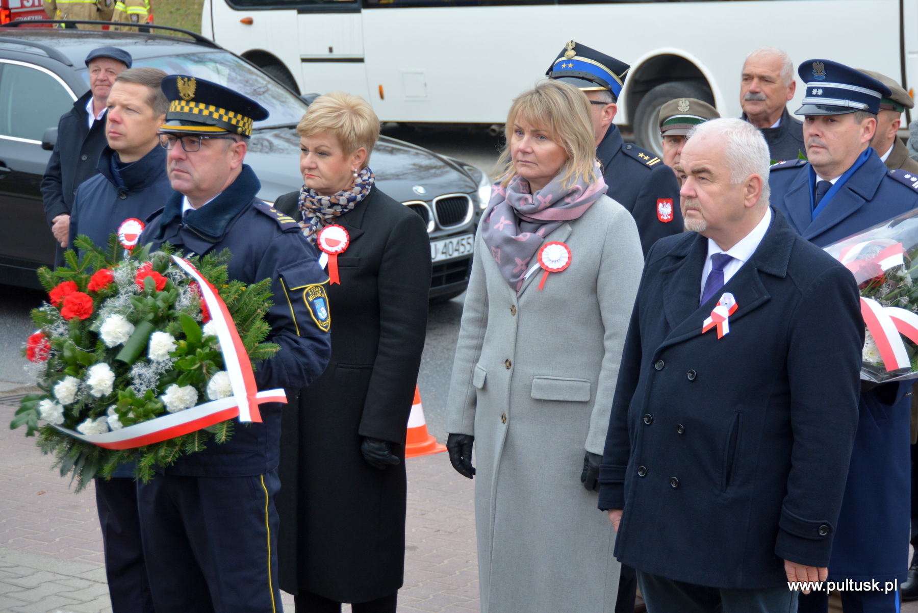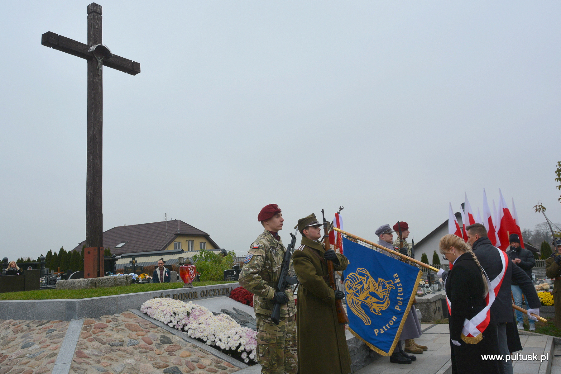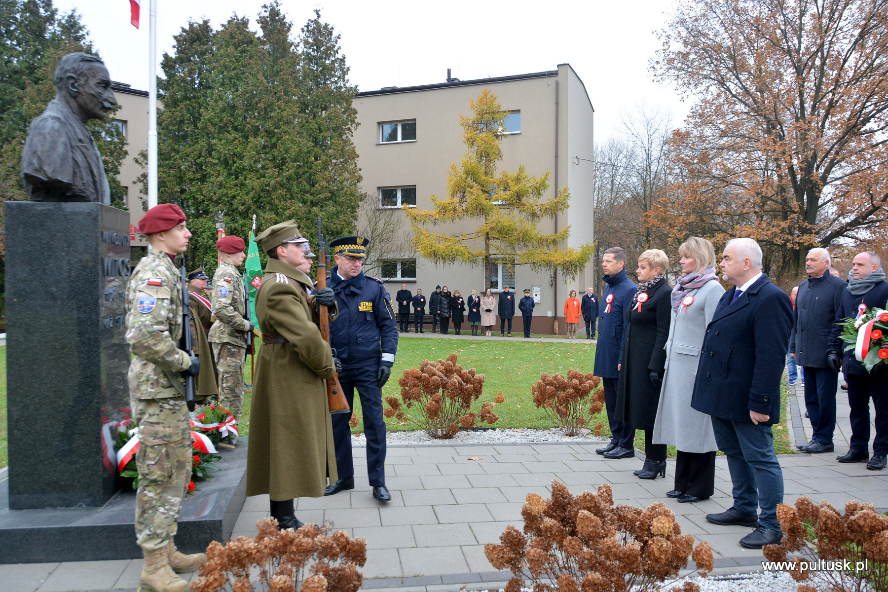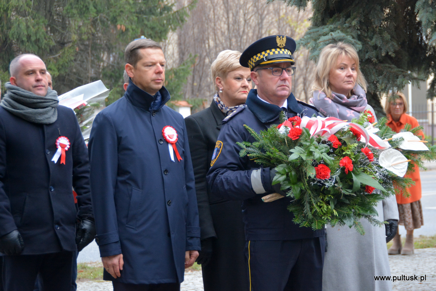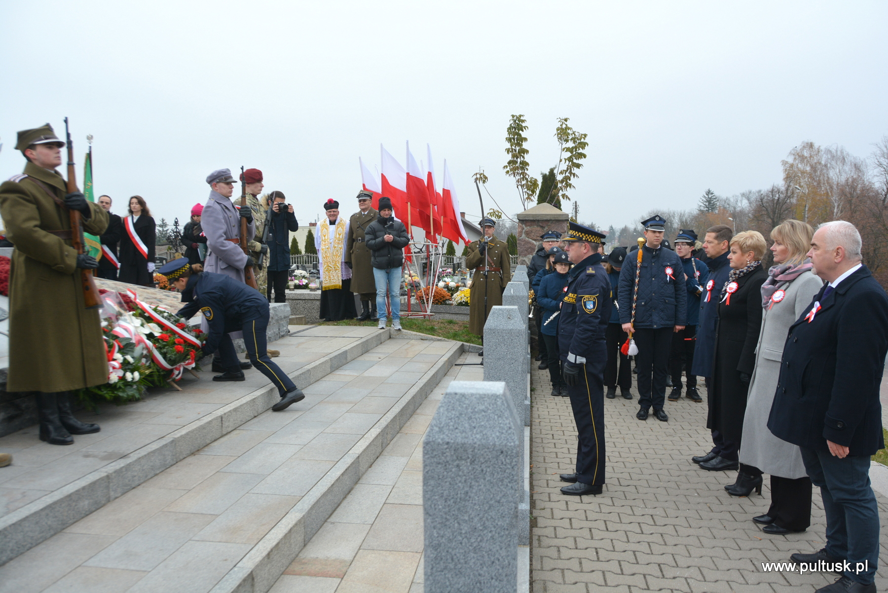 11 listopada 2024 r. w Pułtusku odbyły się obchody Narodowego Święta Niepodległości zorganizowane przez Samorządy – Gminy Pułtusk i Powiatu Pułtuskiego. Tradycyjnie zainicjowały je uroczystości złożenia kwiatów pod pomnikami upamiętniającymi Ojców Niepodległości – Marszałka Józefa Piłsudskiego (współorganizowana przez Związek Piłsudczyków RP Oddział w Pułtusku), Ignacego Jana Paderewskiego (współorganizowana przez Stowarzyszenie Wspólnota Polska, Dom Polonii w Pułtusku) oraz Wincentego Witosa (współorganizowana przez Stowarzyszenie Pamięć i Tożsamość im. Wincentego Witosa). Centralna uroczystość pułtuskich obchodów 106. rocznicy odzyskania przez Polskę Niepodległości odbyła się przy mogile żołnierzy poległych w 1920 r. znajdującej się na I cmentarzu w Pułtusku. Wartę honorową wystawiali – Zespół Szkół Zawodowych im. Jana Ruszkowskiego w Pułtusku (w mundurach historycznych pełnili ją Oskar Niezgoda i Bartosz Pasztak) oraz I Liceum Ogólnokształcące Centrum Naukowo – Biznesowego im. 13 Pułku Piechoty w Pułtusku (w mundurach szkolnych pełnili ją Mateusz Obłuski i Bartosz Kaczmarczyk). Dowódca uroczystości był rekonstruktor Artur Samsel. Uroczystość rozpoczęło podniesienie flagi państwowej na maszt i odegranie hymnu państwowego. W skład pocztu flagowego wchodzili: sierżant rezerwy Piotr Jaszczułt – członek Pułtuskiej Grupy Rekonstrukcji Historycznej 13 Pułku Piechoty, aspirant Patryk Todorowski – funkcjonariusz Komendy Powiatowej Państwowej Straży Pożarnej w Pułtusku, starszy sierżant Łukasz Pilarski – funkcjonariusz Komendy Powiatowej Policji w Pułtusku. Oprawę muzyczną uroczystości zapewniała Miejska Młodzieżowa Orkiestra Dęta Ochotniczej Straży Pożarnej w Pułtusku. Nauczyciel historii w Zespole Szkolno – Przedszkolnym w Przemiarowie Maciej Kaźmierczak przedstawił rys historyczny, a następnie głos zabrał ksiądz kanonik Jarosław Arbat, Proboszcz Parafii św. Mateusza w Pułtusku, który zainicjował modlitwę w intencji poległych za Ojczyznę. W imieniu Samorządu Gminy Pułtusk wiązankę kwiatów złożyli: Burmistrz Miasta Pułtusk Beata Jóźwiak, Wiceprzewodnicząca Rady Miejskiej w Pułtusku Beata Bielińska, Zastępca Burmistrza Miasta Pułtusk Mateusz Miłoszewski, Radny Rady Miejskiej w Pułtusku Andrzej Wydra w asyście Komendanta Straży Miejskiej w Pułtusku Mariusza Gajkowskiego. Uroczystość zwieńczył akcent muzyczny – wiązanka pieśni patriotycznych w wykonaniu Miejskiej Młodzieżowej Orkiestry Dętej Ochotniczej Straży Pożarnej w Pułtusku. Kolejnym elementem obchodów była uroczysta Msza św. odprawiona z pułtuskiej Bazylice, którą poprzedził program artystyczny „Za tę wolność… dziękujemy”, w wykonaniu uczniów, nauczycieli i rodziców Publicznej Szkoły Podstawowej nr 1 im. Klaudyny Potockiej w Pułtusku.