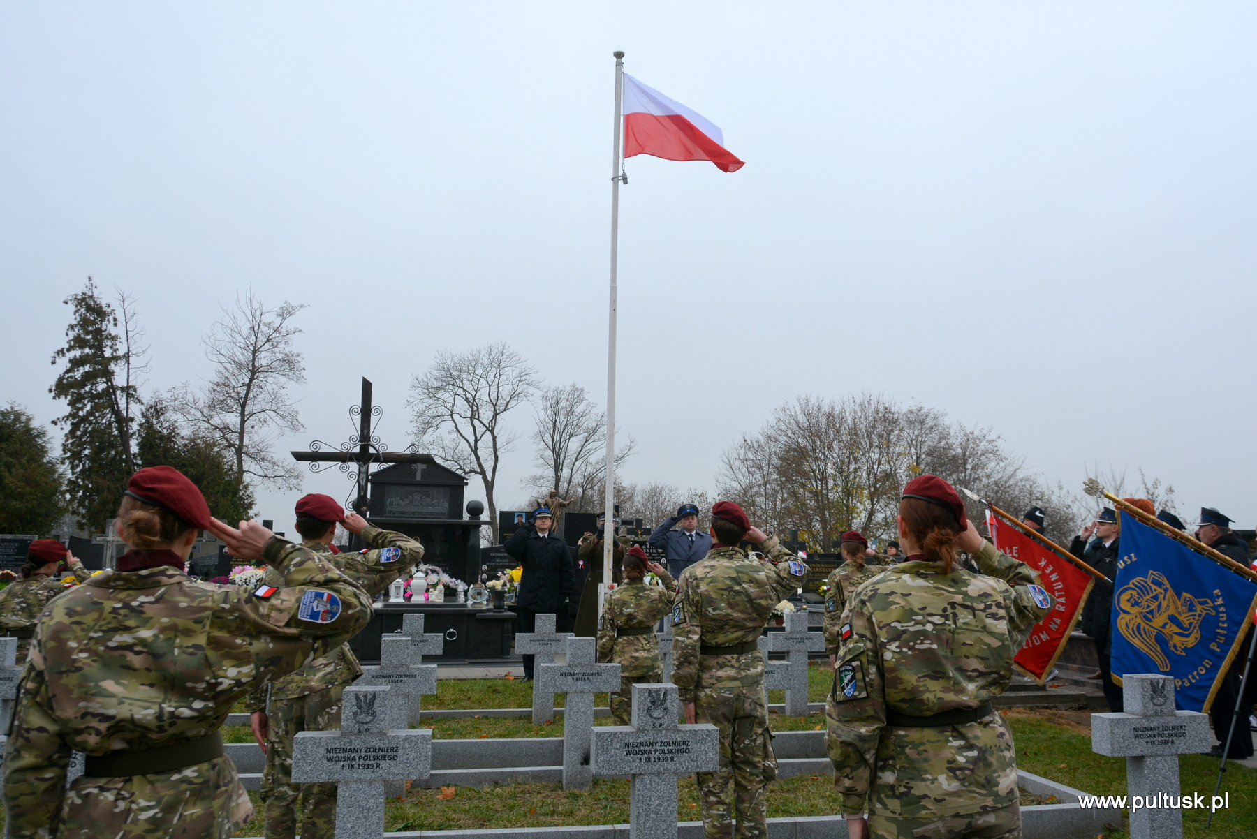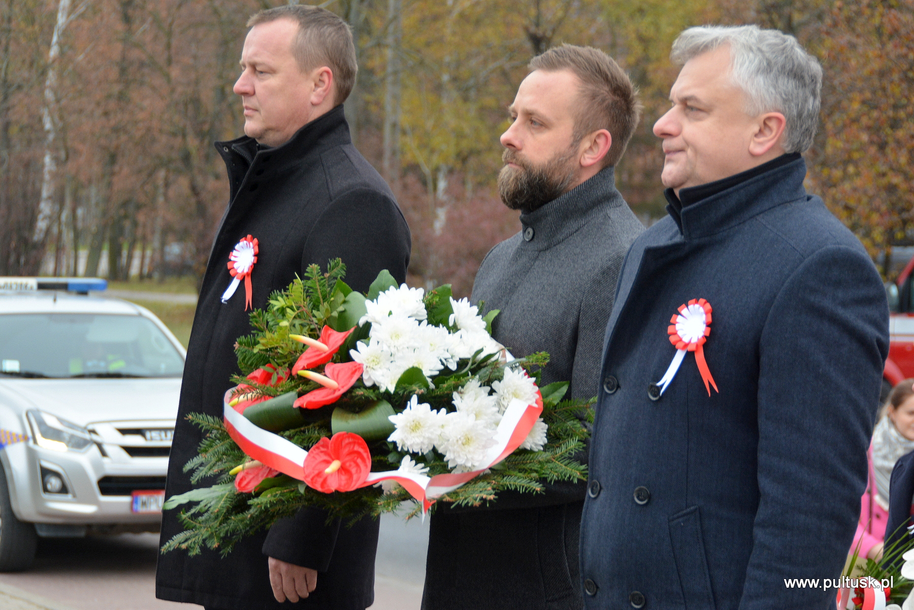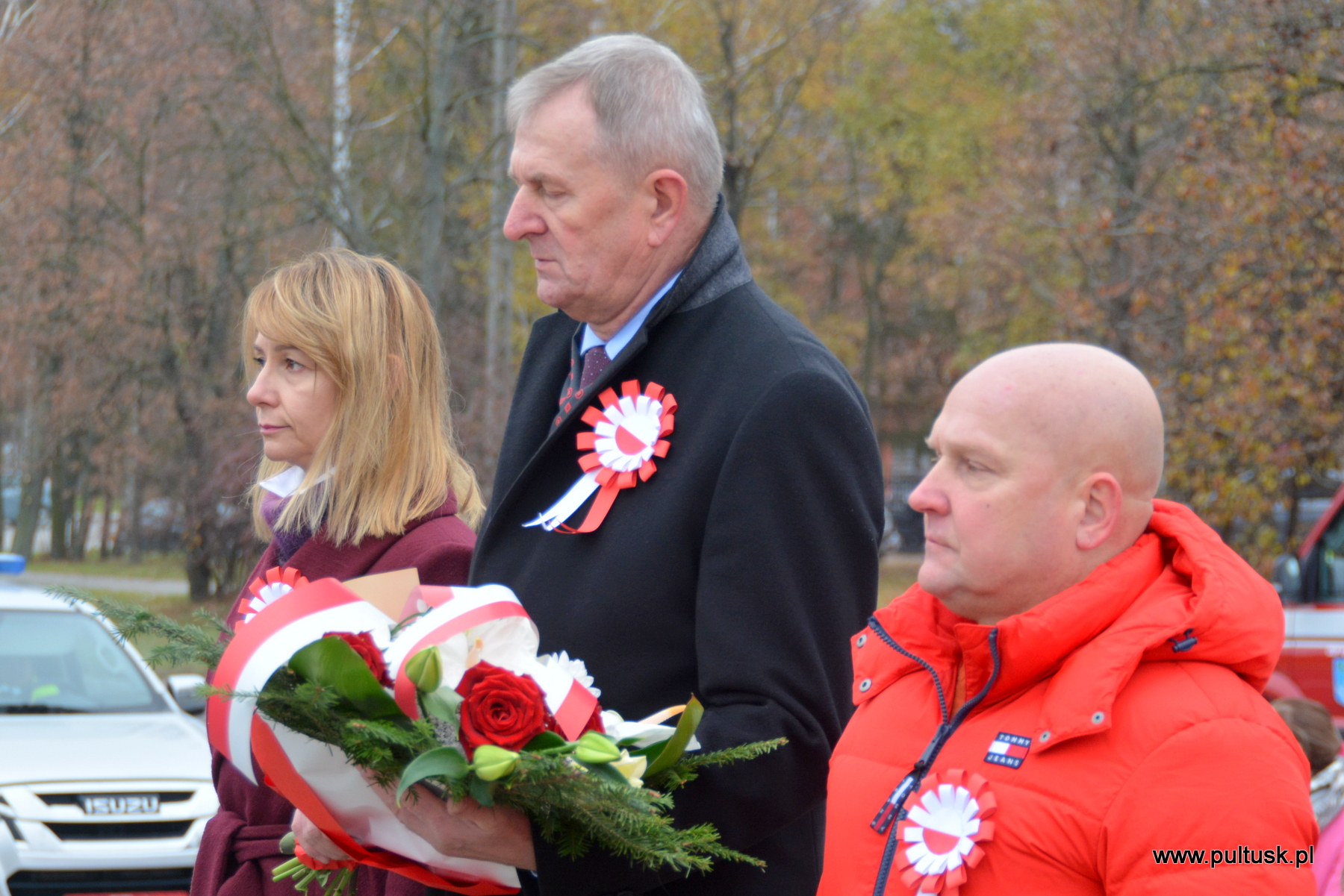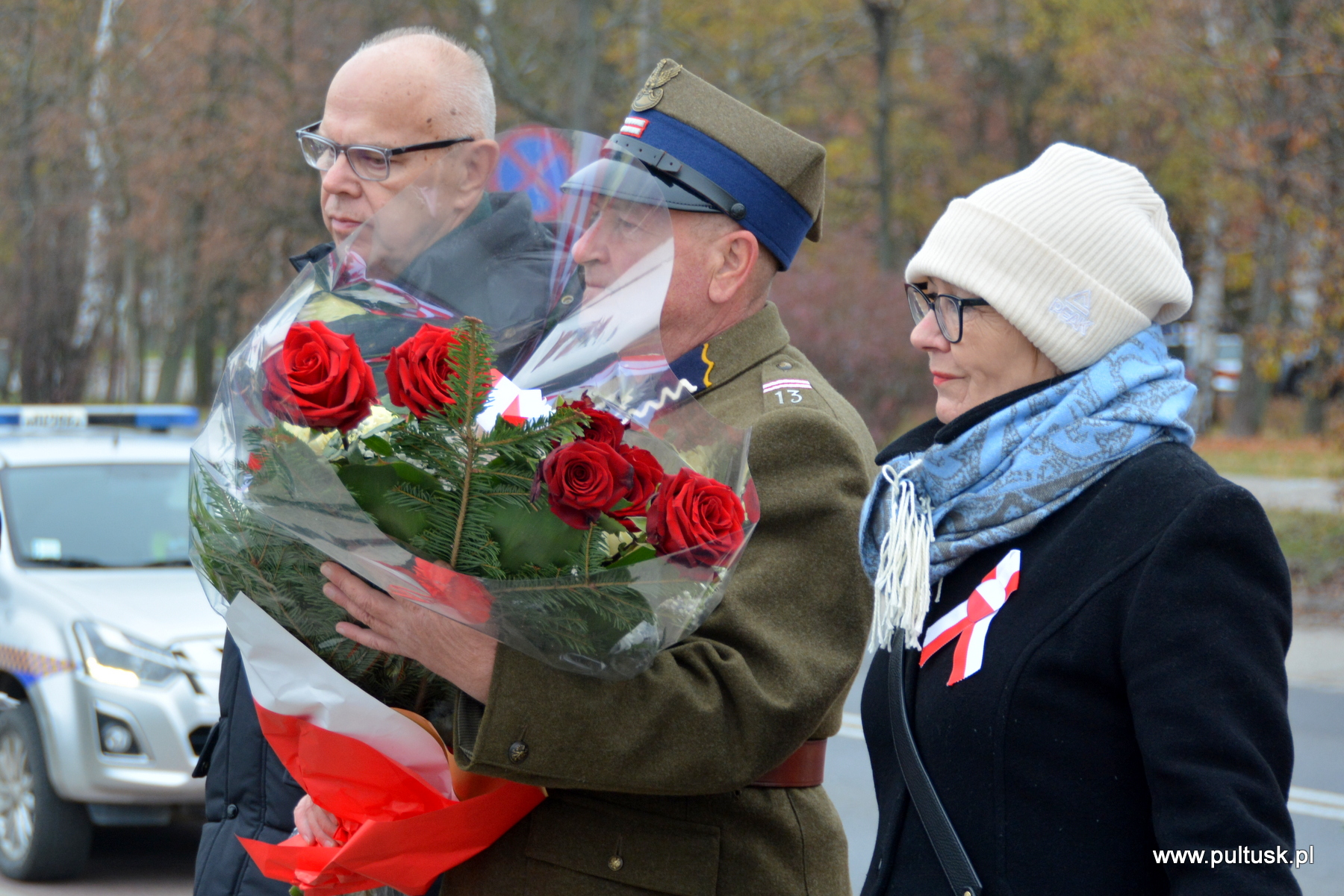 11 listopada 2024 r. w Pułtusku odbyły się obchody Narodowego Święta Niepodległości zorganizowane przez Samorządy – Gminy Pułtusk i Powiatu Pułtuskiego. Tradycyjnie zainicjowały je uroczystości złożenia kwiatów pod pomnikami upamiętniającymi Ojców Niepodległości – Marszałka Józefa Piłsudskiego (współorganizowana przez Związek Piłsudczyków RP Oddział w Pułtusku), Ignacego Jana Paderewskiego (współorganizowana przez Stowarzyszenie Wspólnota Polska, Dom Polonii w Pułtusku) oraz Wincentego Witosa (współorganizowana przez Stowarzyszenie Pamięć i Tożsamość im. Wincentego Witosa). Centralna uroczystość pułtuskich obchodów 106. rocznicy odzyskania przez Polskę Niepodległości odbyła się przy mogile żołnierzy poległych w 1920 r. znajdującej się na I cmentarzu w Pułtusku. Wartę honorową wystawiali – Zespół Szkół Zawodowych im. Jana Ruszkowskiego w Pułtusku (w mundurach historycznych pełnili ją Oskar Niezgoda i Bartosz Pasztak) oraz I Liceum Ogólnokształcące Centrum Naukowo – Biznesowego im. 13 Pułku Piechoty w Pułtusku (w mundurach szkolnych pełnili ją Mateusz Obłuski i Bartosz Kaczmarczyk). Dowódca uroczystości był rekonstruktor Artur Samsel. Uroczystość rozpoczęło podniesienie flagi państwowej na maszt i odegranie hymnu państwowego. W skład pocztu flagowego wchodzili: sierżant rezerwy Piotr Jaszczułt – członek Pułtuskiej Grupy Rekonstrukcji Historycznej 13 Pułku Piechoty, aspirant Patryk Todorowski – funkcjonariusz Komendy Powiatowej Państwowej Straży Pożarnej w Pułtusku, starszy sierżant Łukasz Pilarski – funkcjonariusz Komendy Powiatowej Policji w Pułtusku. Oprawę muzyczną uroczystości zapewniała Miejska Młodzieżowa Orkiestra Dęta Ochotniczej Straży Pożarnej w Pułtusku. Nauczyciel historii w Zespole Szkolno – Przedszkolnym w Przemiarowie Maciej Kaźmierczak przedstawił rys historyczny, a następnie głos zabrał ksiądz kanonik Jarosław Arbat, Proboszcz Parafii św. Mateusza w Pułtusku, który zainicjował modlitwę w intencji poległych za Ojczyznę. W imieniu Samorządu Gminy Pułtusk wiązankę kwiatów złożyli: Burmistrz Miasta Pułtusk Beata Jóźwiak, Wiceprzewodnicząca Rady Miejskiej w Pułtusku Beata Bielińska, Zastępca Burmistrza Miasta Pułtusk Mateusz Miłoszewski, Radny Rady Miejskiej w Pułtusku Andrzej Wydra w asyście Komendanta Straży Miejskiej w Pułtusku Mariusza Gajkowskiego. Uroczystość zwieńczył akcent muzyczny – wiązanka pieśni patriotycznych w wykonaniu Miejskiej Młodzieżowej Orkiestry Dętej Ochotniczej Straży Pożarnej w Pułtusku. Kolejnym elementem obchodów była uroczysta Msza św. odprawiona z pułtuskiej Bazylice, którą poprzedził program artystyczny „Za tę wolność… dziękujemy”, w wykonaniu uczniów, nauczycieli i rodziców Publicznej Szkoły Podstawowej nr 1 im. Klaudyny Potockiej w Pułtusku.