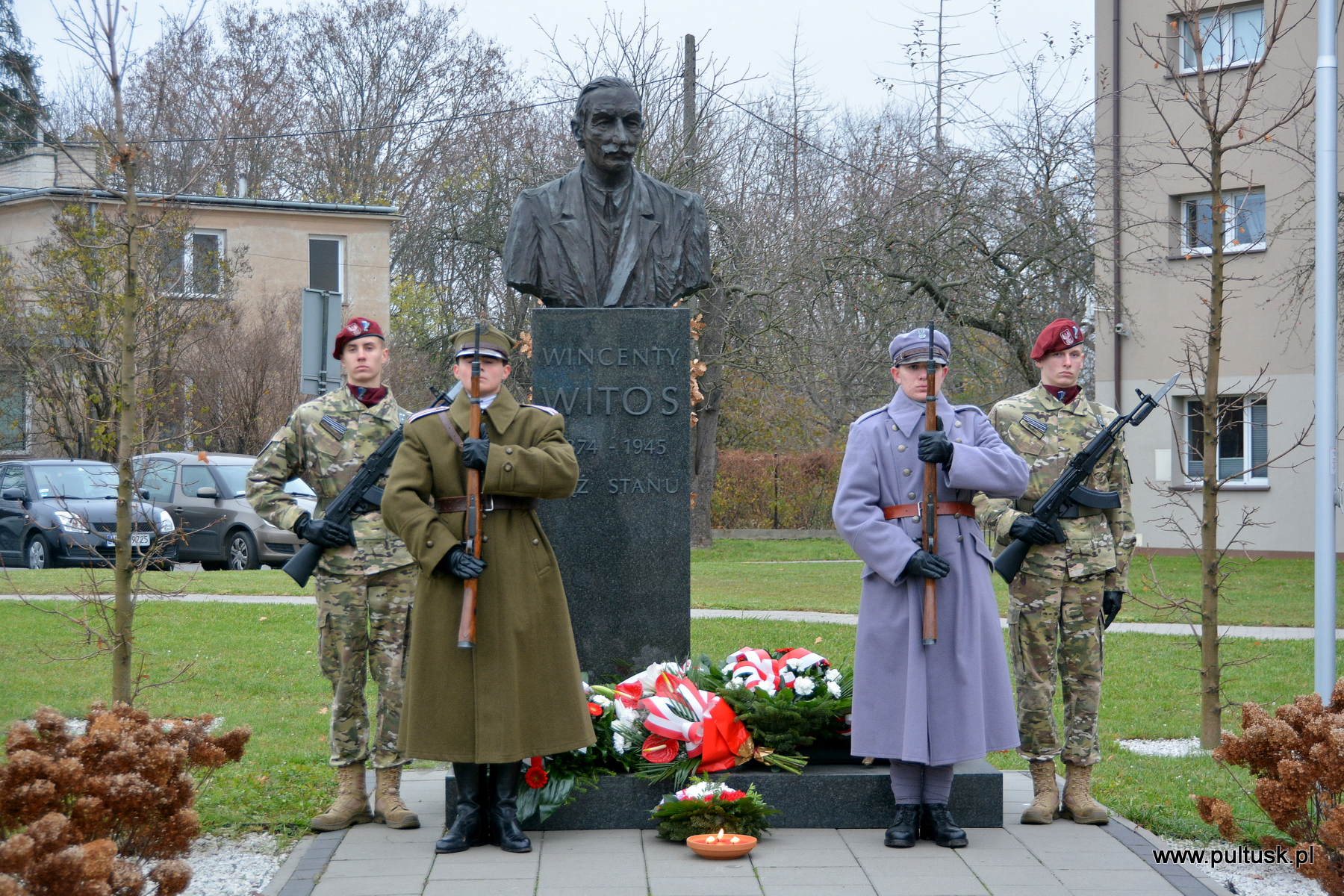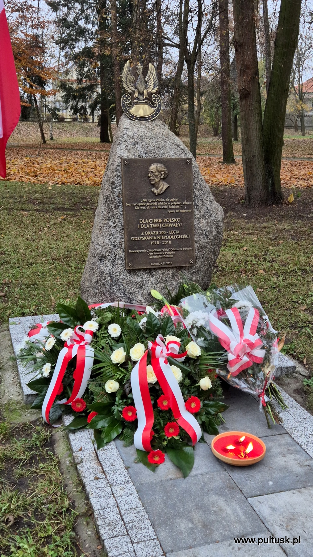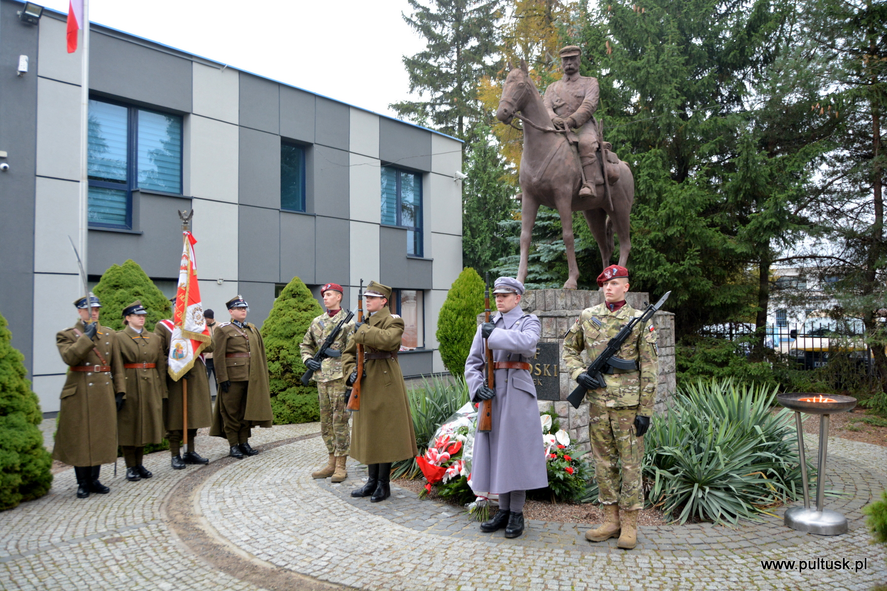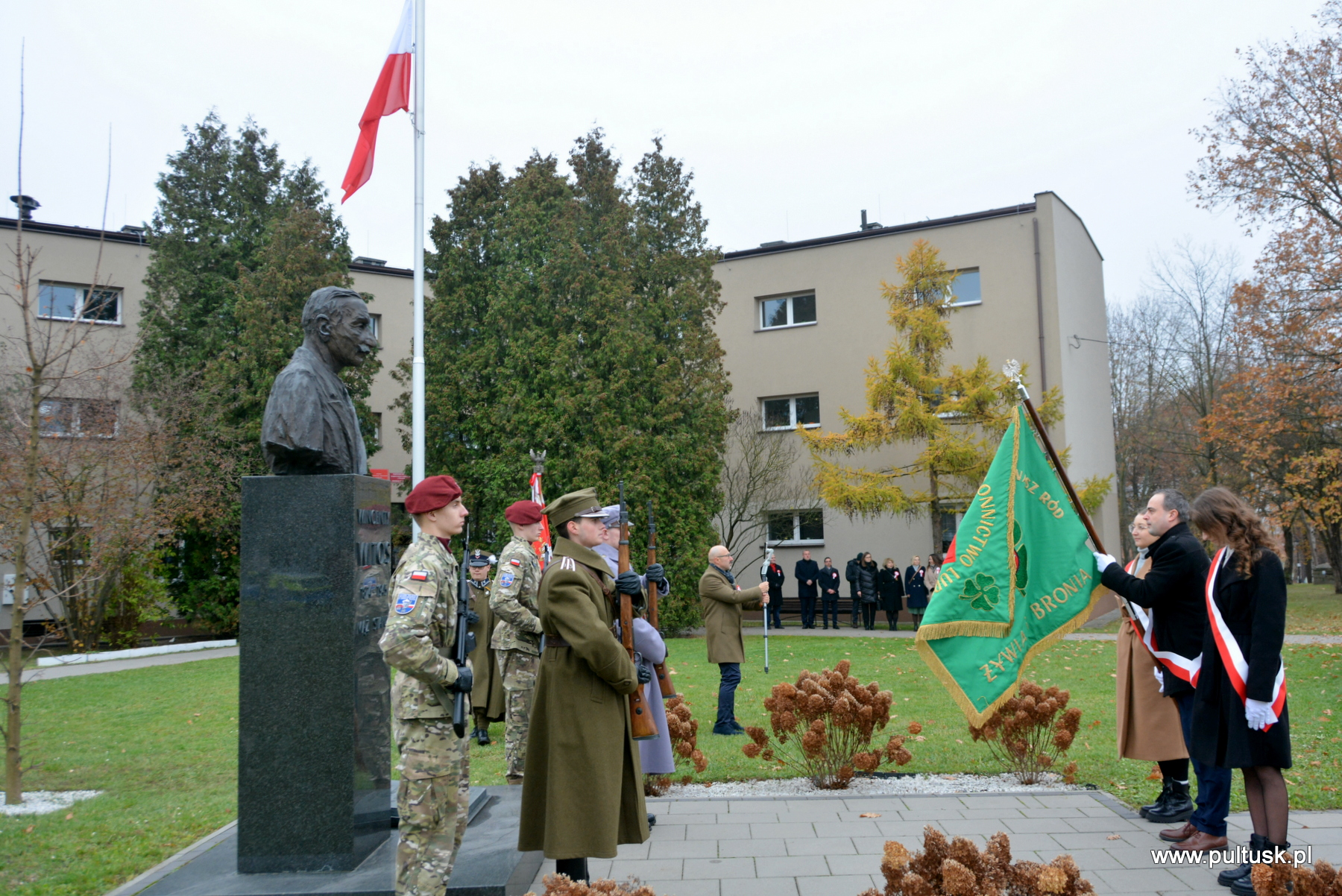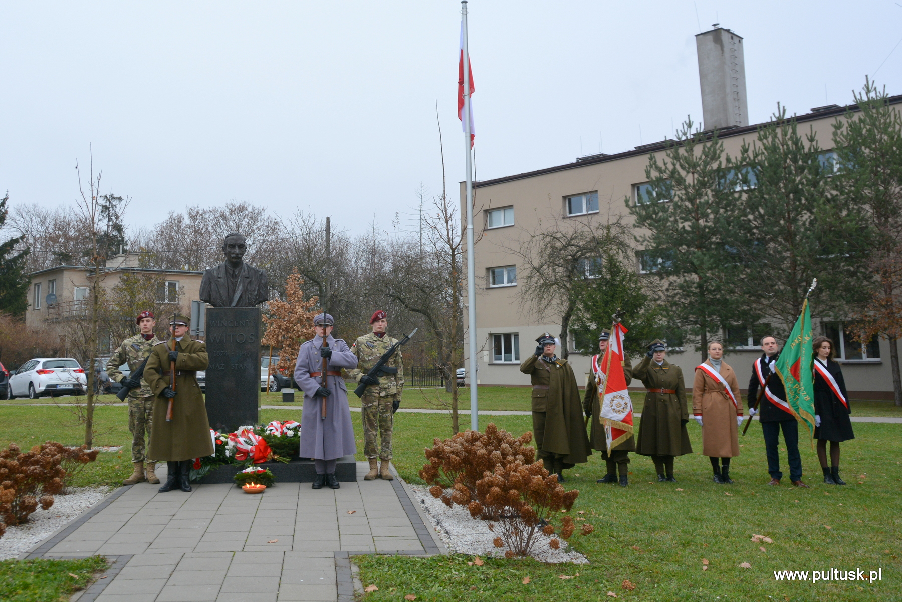11 listopada 2024 r. w Pułtusku odbyły się obchody Narodowego Święta Niepodległości zorganizowane przez Samorządy – Gminy Pułtusk i Powiatu Pułtuskiego. Tradycyjnie zainicjowały je uroczystości złożenia kwiatów pod pomnikami upamiętniającymi Ojców Niepodległości – Marszałka Józefa Piłsudskiego (współorganizowana przez Związek Piłsudczyków RP Oddział w Pułtusku), Ignacego Jana Paderewskiego (współorganizowana przez Stowarzyszenie Wspólnota Polska, Dom Polonii w Pułtusku) oraz Wincentego Witosa (współorganizowana przez Stowarzyszenie Pamięć i Tożsamość im. Wincentego Witosa). Centralna uroczystość pułtuskich obchodów 106. rocznicy odzyskania przez Polskę Niepodległości odbyła się przy mogile żołnierzy poległych w 1920 r. znajdującej się na I cmentarzu w Pułtusku. Wartę honorową wystawiali – Zespół Szkół Zawodowych im. Jana Ruszkowskiego w Pułtusku (w mundurach historycznych pełnili ją Oskar Niezgoda i Bartosz Pasztak) oraz I Liceum Ogólnokształcące Centrum Naukowo – Biznesowego im. 13 Pułku Piechoty w Pułtusku (w mundurach szkolnych pełnili ją Mateusz Obłuski i Bartosz Kaczmarczyk). Dowódca uroczystości był rekonstruktor Artur Samsel. Uroczystość rozpoczęło podniesienie flagi państwowej na maszt i odegranie hymnu państwowego. W skład pocztu flagowego wchodzili: sierżant rezerwy Piotr Jaszczułt – członek Pułtuskiej Grupy Rekonstrukcji Historycznej 13 Pułku Piechoty, aspirant Patryk Todorowski – funkcjonariusz Komendy Powiatowej Państwowej Straży Pożarnej w Pułtusku, starszy sierżant Łukasz Pilarski – funkcjonariusz Komendy Powiatowej Policji w Pułtusku. Oprawę muzyczną uroczystości zapewniała Miejska Młodzieżowa Orkiestra Dęta Ochotniczej Straży Pożarnej w Pułtusku. Nauczyciel historii w Zespole Szkolno – Przedszkolnym w Przemiarowie Maciej Kaźmierczak przedstawił rys historyczny, a następnie głos zabrał ksiądz kanonik Jarosław Arbat, Proboszcz Parafii św. Mateusza w Pułtusku, który zainicjował modlitwę w intencji poległych za Ojczyznę. W imieniu Samorządu Gminy Pułtusk wiązankę kwiatów złożyli: Burmistrz Miasta Pułtusk Beata Jóźwiak, Wiceprzewodnicząca Rady Miejskiej w Pułtusku Beata Bielińska, Zastępca Burmistrza Miasta Pułtusk Mateusz Miłoszewski, Radny Rady Miejskiej w Pułtusku Andrzej Wydra w asyście Komendanta Straży Miejskiej w Pułtusku Mariusza Gajkowskiego. Uroczystość zwieńczył akcent muzyczny – wiązanka pieśni patriotycznych w wykonaniu Miejskiej Młodzieżowej Orkiestry Dętej Ochotniczej Straży Pożarnej w Pułtusku. Kolejnym elementem obchodów była uroczysta Msza św. odprawiona z pułtuskiej Bazylice, którą poprzedził program artystyczny „Za tę wolność… dziękujemy”, w wykonaniu uczniów, nauczycieli i rodziców Publicznej Szkoły Podstawowej nr 1 im. Klaudyny Potockiej w Pułtusku.