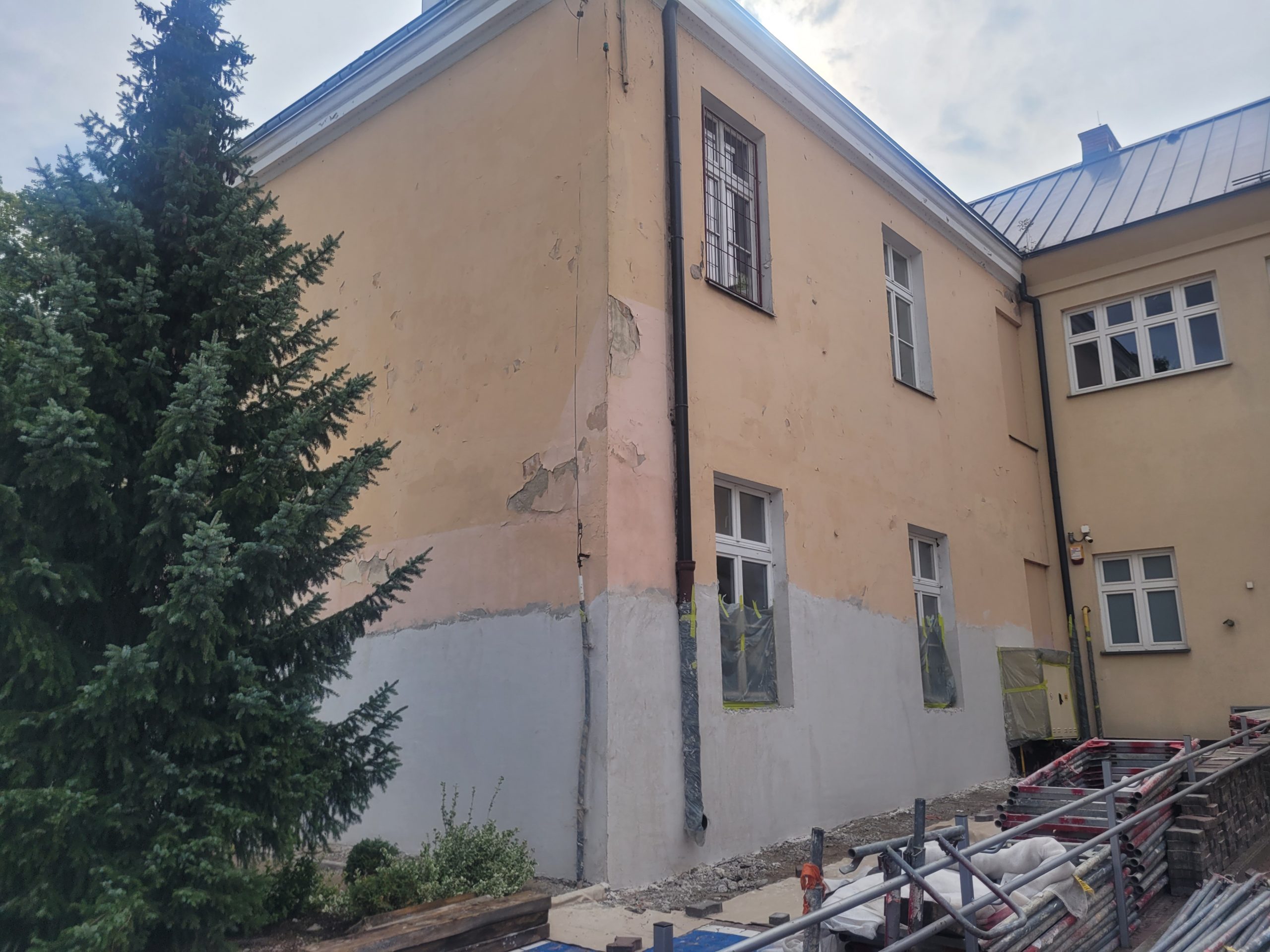 Dzięki temu Gmina mogła kontynuować remont elewacji budynku od strony frontowej wraz z izolacją fundamentów.