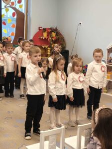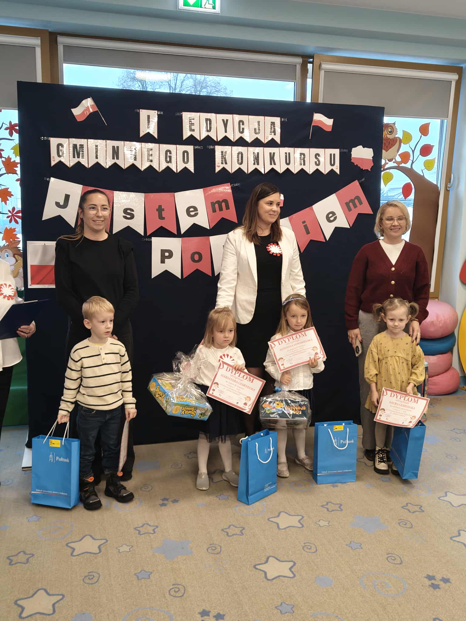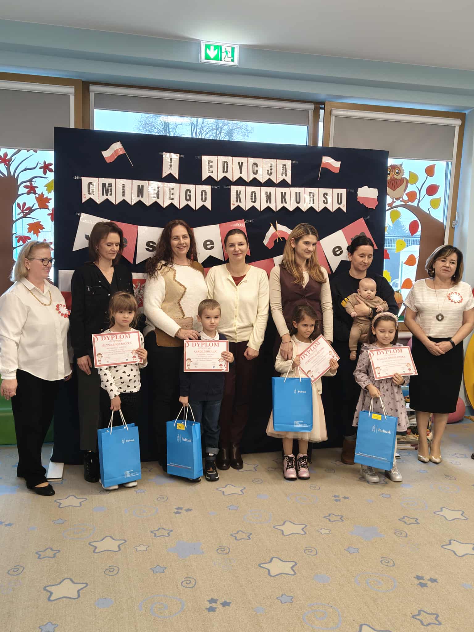 We wtorek 25 listopada 2025 r. w Przedszkolu Wiejskim w Przemiarowie odbyło się uroczyste wręczenie nagród w I edycji Gminnego Konkursu Plastycznego pt. ,,Jestem Polakiem”. Celem konkursu było kształtowanie świadomości narodowej i wspieranie wychowania patriotycznego dzieci. Konkurs skierowany był do wszystkich przedszkolaków z terenu gminy Pułtusk i został objęty patronatem honorowym Burmistrza Miasta Pułtusk. Jury w składzie: Specjalista ds. multimedialnych Miejskiego Centrum Kultury i Sztuki w Pułtusku Grażyna Warda-Ptak – przewodnicząca komisji; nauczyciel języka polskiego i plastyki w ZS-P w Przemiarowie Anna Zajączkowska; psycholog w ZS-P w Przemiarowie i w PSP w Płocochowie Wiktoria Kędel oceniło 63 prace w czterech kategoriach. W imieniu Burmistrza Miasta Pułtusk nagrody zwycięzcom wręczyła Kierownik Samodzielnego Referatu Edukacji Urzędu Miejskiego w Pułtusku Maria Wodzyńska. Dziękujemy wszystkim przedszkolakom biorącym udział w konkursie i gratulujemy kreatywności oraz zdolności manualnych. Poniżej przedstawiamy listę laureatów: