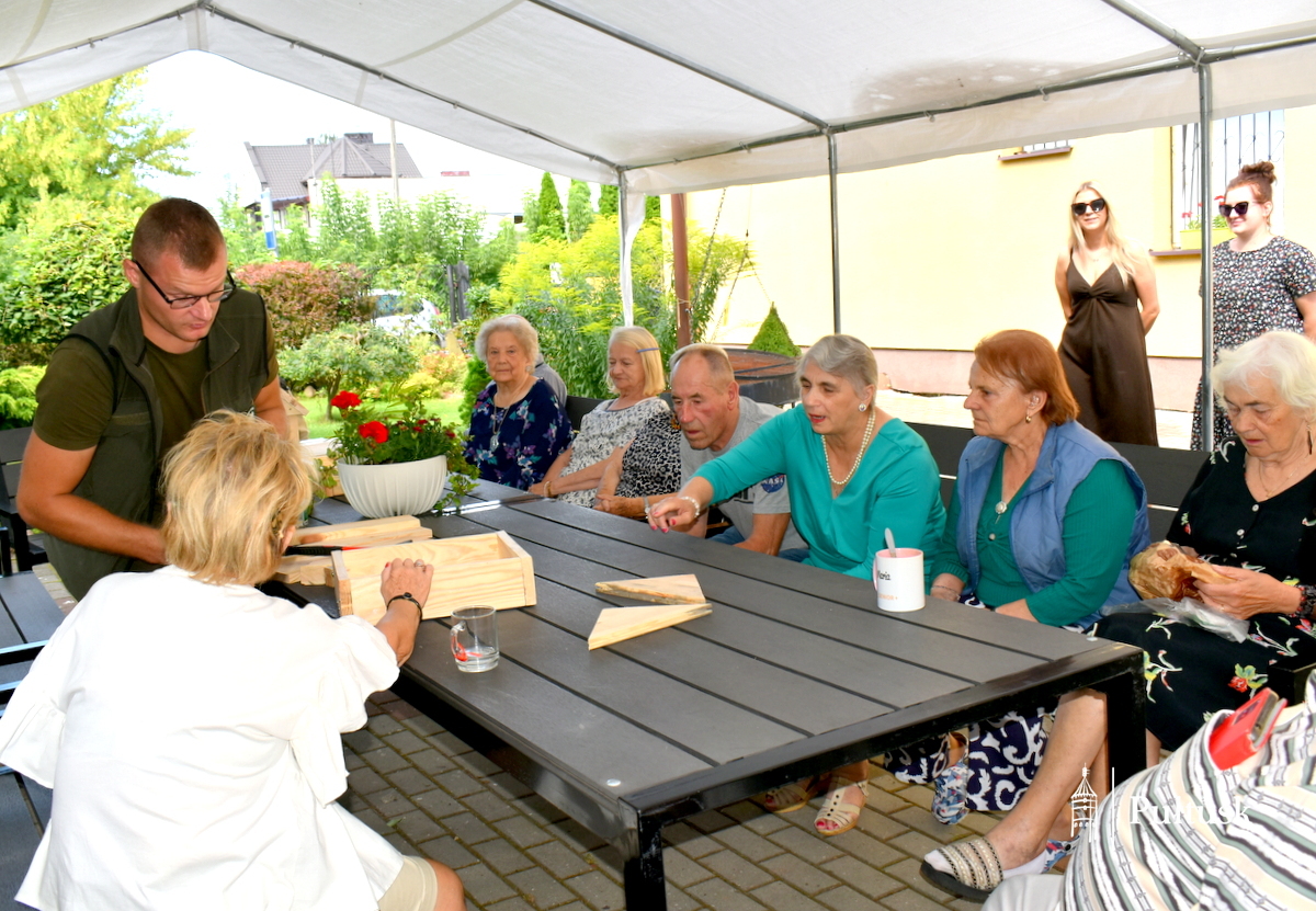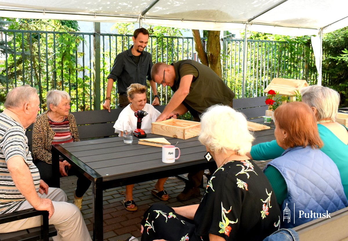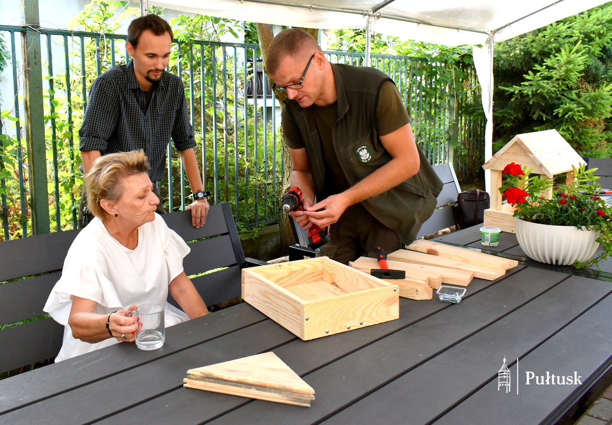 13 sierpnia 2025 r. w ogrodzie Dziennego Domu „Senior+” odbyły się eko-warsztaty, podczas których uczestnicy budowali karmniki dla ptaków. Zajęcia prowadzili pracownicy Nadleśnictwa Pułtusk, a nad przebiegiem warsztatów czuwali pracownicy domu – terapeutka zajęciowa Wiktoria Truchan oraz opiekunka Emilia Kwiatkowska.