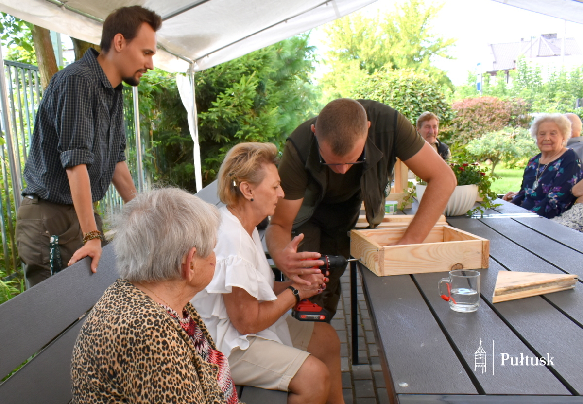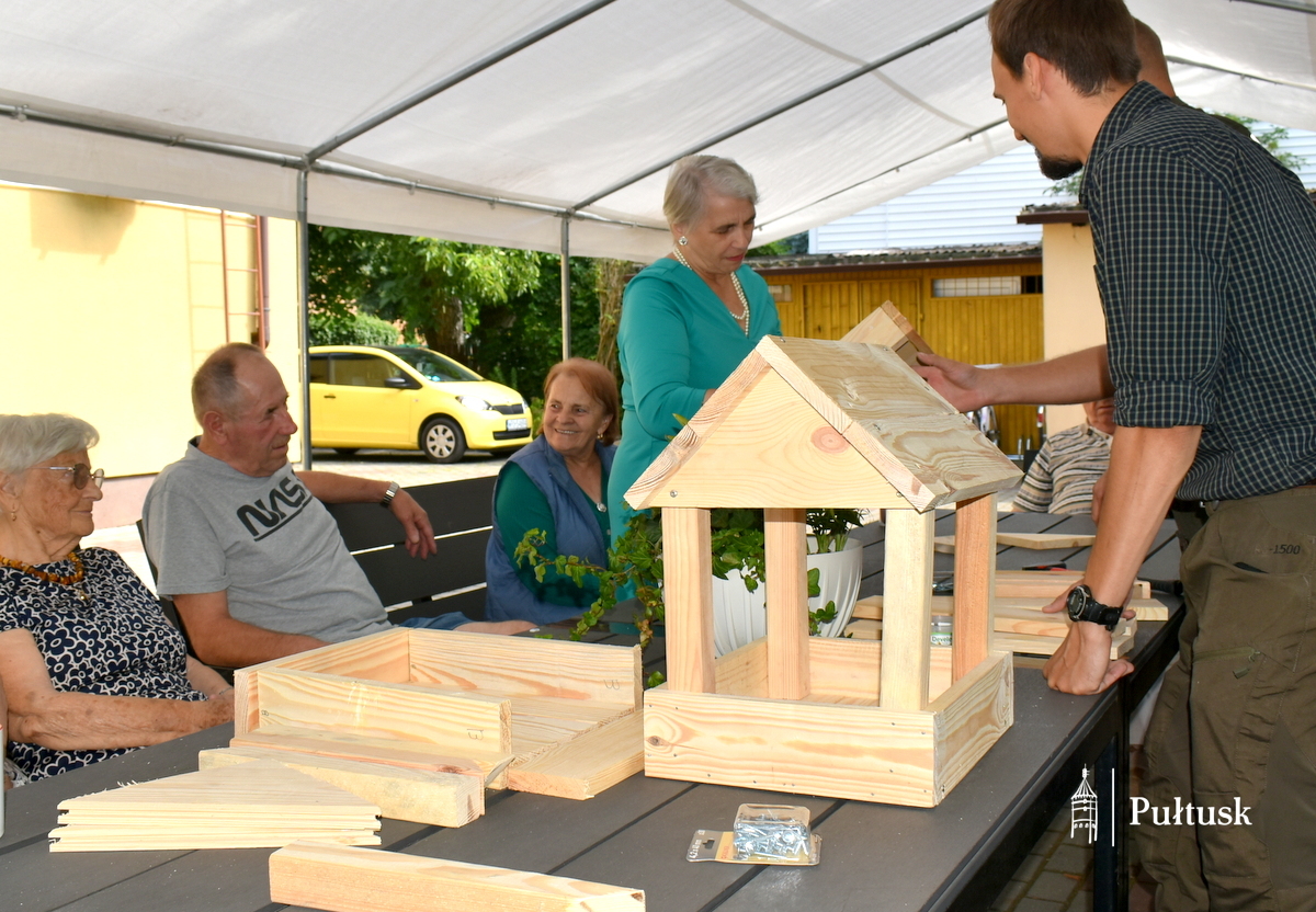 Seniorzy z Pułtuska budują karmniki dla ptaków w ramach projektu „Seniorzy w Naturze”