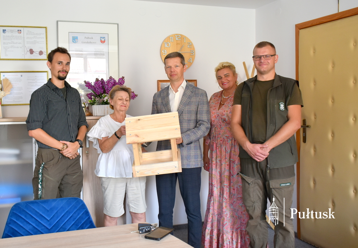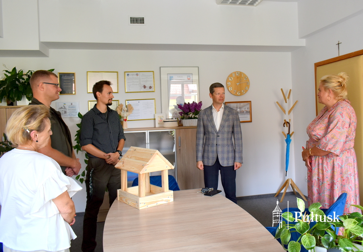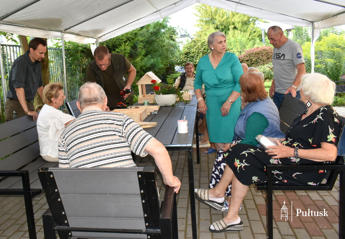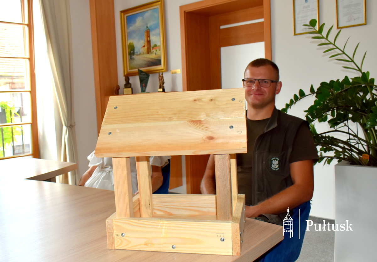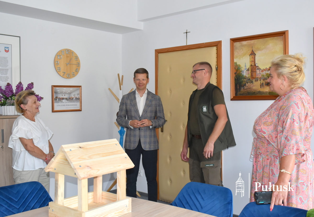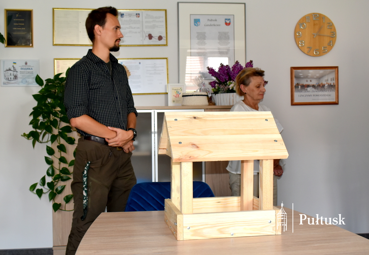 Po zakończeniu warsztatów liderka grupy Krystyna Wojciechowska oraz kierownik Dziennego Domu „Senior+” Beata Kowalska, przekazały jeden z wykonanych karmników na ręce Zastępcy Burmistrza Miasta Pułtusk Mateusza Miłoszewskiego.