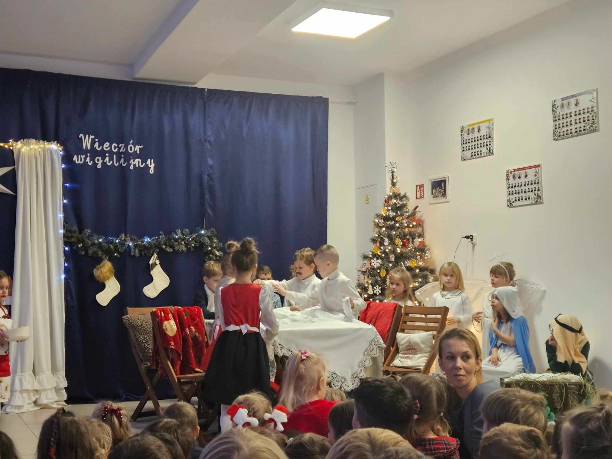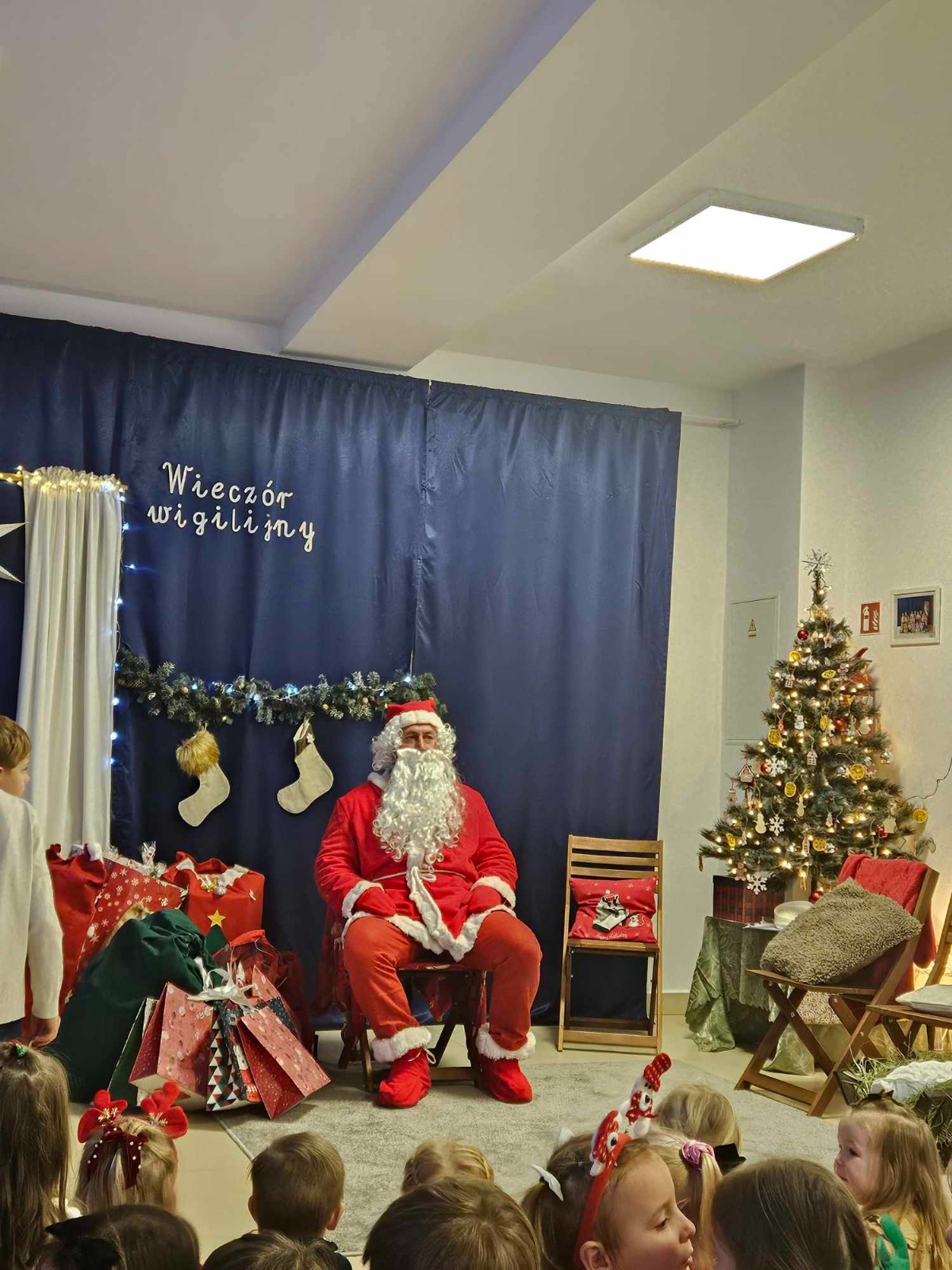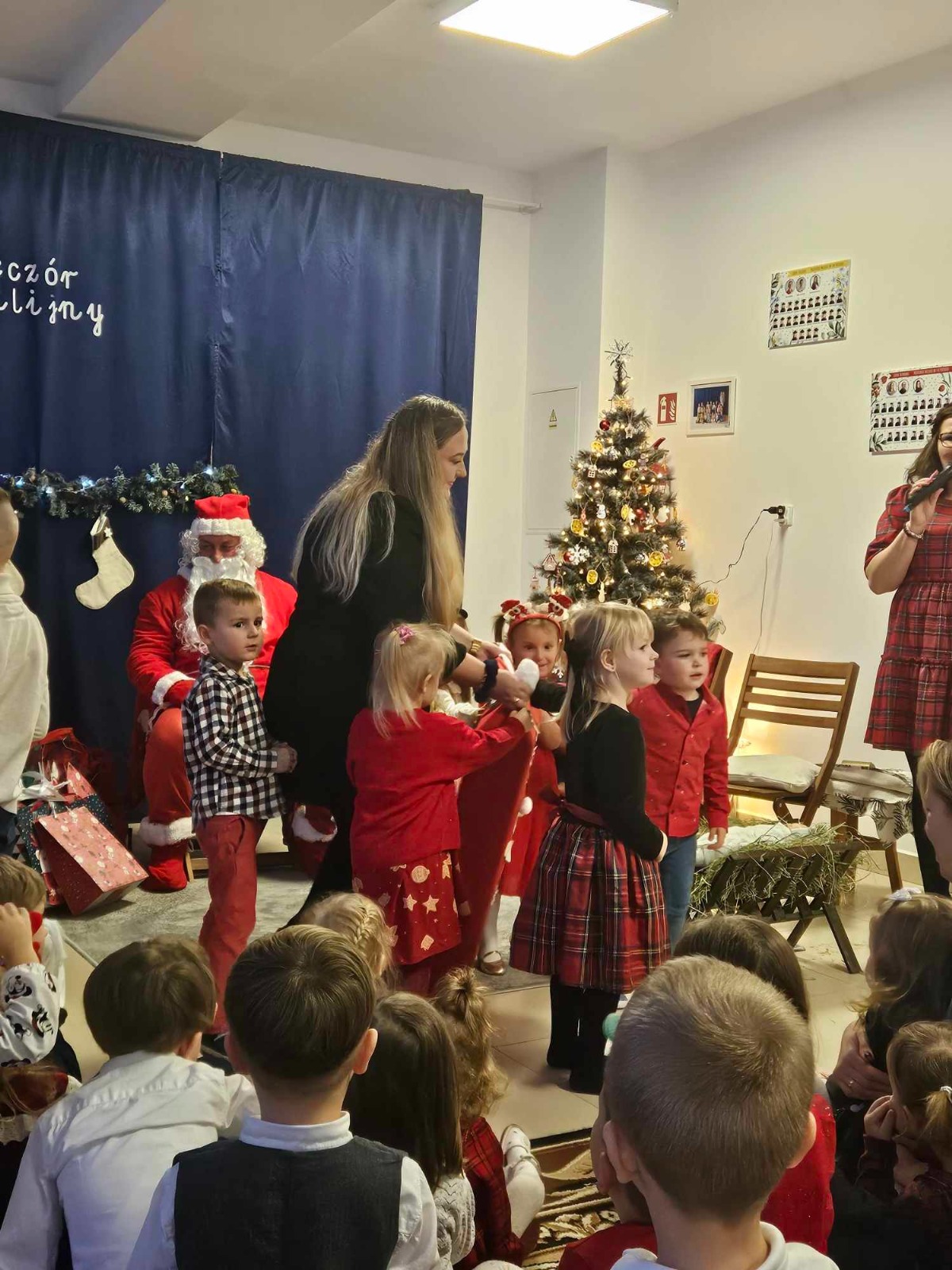 W czwartek, 19 grudnia 2024 r., dzieci z Przedszkola Miejskiego nr 5 w Pułtusku przygotowały przedstawienie które wprowadziło wszystkich przybyłych w uroczysty czas Bożego Narodzenia. Dyrektor Przedszkola Katarzyna Przewłocka odczytała fragment Pisma Świętego. Następnie dzieci z grupy „Pszczółki”, przygotowane przez panie przedszkolanki, zaprezentowały przepiękną grę aktorską. Na zakończenie do przedszkolaków przybył Święty Mikołaj, który przyniósł ze sobą mnóstwo prezentów, obdarowując nimi każde z dzieci. Samorząd Gminy Pułtusk podczas wydarzenia reprezentowała Sekretarz Miasta Pułtusk Patrycja Kazimierczak.