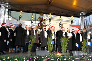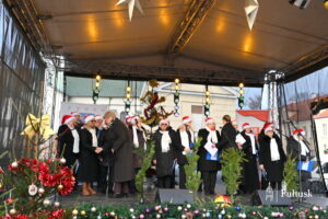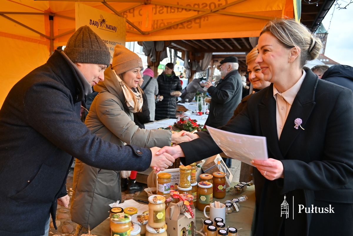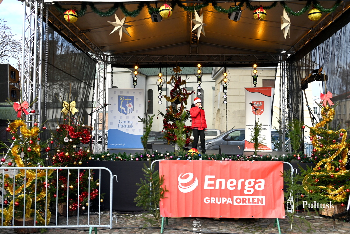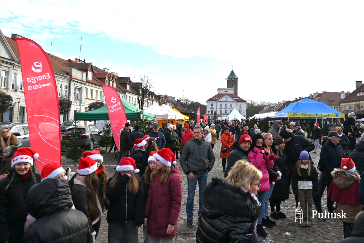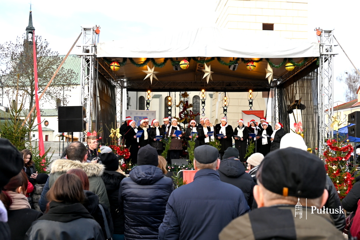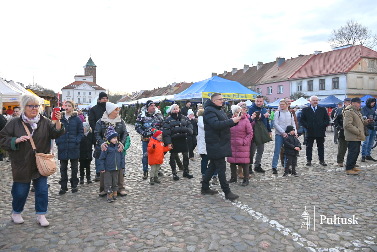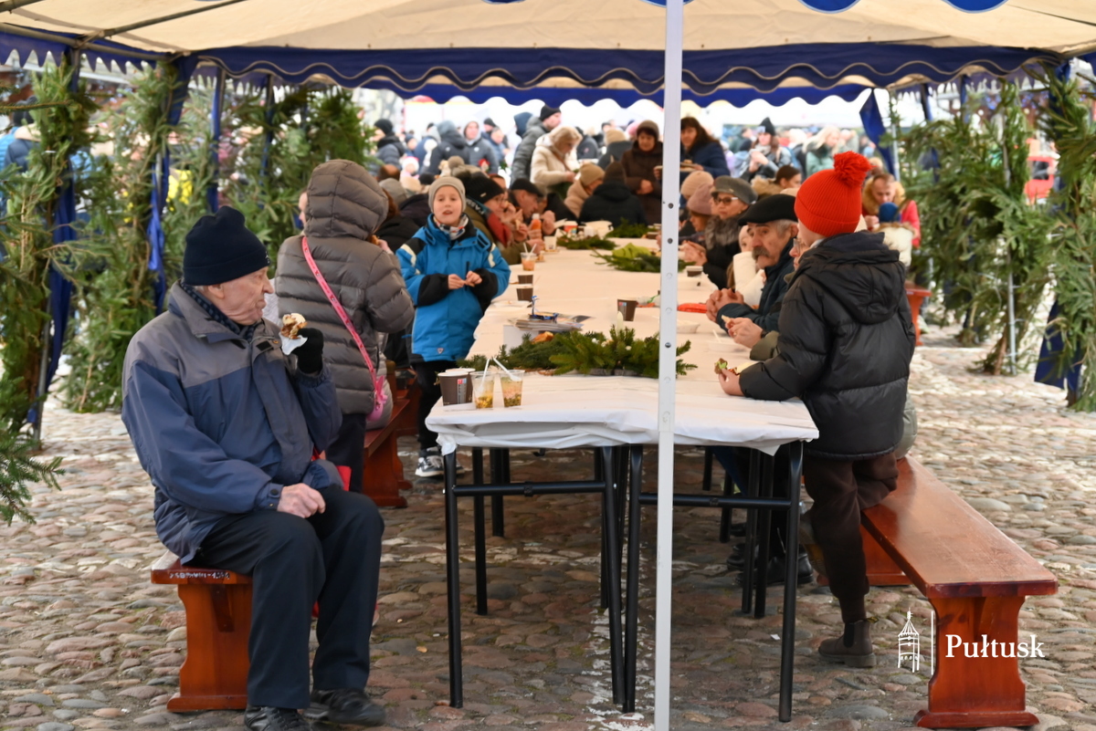 Pułtuski rynek po raz kolejny stał się miejscem wyjątkowego, pełnego serdeczności Spotkania Wigilijnego mieszkańców Gminy Pułtusk i Powiatu Pułtuskiego. Już od godzin porannych uczestnicy wydarzenia mogli odwiedzać Bożonarodzeniowy Kiermasz lokalnych produktów i twórców. Stoiska wypełnione rękodziełem, świątecznymi dekoracjami i regionalnymi wyrobami wprowadzały w wyjątkowy, świąteczny nastrój i zachęcały do rozmów oraz wspólnego spędzania czasu. Nie zabrakło również wspólnego kolędowania.