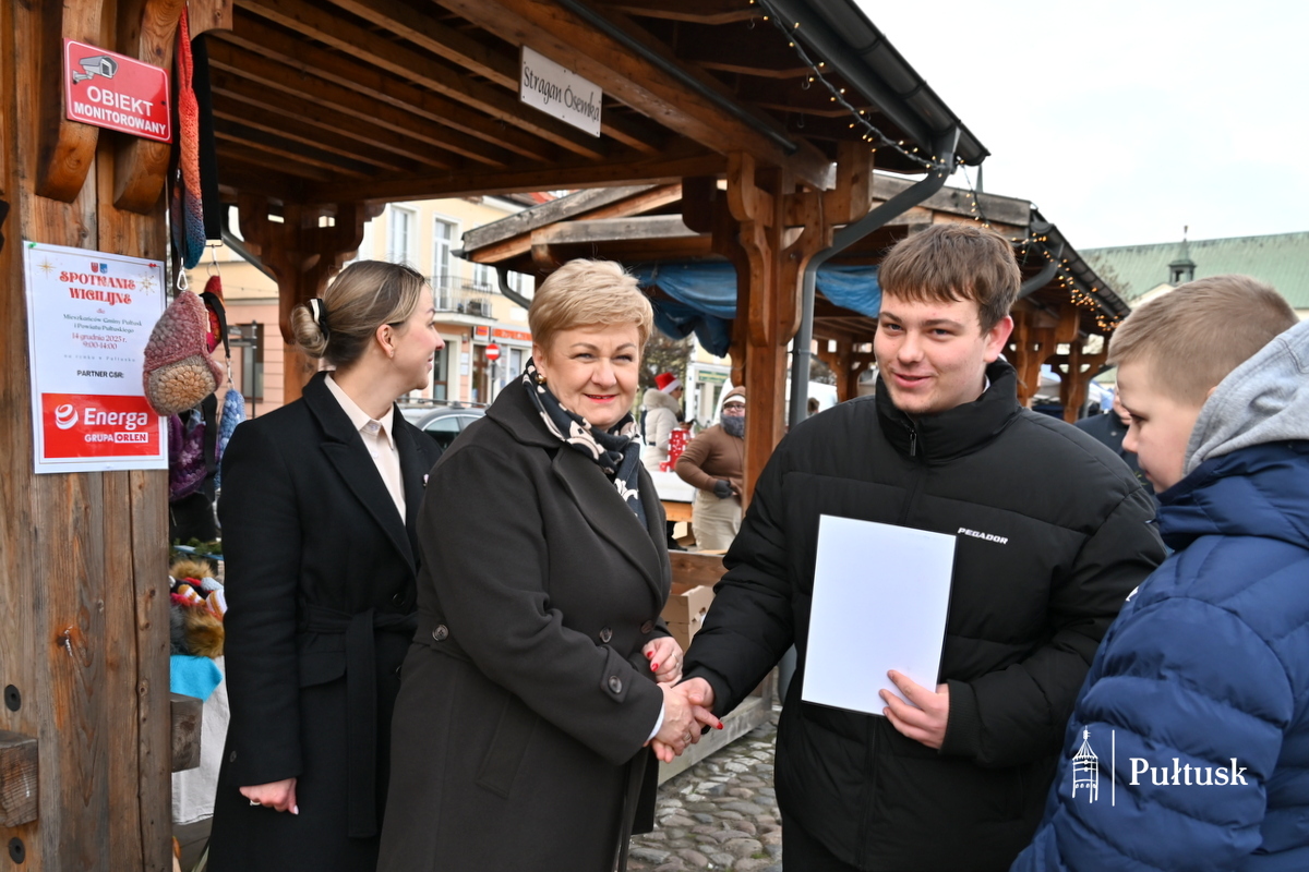 Na stoisku Gminy Pułtusk mieszkańcy mogli otrzymać specjalne wydanie gazetki podsumowującej działania Gminy Pułtusk w mijającym roku, sianko pod wigilijny obrus, pierniczki „I love Pułtusk”, a także rozgrzewającą gorącą czekoladę i zimową herbatę.