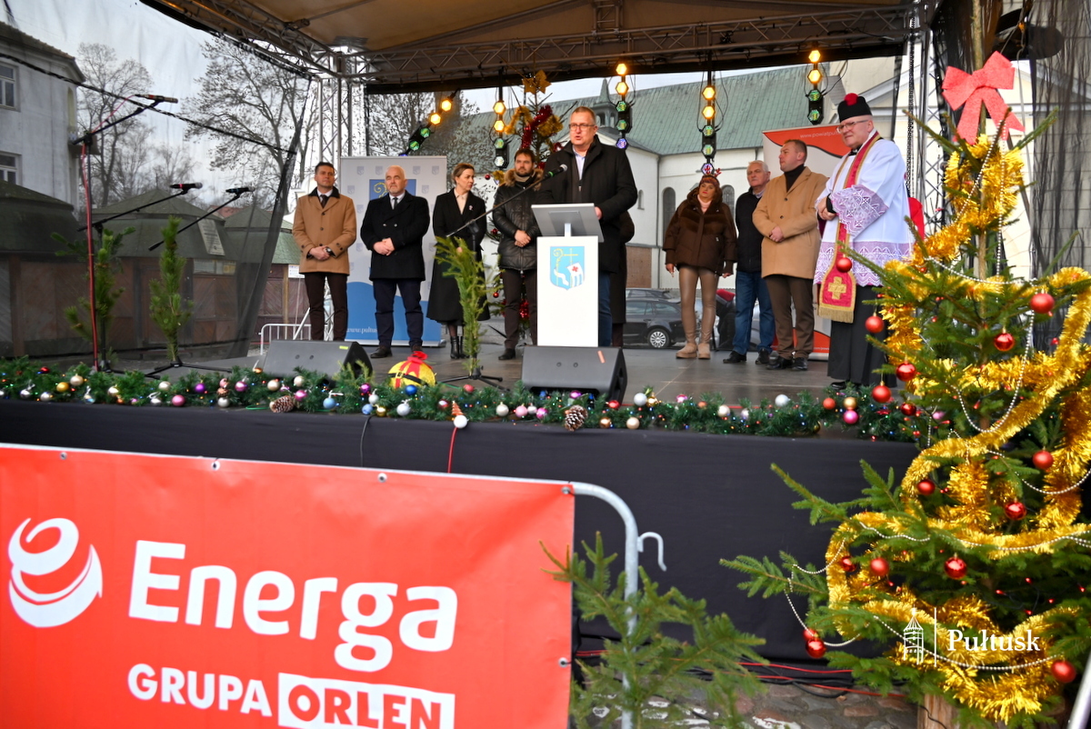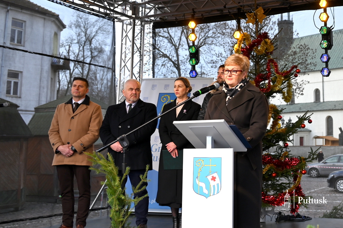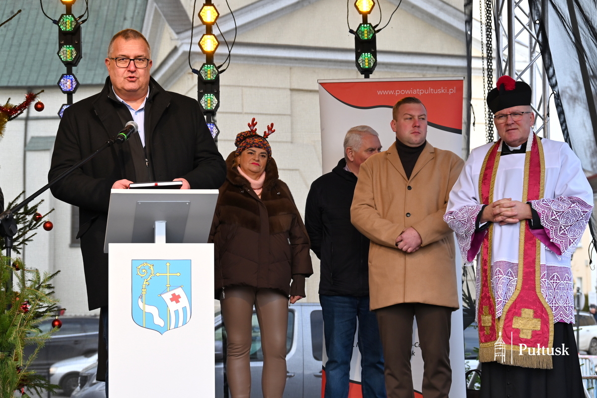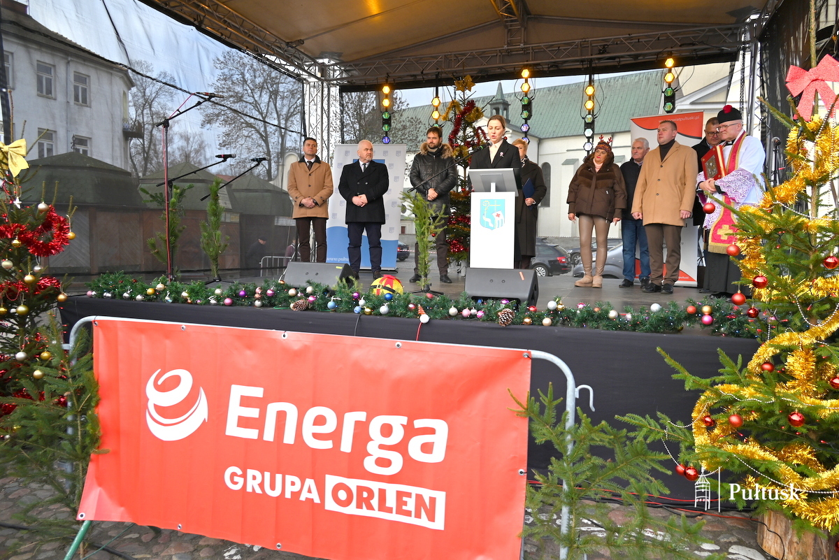 Oficjalną część wydarzenia rozpoczęły wystąpienia przedstawicieli władz samorządowych: Beaty Jóźwiak Burmistrz Miasta Pułtusk oraz Emilii Gąseckiej Wicestarosty Pułtuskiego, które skierowały do mieszkańców serdeczne życzenia świąteczne, podziękowały za tak liczną obecność oraz zachęcały do wspólnego przeżywania tego wyjątkowego dnia. Na scenie obecni byli również Łukasz Skarżyński Przewodniczący Rady Miejskiej w Pułtusku wraz z radnymi oraz Robert Czyżewski Członek Zarządu Powiatu w Pułtusku.