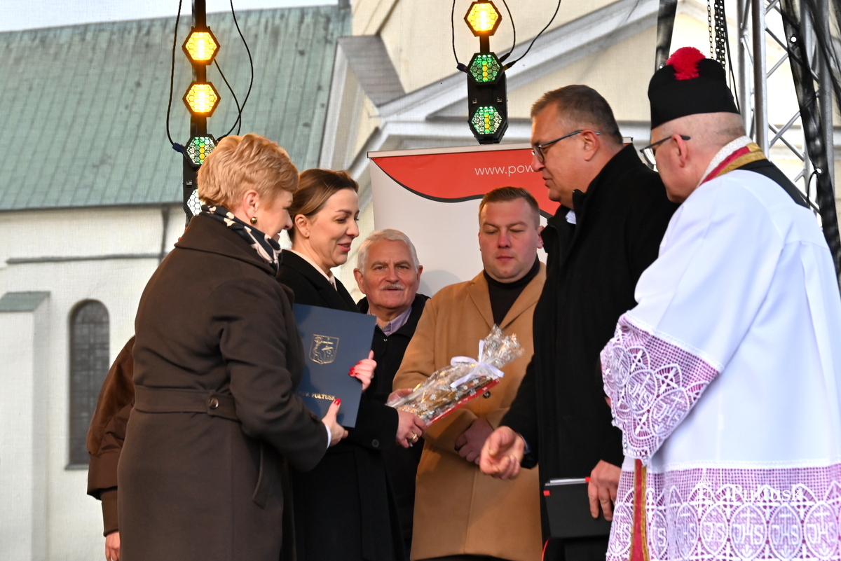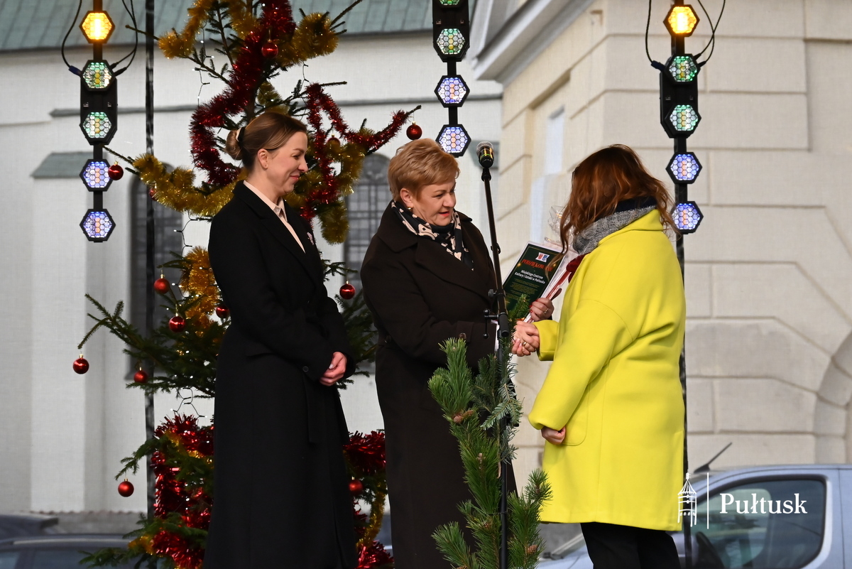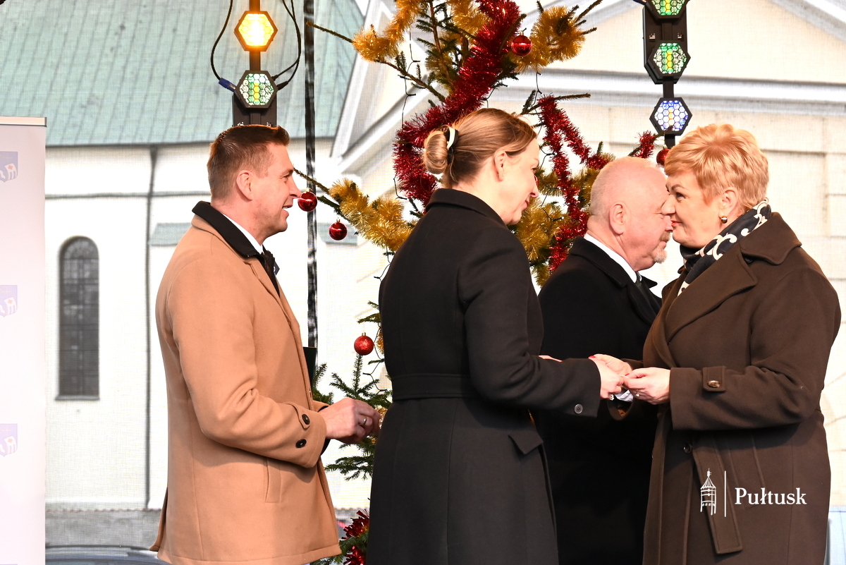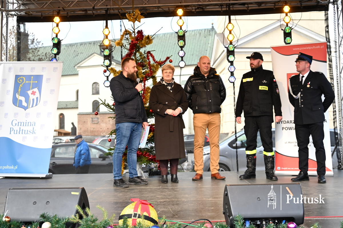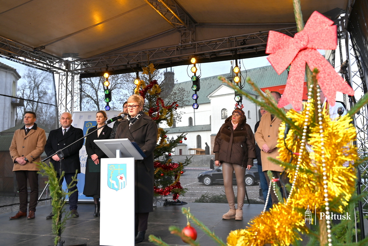 Oficjalną część wydarzenia rozpoczęły wystąpienia przedstawicieli władz samorządowych: Beaty Jóźwiak Burmistrz Miasta Pułtusk oraz Emilii Gąseckiej Wicestarosty Pułtuskiego, które skierowały do mieszkańców serdeczne życzenia świąteczne, podziękowały za tak liczną obecność oraz zachęcały do wspólnego przeżywania tego wyjątkowego dnia. Na scenie obecni byli również Łukasz Skarżyński Przewodniczący Rady Miejskiej w Pułtusku wraz z radnymi oraz Robert Czyżewski Członek Zarządu Powiatu w Pułtusku.