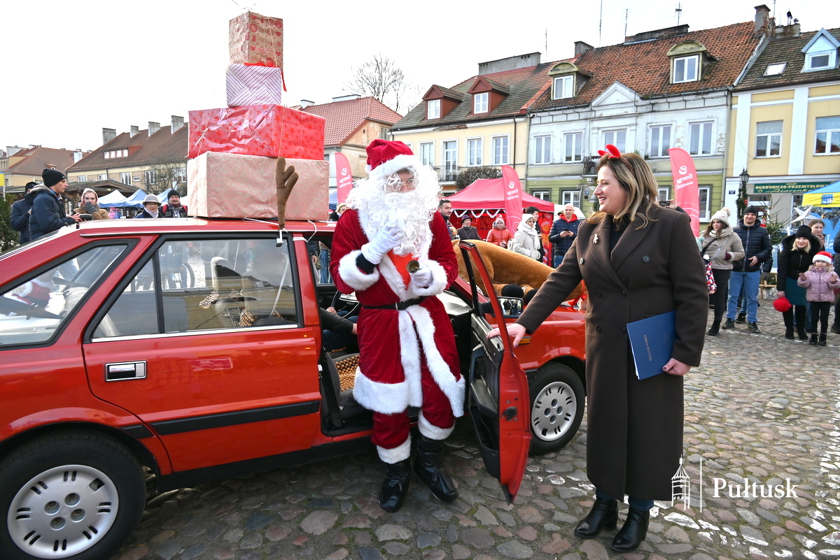 Dużo radości przyniosły również odwiedziny Świętego Mikołaja, który przyjechał na rynek wyjątkowym pojazdem polonezem z reniferem na masce, a także udział motocyklistów z Pułtuskiego Stowarzyszenia Motocyklowego im. Waldemara Jaworskiego „Siwego”, którzy włączyli się w świąteczną paradę.