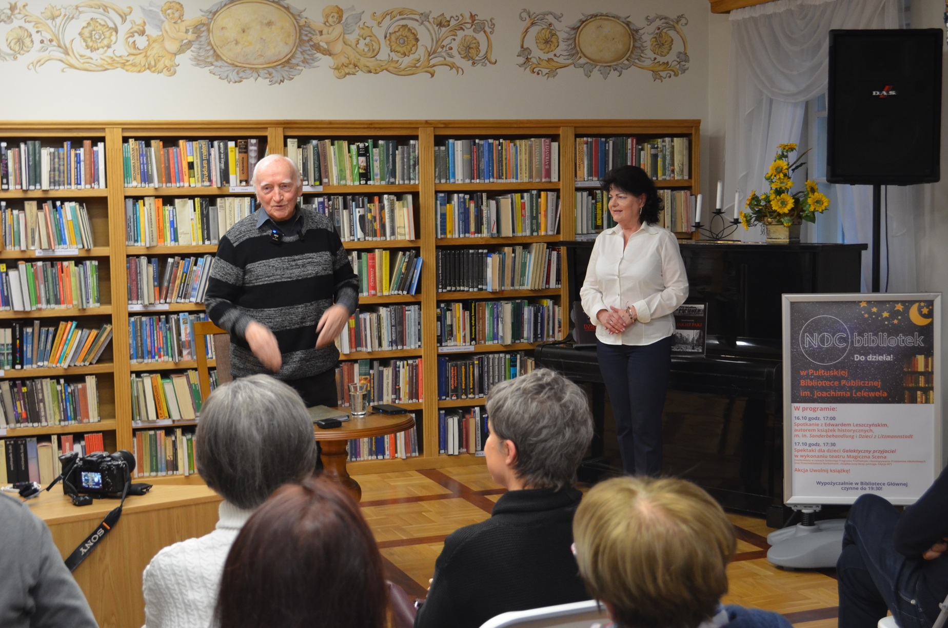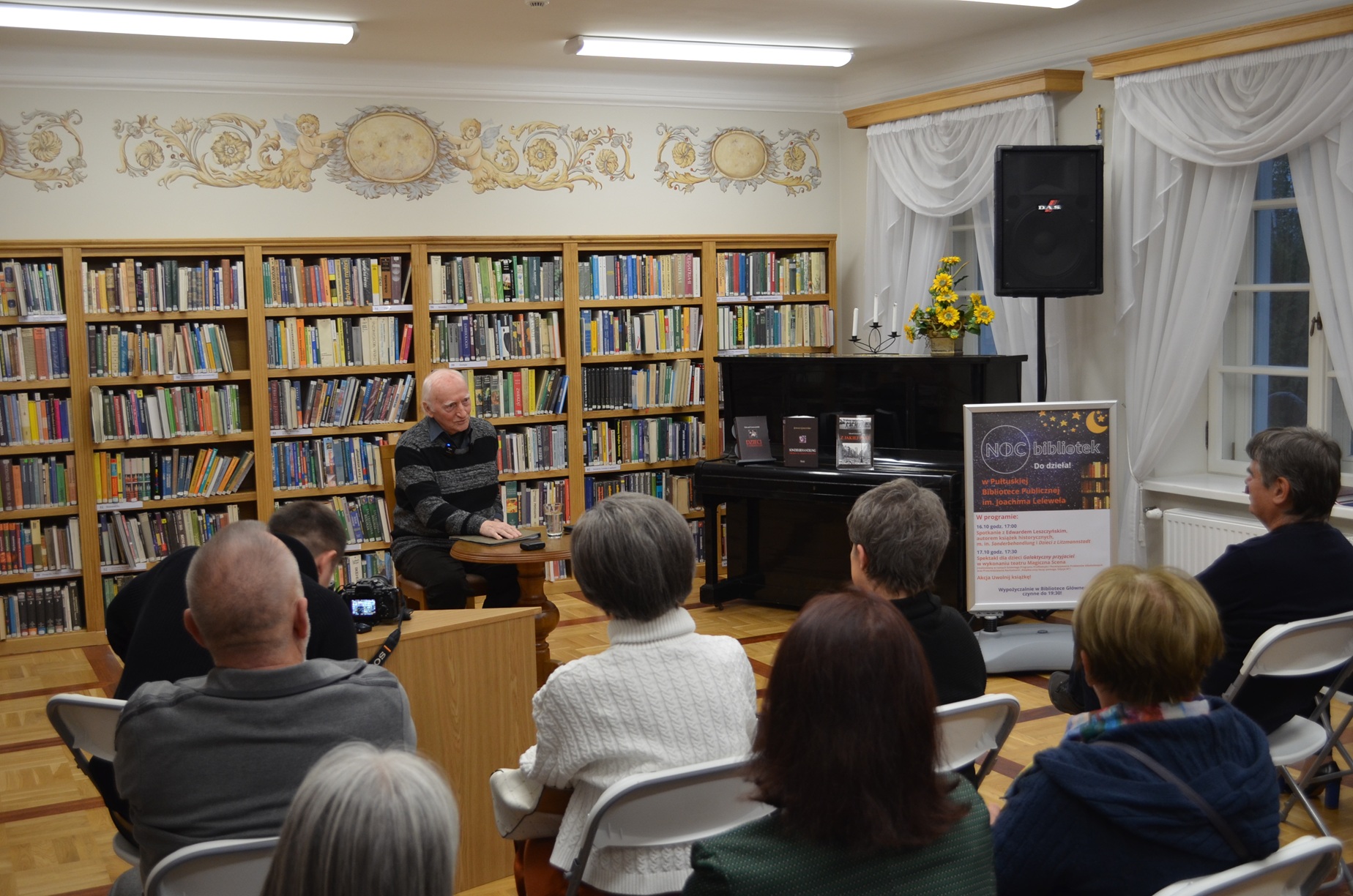 W czwartek, 16 października br., w ramach tegorocznej Nocy Bibliotek, w czytelni Pułtuskiej Biblioteki Publicznej odbyło się spotkanie z Edwardem Leszczyńskim – autorem książek historycznych i reportaży, nierzadko poruszającym w swojej twórczości tematy kontrowersyjne czy stabuizowane. Uczestnicy spotkania wysłuchali prelekcji pisarza pt. „Rozliczenie niemieckich zbrodni na obywatelach Polski w czasie II wojny światowej”, która dotyczyła jednych z najbardziej dramatycznych wydarzeń w XX-wiecznej historii naszego kraju. Autor przedstawił temat w sposób intrygujący, przejmujący i przystępny dla każdego uczestnika wydarzenia.
