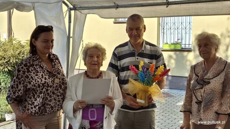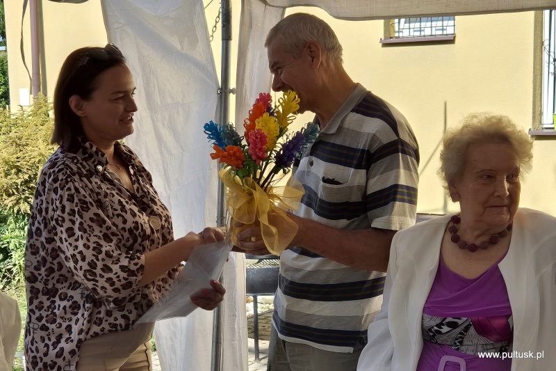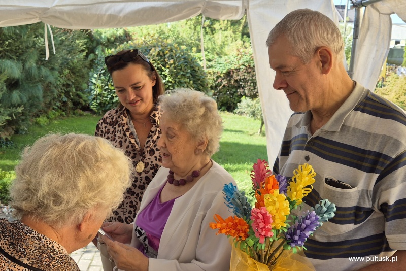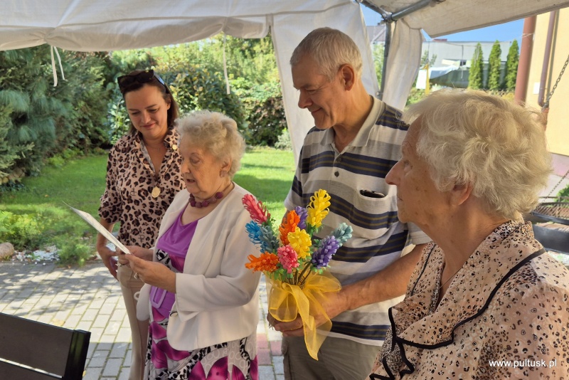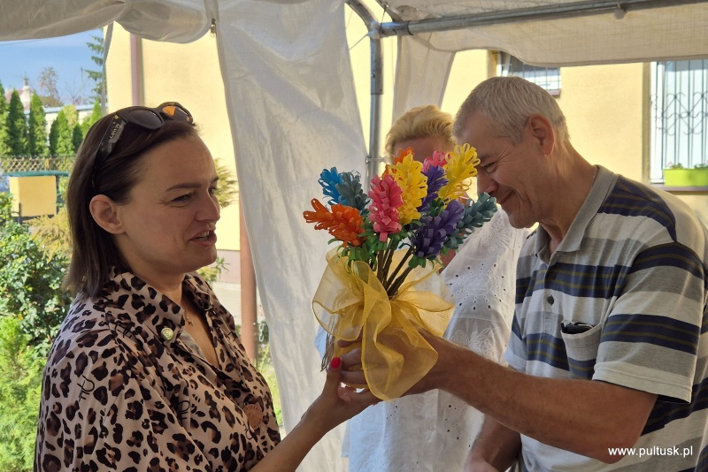 W środę, 18 września 2024 r. Marzena Cendrowska p.o. Burmistrza Miasta Pułtusk spotkała się z seniorami z Dziennego Domu Senior+. W czasie rozmów Burmistrz wysłuchała potrzeb pułtuskich seniorów dotyczących m.in. przywrócenia muzykoterapii dla seniorów oraz montażu ławek np. przy ul. Nasielskiej. Pani Burmistrz zapewniła, że prośby zostaną rozpatrzone w możliwie najkrótszym czasie. Na zakończenie spotkania otrzymała bukiet kwiatów własnoręcznie wykonanych przez uczestników Dziennego Domu Senior+.