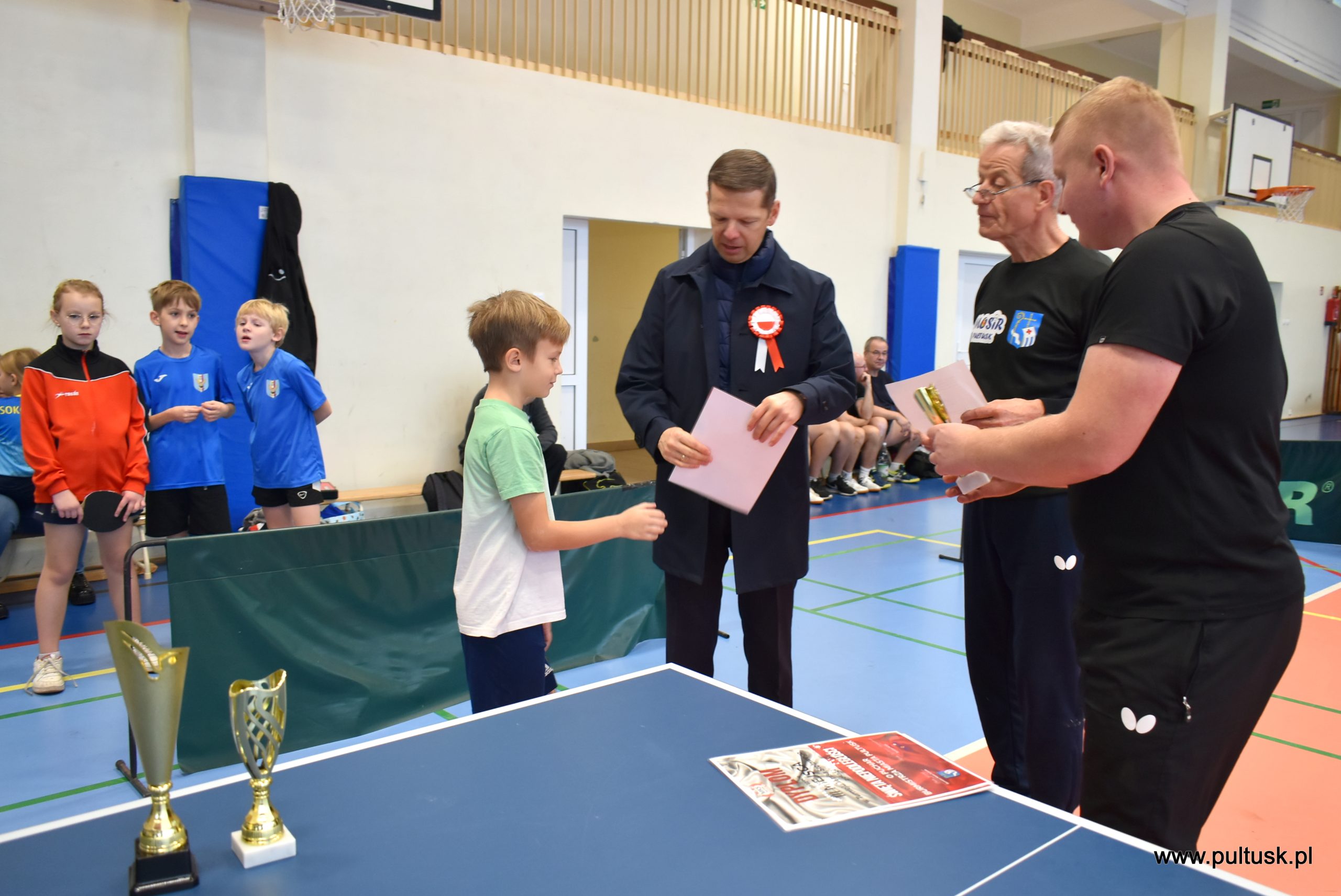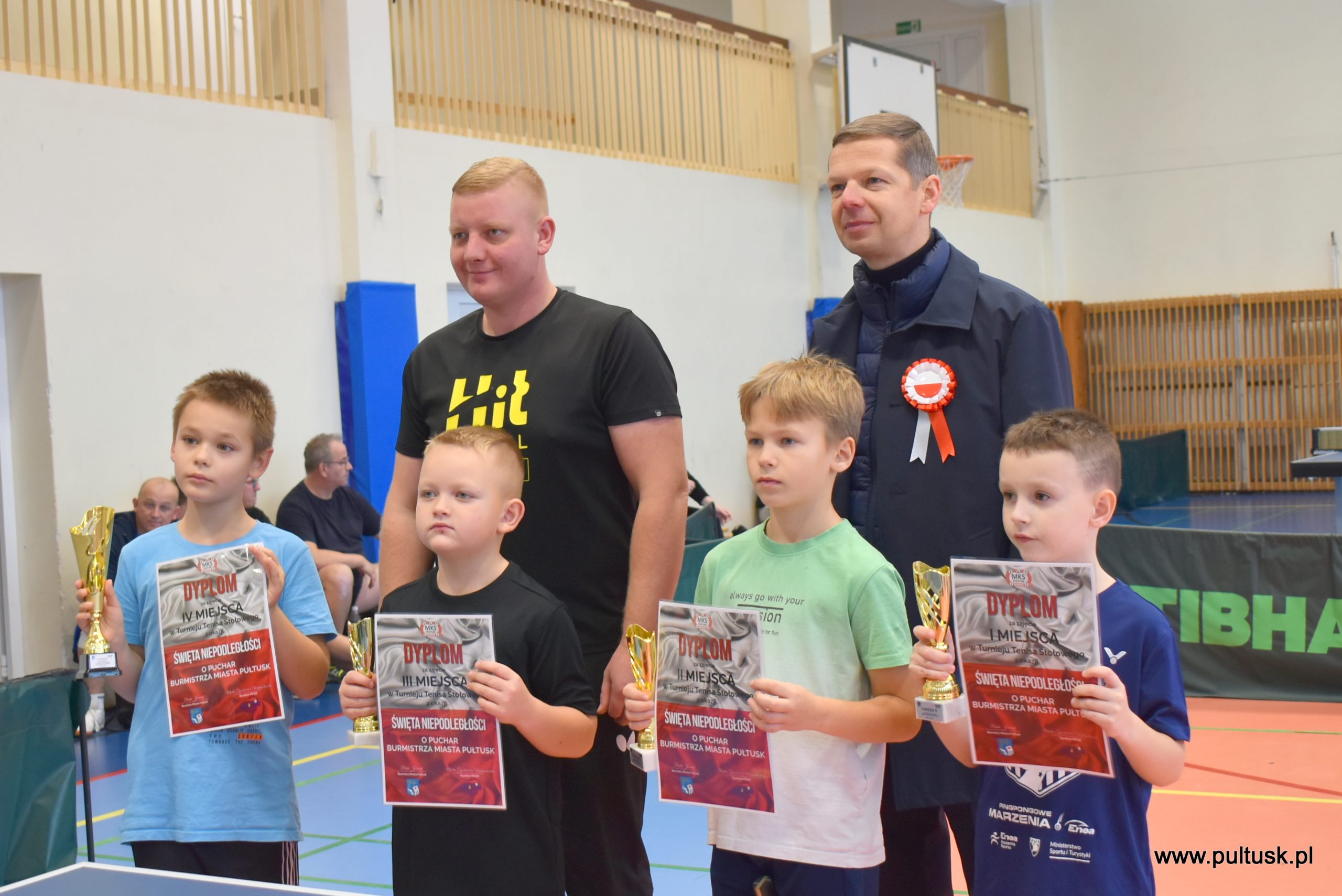W poniedziałek,11 listopada 2024 r. w Publicznej Szkole Podstawowej nr 4 z klasami sportowymi im. Ireny Szewińskiej w Pułtusku odbył się Turniej Tenisa Stołowego z okazji Narodowego Święta Niepodległości. Organizatorami Turnieju byli: Miejski Ośrodek Sportu i Rekreacji w Pułtusku oraz Sekcja Tenisa Stołowego MOSiR MKS Pułtusk. Podczas otwarcia Turnieju uczestników i gości przywitali Dyrektor Miejskiego Ośrodka Sportu i Rekreacji Marta Tyszkiewicz-Wymysłowska i Zbigniew Chodkowski z Sekcji Tenisa Stołowego MOSiR MKS Pułtusk. Wręczenia nagród dokonał Zastępca Burmistrza Miasta Pułtusk Mateusz Miłoszewski.