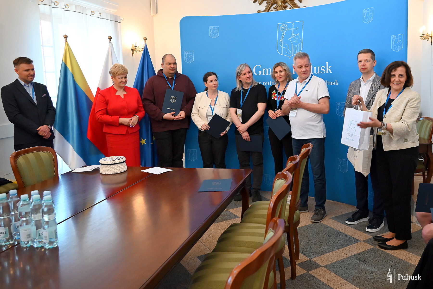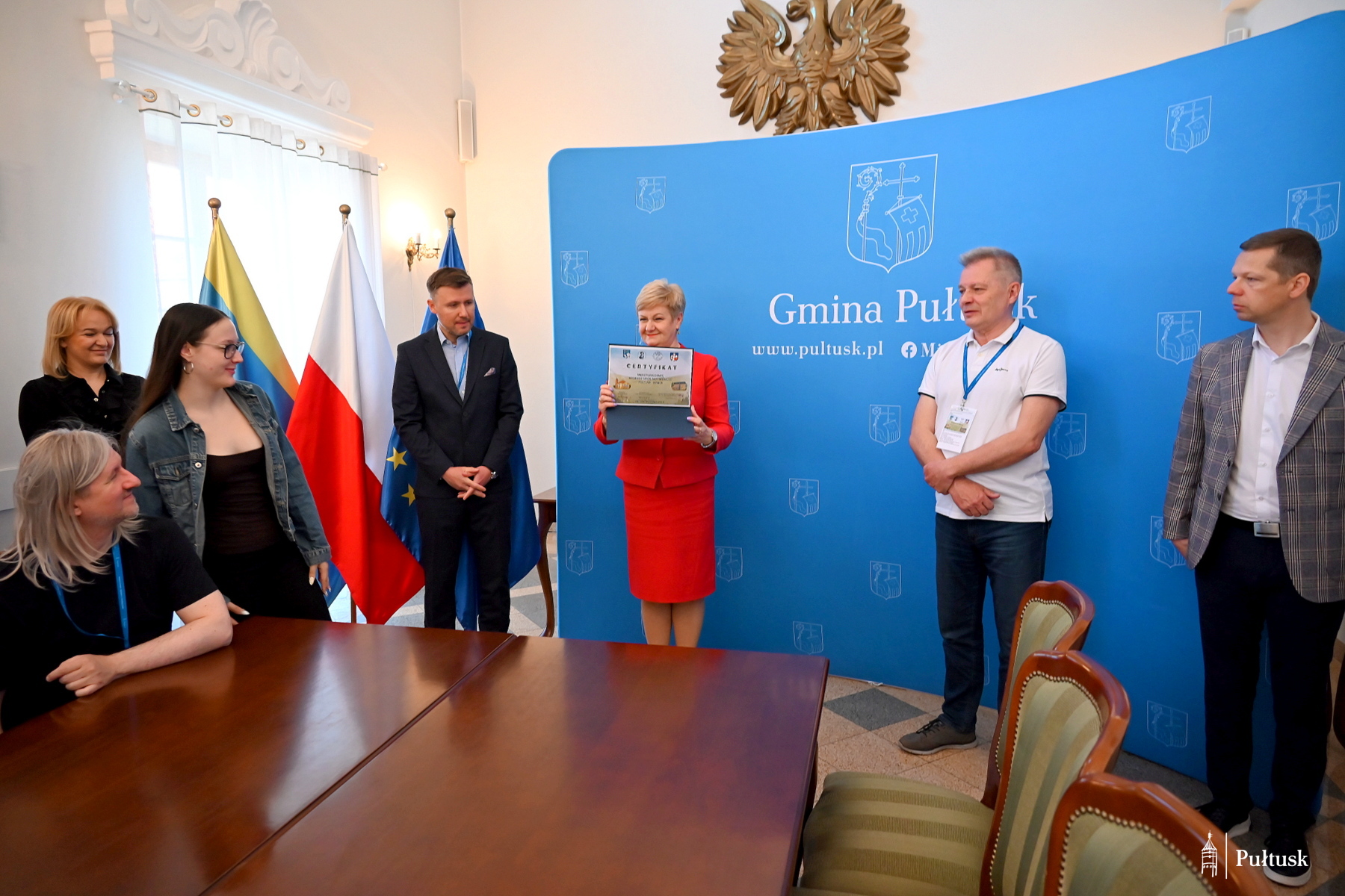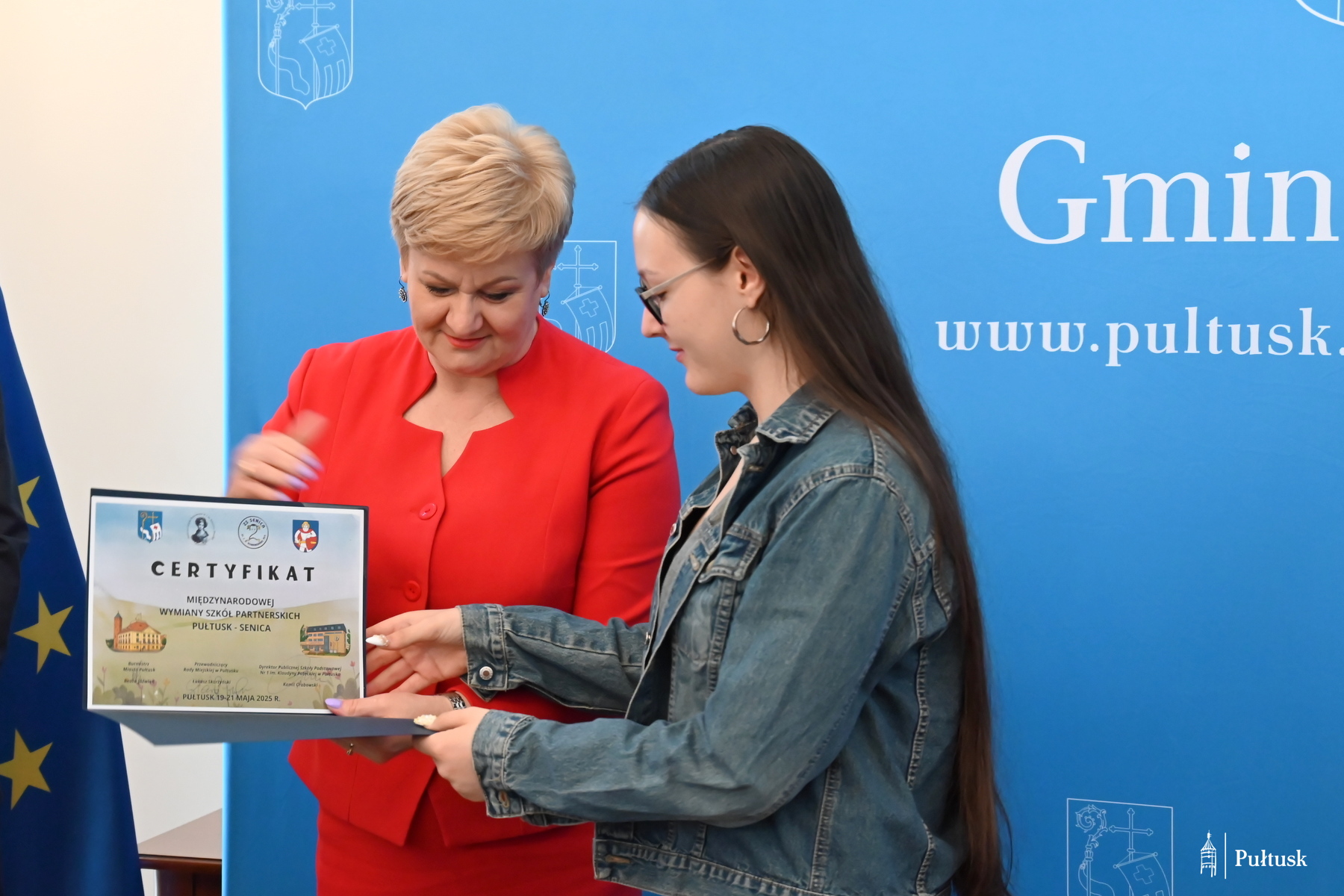 Ostatniego dnia pobytu (21 maja) delegacja z Senicy spotkała się z przedstawicielami Samorządu Gminy Pułtusk. Z rąk Burmistrz Miasta Pułtusk Beaty Jóźwiak goście otrzymali certyfikaty potwierdzające udział w międzynarodowej wymianie szkół partnerskich Pułtusk – Senica. W spotkaniu uczestniczyli także Zastępca Burmistrza Mateusz Miłoszewski, Sekretarz Miasta Patrycja Kazimierczak oraz Dyrektor Publicznej Szkoły Podstawowej nr 1 Kamil Grabowski.