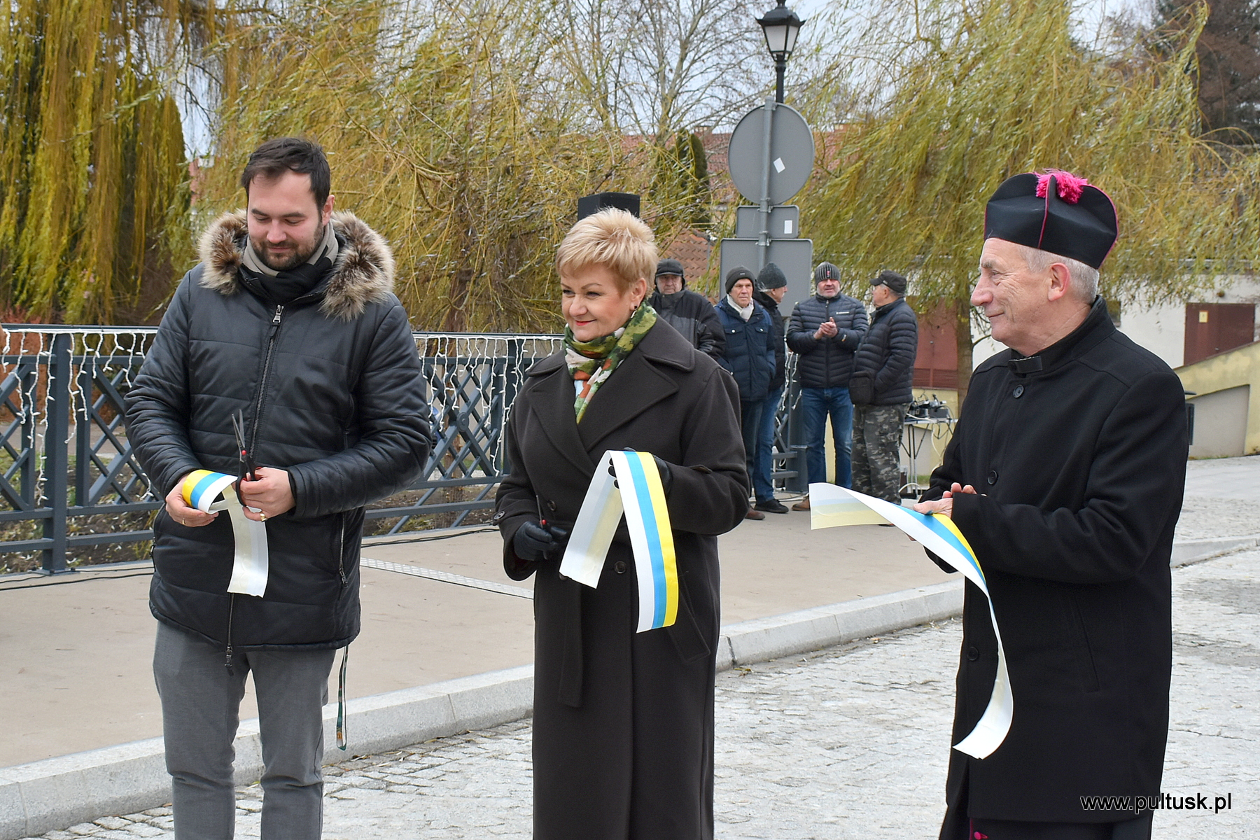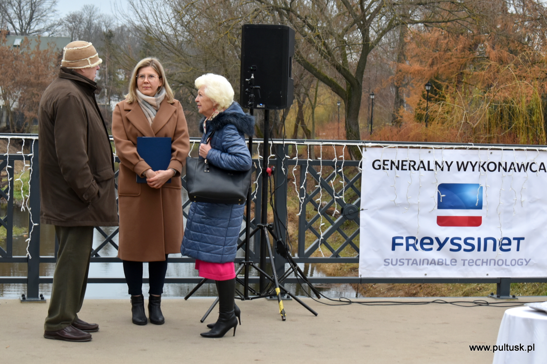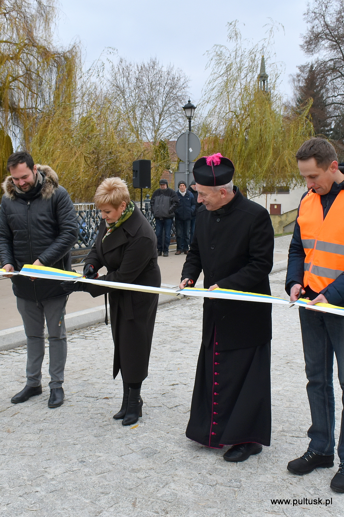 Symbolicznego otwarcia mostu – przecięcia wstęgi dokonali: Beata Jóźwiak – Burmistrz Miasta Pułtusk, Łukasz Skarżyński – Przewodniczący Rady Miejskiej w Pułtusku, Paweł Kubacki – przedstawiciel firmy Freyssinet Polska Sp. z o.o. – Wykonawcy inwestycji oraz ks. infułat Wiesław Kosek – Honorowy Obywatel Miasta Pułtuska.