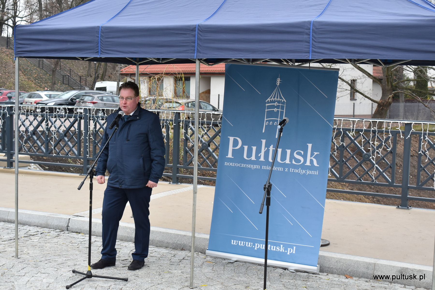 W piątek, 6 grudnia 2024 r. w Pułtusku uroczyście oddano do użytkowania most Benedyktyński, który jest elementem ważnego traktu samochodowo-pieszego prowadzącego na wyspę, do historycznej części Pułtuska – rynku oraz licznych obiektów pełniących ważne funkcje społeczne i turystyczne. Jak podkreślała w swoim wystąpieniu Burmistrz Miasta Pułtusk Beata Jóźwiak inwestycja została zrealizowana dzięki decyzjom władz Samorządu Gminy Pułtusk VIII kadencji – Rady Miejskiej, ale przede wszystkim dzięki spójnej wizji podniesienia atrakcyjności staromiejskiej części miasta  prezentowanej przez poprzedniego Burmistrza Miasta Pułtusk Wojciecha Gregorczyka.