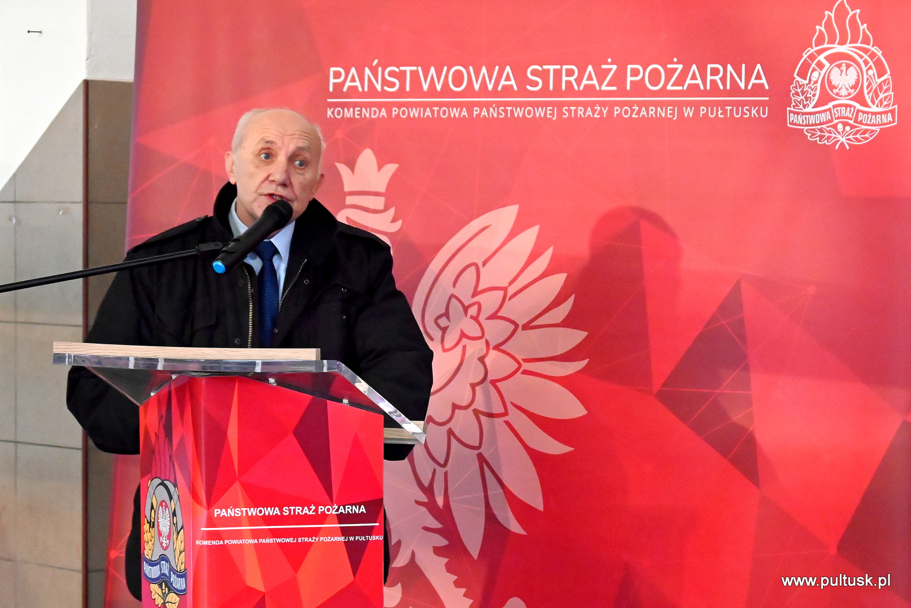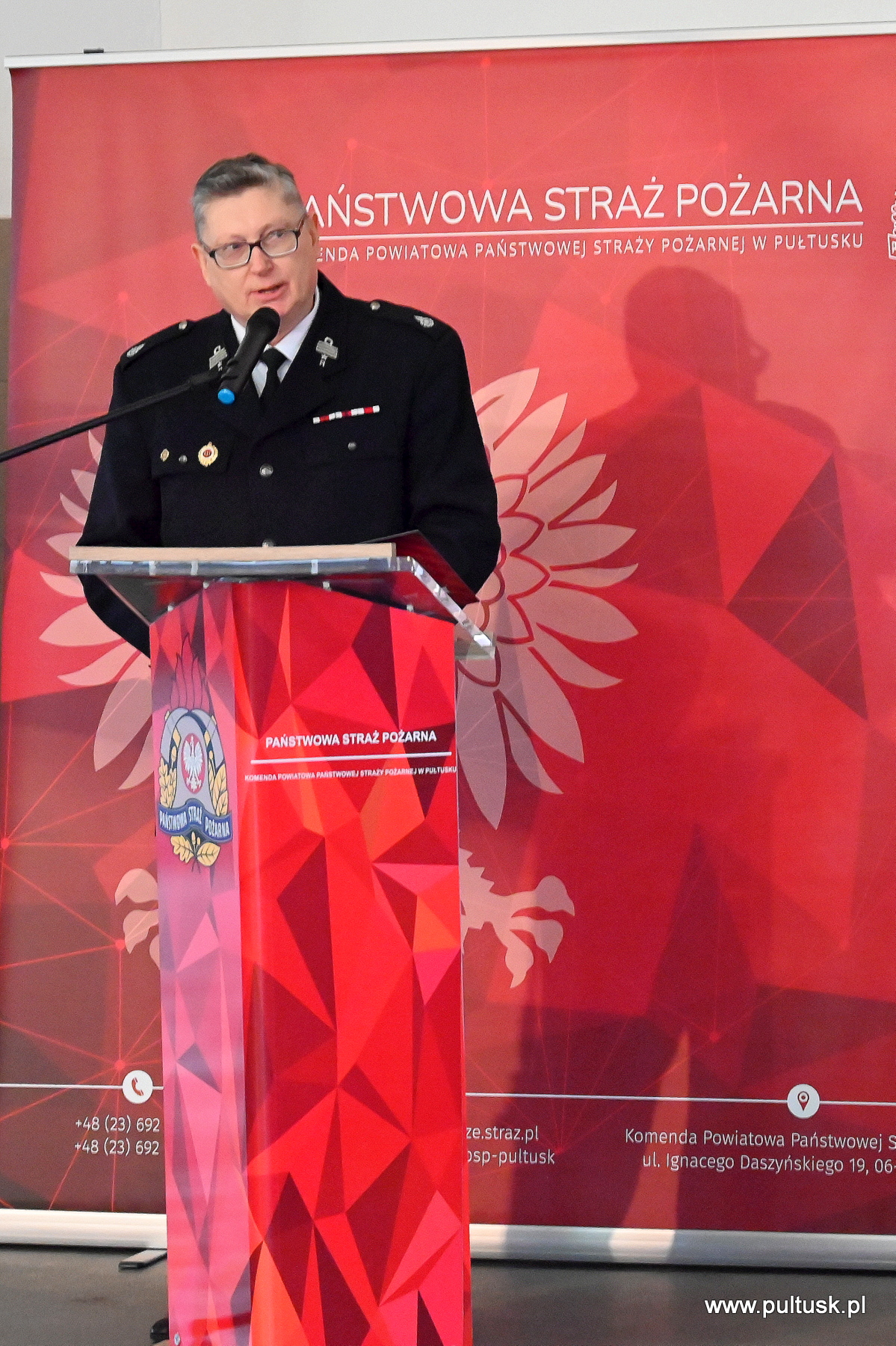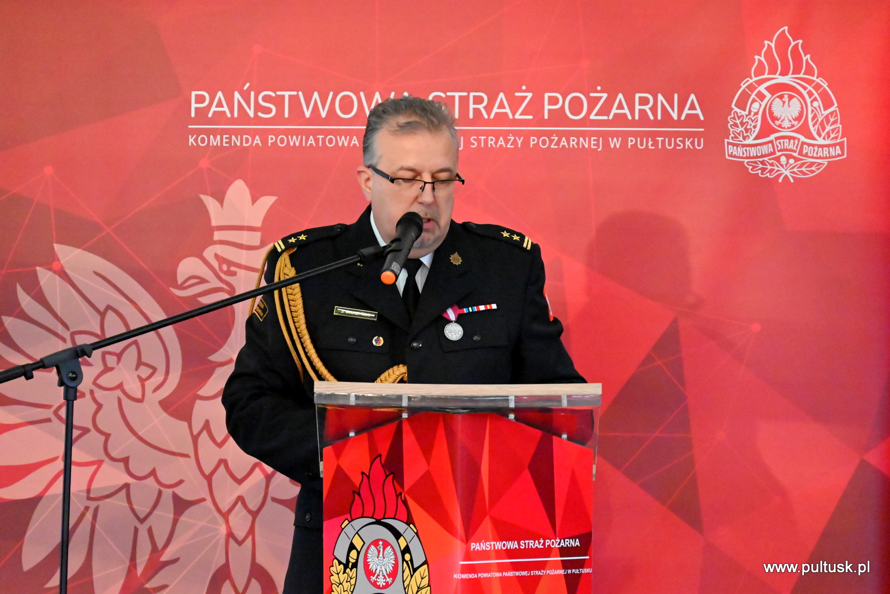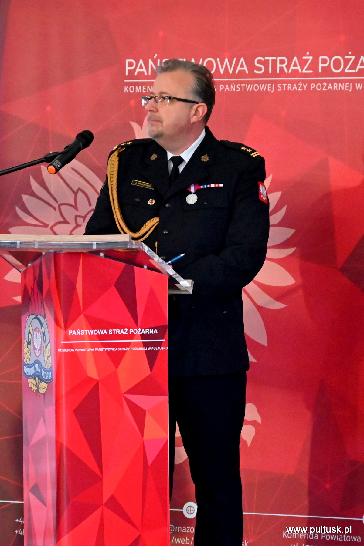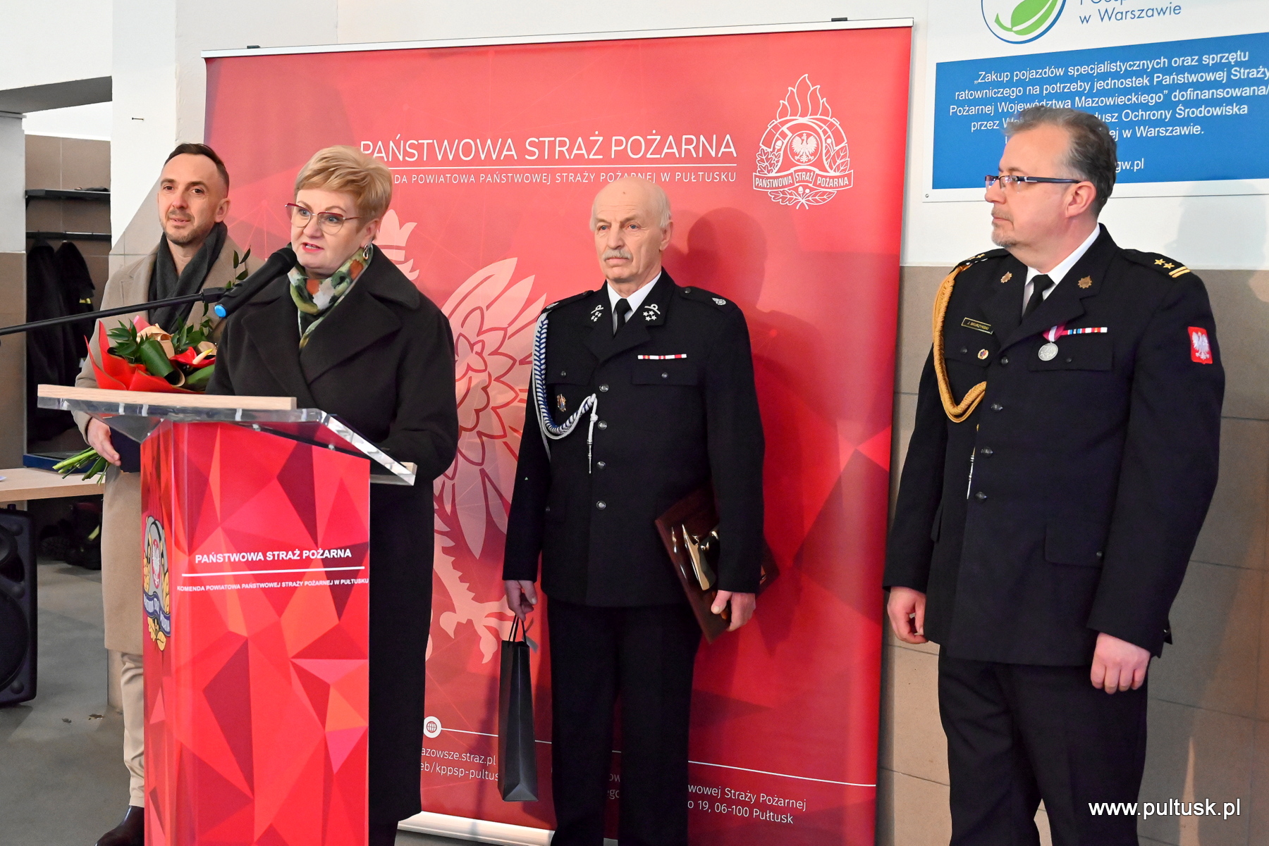 Burmistrz w imieniu Samorządu Gminy Pułtusk wyraziła podziękowanie i uznanie za niezwykłe zaangażowanie i profesjonalizm oraz za współpracę i wspieranie działań podejmowanych na rzecz bezpieczeństwa mieszkańców naszej gminy. Burmistrz wręczyła przechodzącemu na emeryturę Zastępcy Komendanta bukiet kwiatów oraz okolicznościowy dyplom i list.