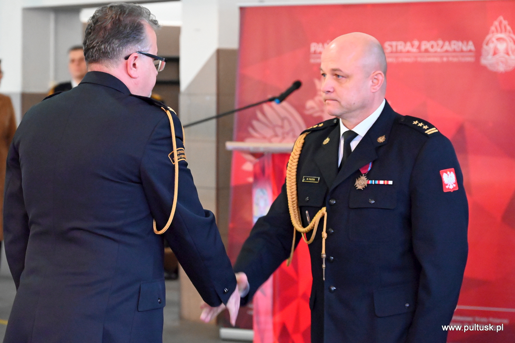 W piątek, 7 lutego 2025 r. Burmistrz Miasta Pułtusk Beata Jóźwiak wzięła udział w uroczystym apelu, który odbył się w Komendzie Powiatowej Państwowej Straży Pożarnej w Pułtusku w związku ze zdaniem obowiązków służbowych przez Zastępcę Komendanta bryg. Jacka Skurzyńskiego.