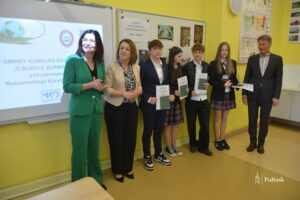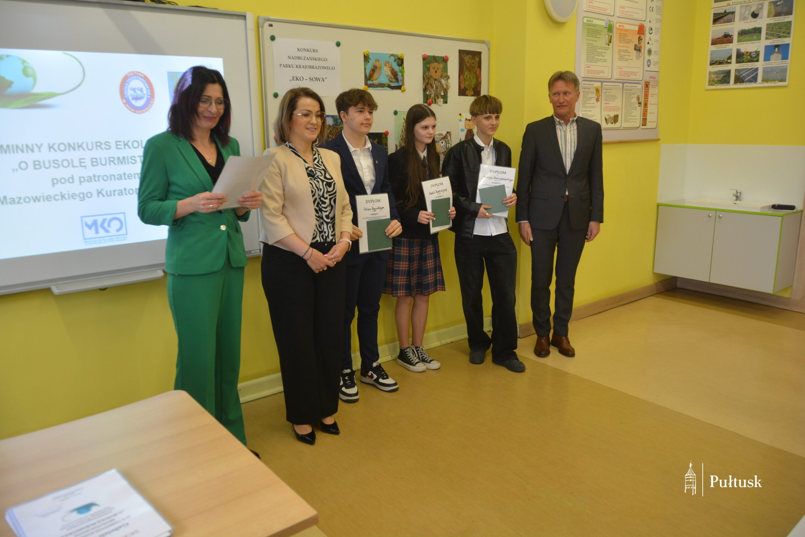 W Publicznej  Szkole Podstawowej nr 4 z klasami sportowymi im. Ireny Szewińskiej w Pułtusku, 29 kwietnia 2026 r. odbyła się jubileuszowa piąta edycja Gminnego Konkursu Ekologicznego „o Busolę Burmistrza”. Wydarzenie objęte było Patronatem Honorowym Mazowieckiego Kuratora Oświaty. Konkurs przygotowali nauczyciele PSP nr 4 w Pułtusku: Izabela Stawiska, Monika Trętowska, Ewa Mróz-Cebula oraz Waldemar Łuszcz. W zmaganiach udział wzięli uczniowie z  pułtuskich szkół podstawowych. Rywalizacja przebiegała w dwóch kategoriach (klasy V-VI oraz klasy VII-VIII). Wręczenia nagród i dyplomów dokonali II Zastępca Burmistrza Miasta Pułtusk Anna Ignatowicz, Dyrektor Delegatury w Ciechanowie Kuratorium Oświaty w Warszawie Małgorzata Sobecka oraz Dyrektor PSP nr 4 w Pułtusku Krzysztof Łachmański. Poniżej przedstawiamy listę zwycięzców.