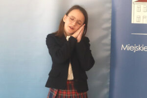 Wyróżnienie – Kaja Dawidczyk ze Społecznej Szkoły Podstawowej w Gzach, recytowała utwór „Sum” Jana Brzechwy