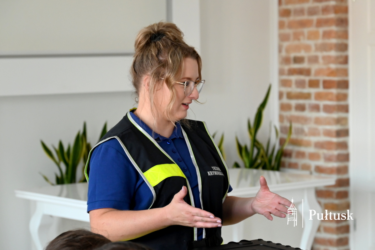 Podczas warsztatów uczestnicy min. poznali zawartość walizki technika kryminalistycznego, uczyli się, jak zabezpieczać ślady, pobierali odciski palców i uczyli się ich analizy i oczywiście – niczym prawdziwi śledczy – rozwiązali zagadkę detektywistyczną.