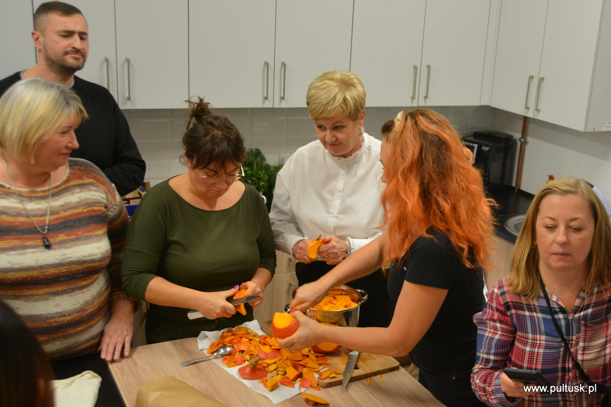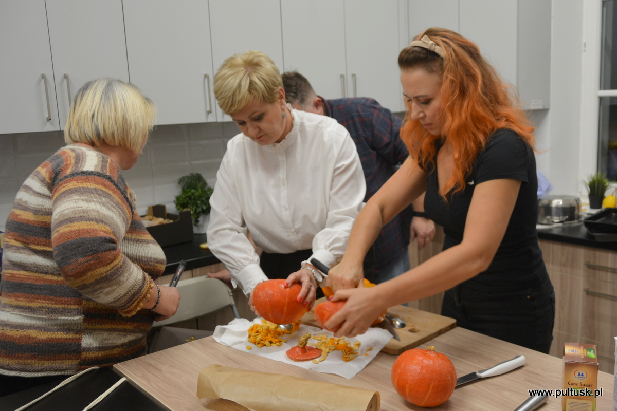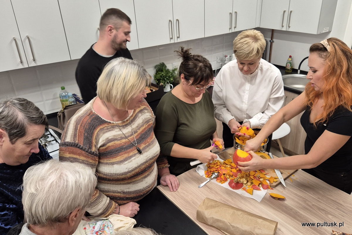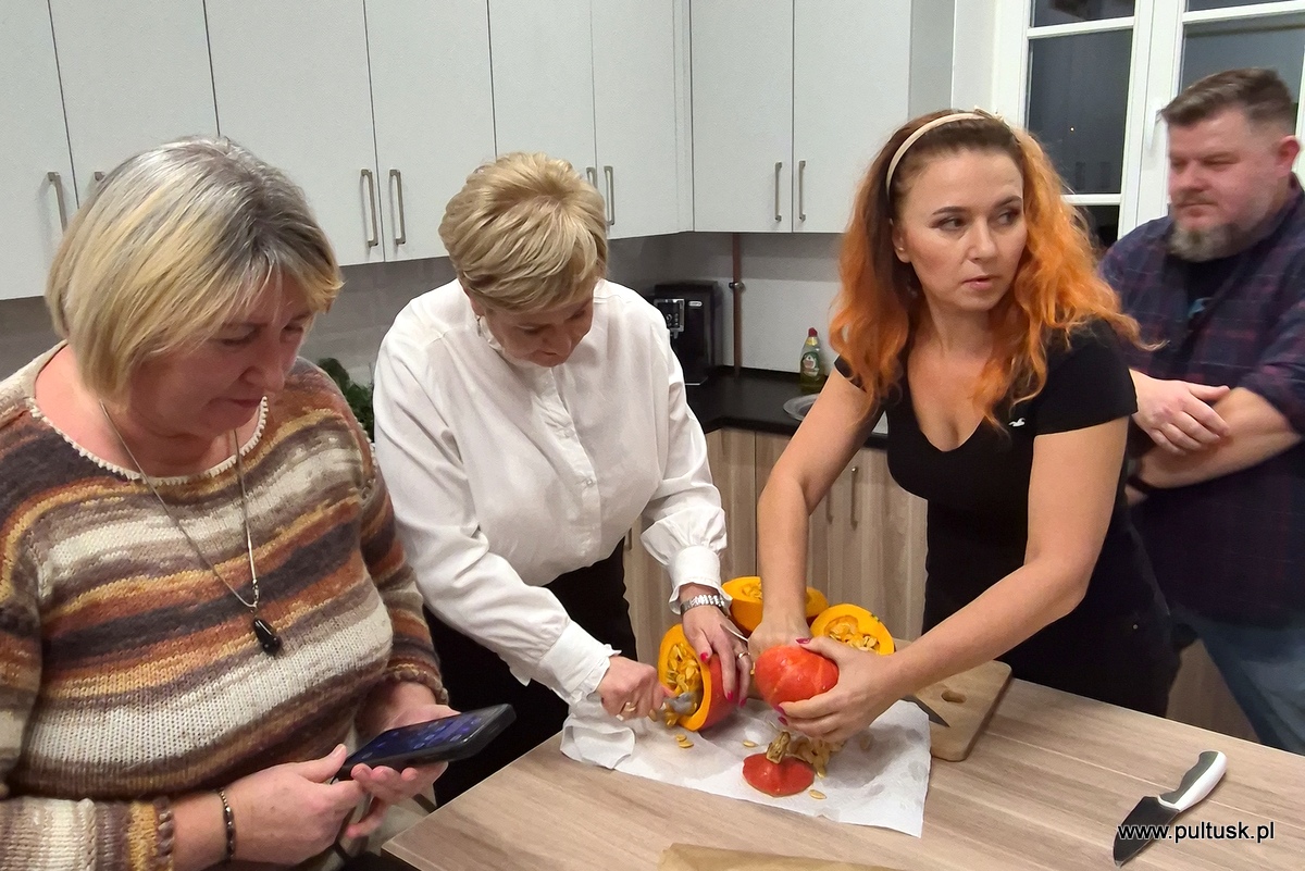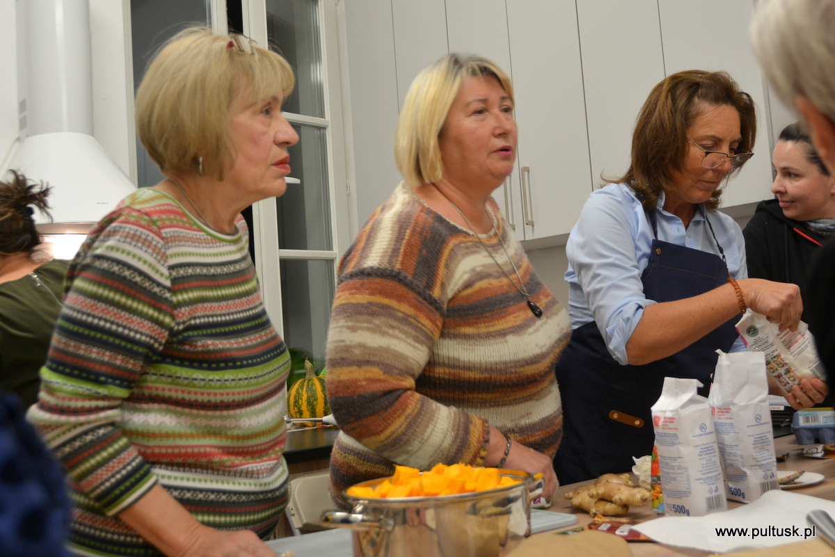 W piątek, 8 listopada 2024 r. w Centrum Dziedzictwa Kulturowego w Pułtusku, z inicjatywy Burmistrza Miasta Pułtusk Beaty Jóźwiak odbyły się warsztaty kulinarne „Kuchenne czary-mary z dynią”. Spotkanie poprowadziła Dorota Polewaczyk z Fundacji Art- Heart oraz Panie z Koła Gospodyń Wiejskich „Narew” w Kacicach. Licznie zgromadzeni uczestnicy mieli możliwość przygotowania i degustacji pysznych dań „wyczarowanych” głównie z dyni oraz posłuchania ciekawostek dotyczących zasad zdrowego żywienia. Spotkanie odbyło się w ciepłej i miłej atmosferze, a uczestnicy warsztatów okazali wielkie zadowolenie.