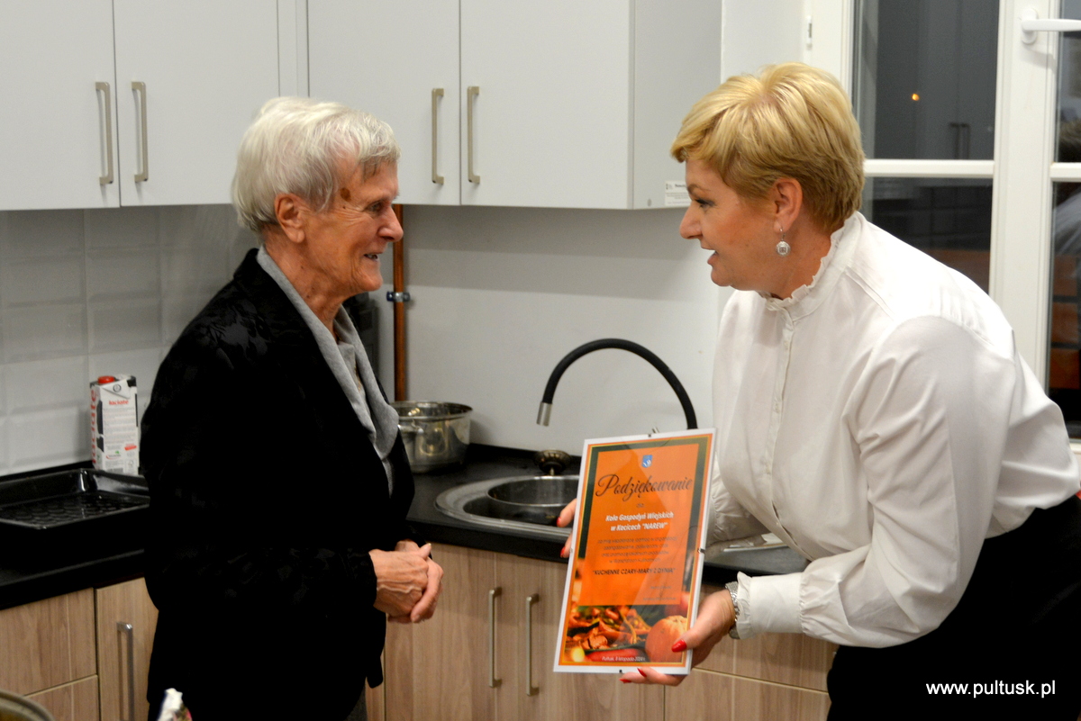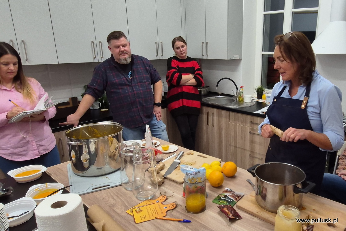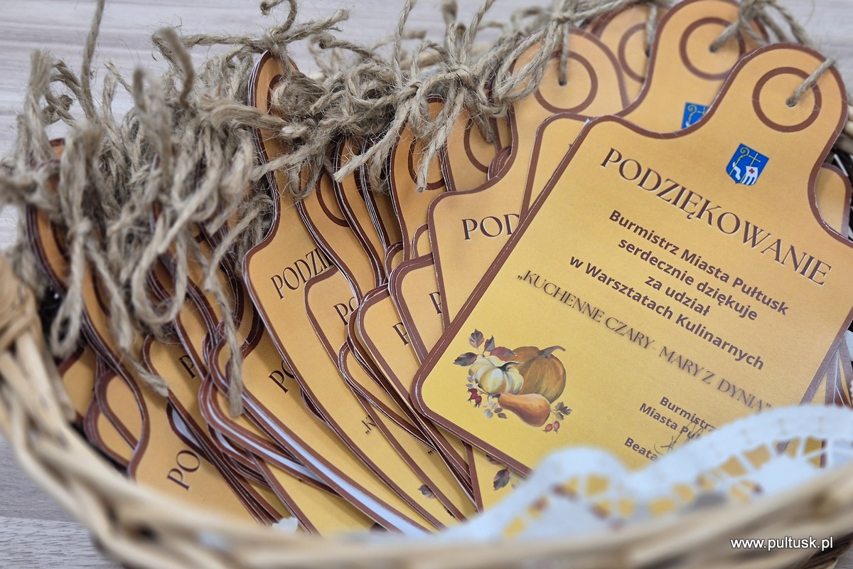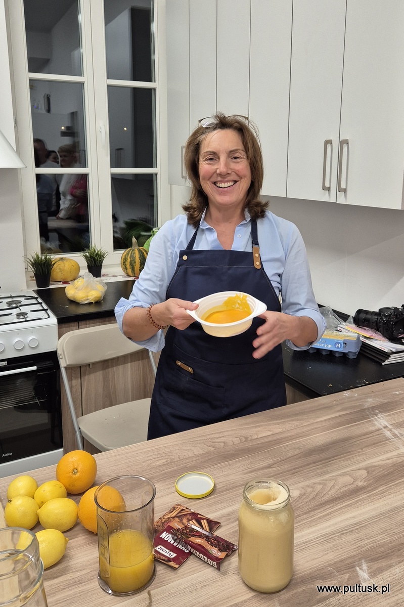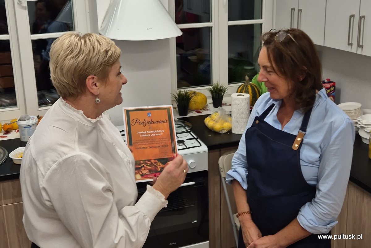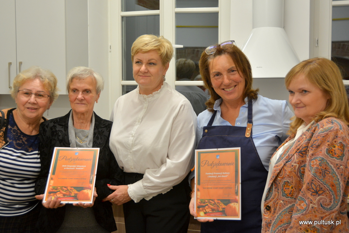 W piątek, 8 listopada 2024 r. w Centrum Dziedzictwa Kulturowego w Pułtusku, z inicjatywy Burmistrza Miasta Pułtusk Beaty Jóźwiak odbyły się warsztaty kulinarne „Kuchenne czary-mary z dynią”. Spotkanie poprowadziła Dorota Polewaczyk z Fundacji Art- Heart oraz Panie z Koła Gospodyń Wiejskich „Narew” w Kacicach. Licznie zgromadzeni uczestnicy mieli możliwość przygotowania i degustacji pysznych dań „wyczarowanych” głównie z dyni oraz posłuchania ciekawostek dotyczących zasad zdrowego żywienia. Spotkanie odbyło się w ciepłej i miłej atmosferze, a uczestnicy warsztatów okazali wielkie zadowolenie.