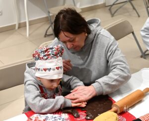 W warsztatach udział wzięli babcie i dziadkowie wraz ze swoimi wnuczętami, wspólnie przygotowując słodkie wypieki. Spotkanie było okazją do integracji międzypokoleniowej, wspólnego spędzenia czasu oraz pielęgnowania tradycji kulinarnych w ciepłej i rodzinnej atmosferze.