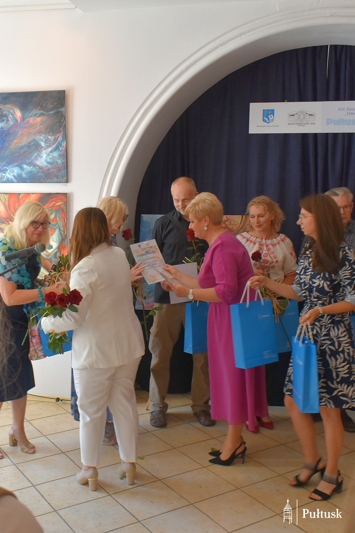 Wszyscy artyści biorący udział w wystawie odebrali z rąk Burmistrz Miasta Pułtusk oraz Dyrektor Miejskiego Centrum Kultury i Sztuki podziękowania, kwiaty i drobne upominki.