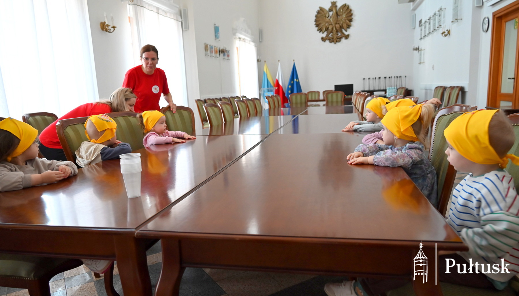 Wizyta rozpoczęła się od powitania przez Sekretarz Miasta Pułtusk Patrycję Kazimierczak, która z serdecznością i wielkanocnymi słodkościami przyjęła młodych gości w sali Rady Miejskiej. Spotkanie zakończyło się wspólnym zdjęciem z Przewodniczącym Rady Miejskiej Łukaszem Skarżyńskim.