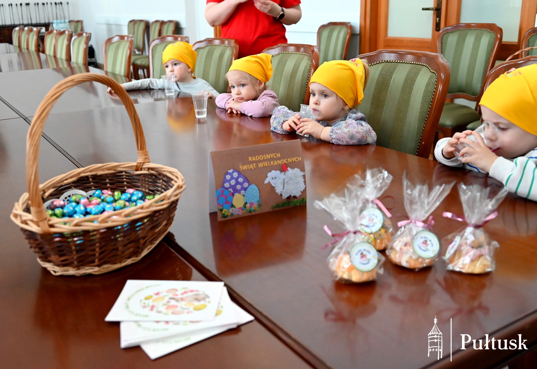 W przedświąteczny czas, pełen radości i przygotowań do Wielkanocy, Urząd Miejski w Pułtusku odwiedziły wyjątkowi goście – maluchy ze Żłobka Miejskiego. Ta wizyta była nie tylko miłym akcentem, ale również pięknym przypomnieniem o tym, jak ważne są gesty płynące prosto z serca, niezależnie od wieku. Dzieci przyniosły ze sobą wielkanocne babeczki do święconki oraz serdeczne życzenia dla pracowników urzędu.