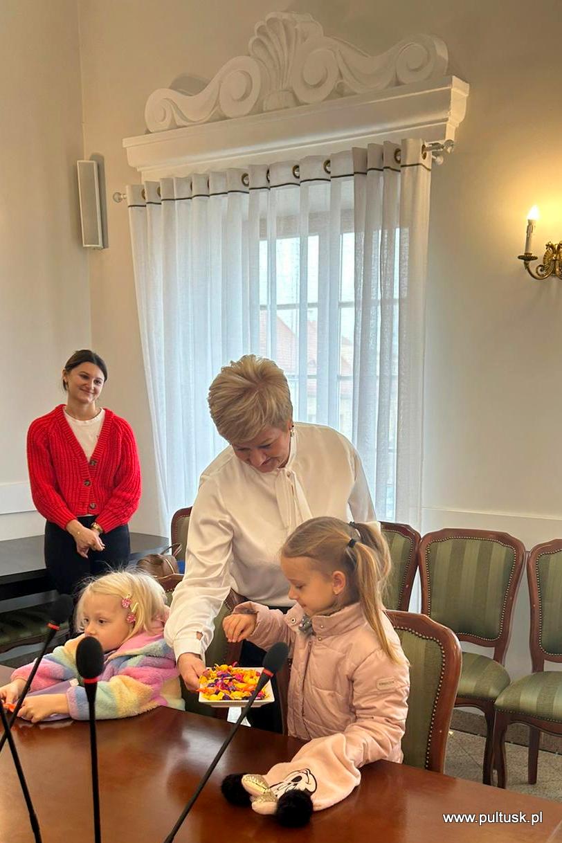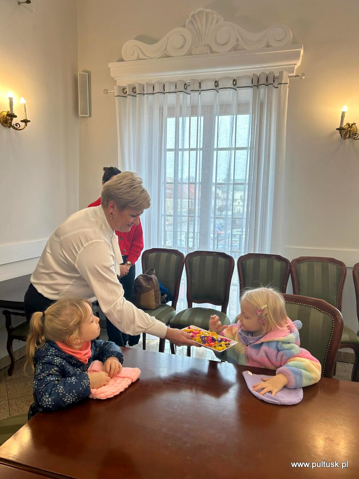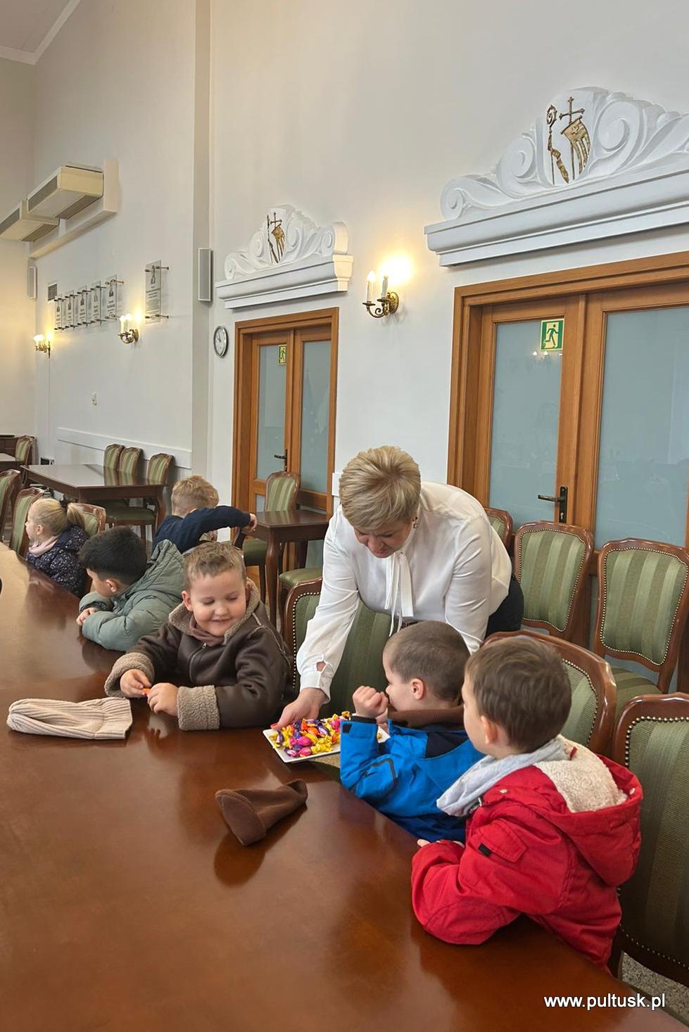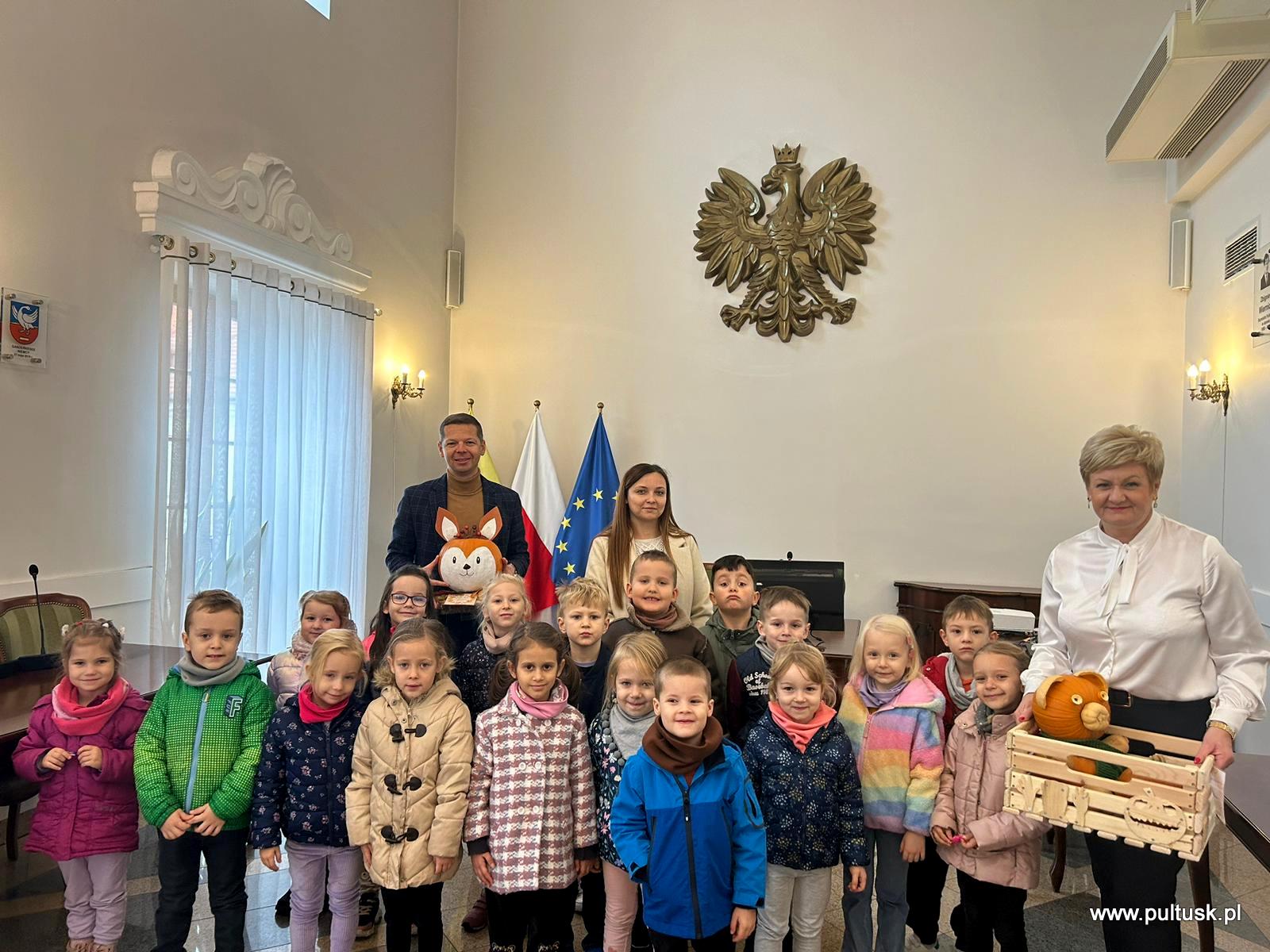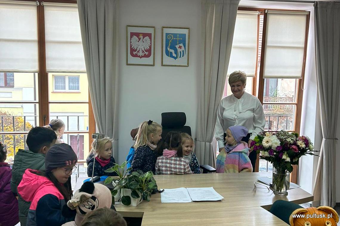 W czwartek, 31 października br., przedszkolaki z Przedszkola Miejskiego Nr 4 z Oddziałami Integracyjnymi w Pułtusku z okazji Święta Dyni odwiedzili w Urzędzie Miejskim Burmistrza Miasta Pułtusk Beatę Jóźwiak i Zastępcę Burmistrza Mateusza Miłoszewskiego, przekazując jesienne, dyniowe prezenty. To była bardzo miła niespodzianka. Dzieci miały okazję porozmawiać z Burmistrzem Miasta Pułtusk, zadać pytania, a także zobaczyć miejsce pracy. Spotkanie przebiegło w miłej i ciepłej atmosferze.
