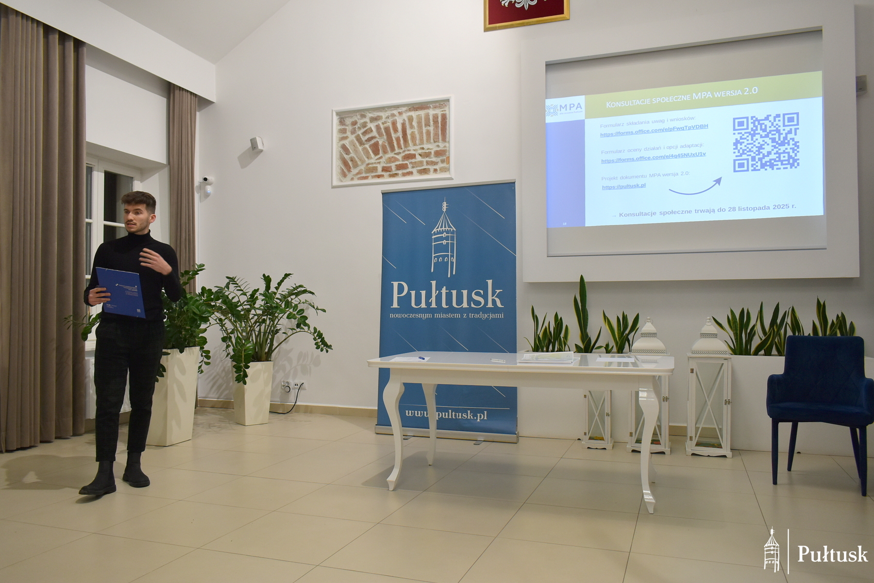 do zmian klimatu dla miasta Pułtusk”. Podczas wydarzenia zaprezentowano najważniejsze założenia planu oraz omówiono kierunki dalszych prac. Udział w konsultacjach był otwarty dla wszystkich zainteresowanych mieszkańców.