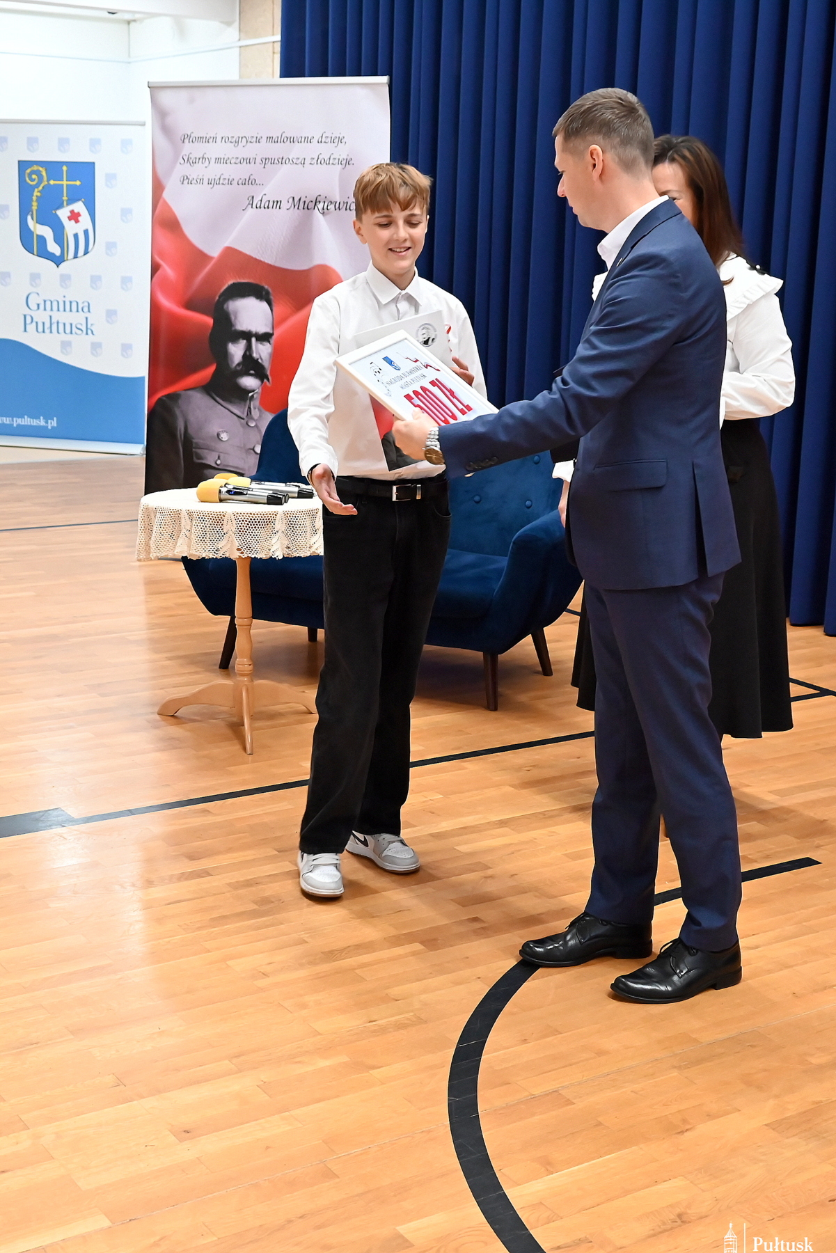 Samorząd Gminy Pułtusk podczas wydarzenia reprezentowali: Burmistrz Miasta Pułtusk Beata Jóźwiak oraz Zastępca Burmistrza Miasta Pułtusk Mateusz Miłoszewski, który wręczył nagrodę dla zwycięzcy w kategorii Pieśń Patriotyczna dla szkół podstawowych. Wśród widowni znaleźli się również m. in.: Wicestarosta Pułtuski Emilia Gąsecka, dyrektorzy jednostek Powiatu i Gminy oraz Radni Rady Miejskiej w Pułtusku. Poniżej przedstawiamy listę laureatów: