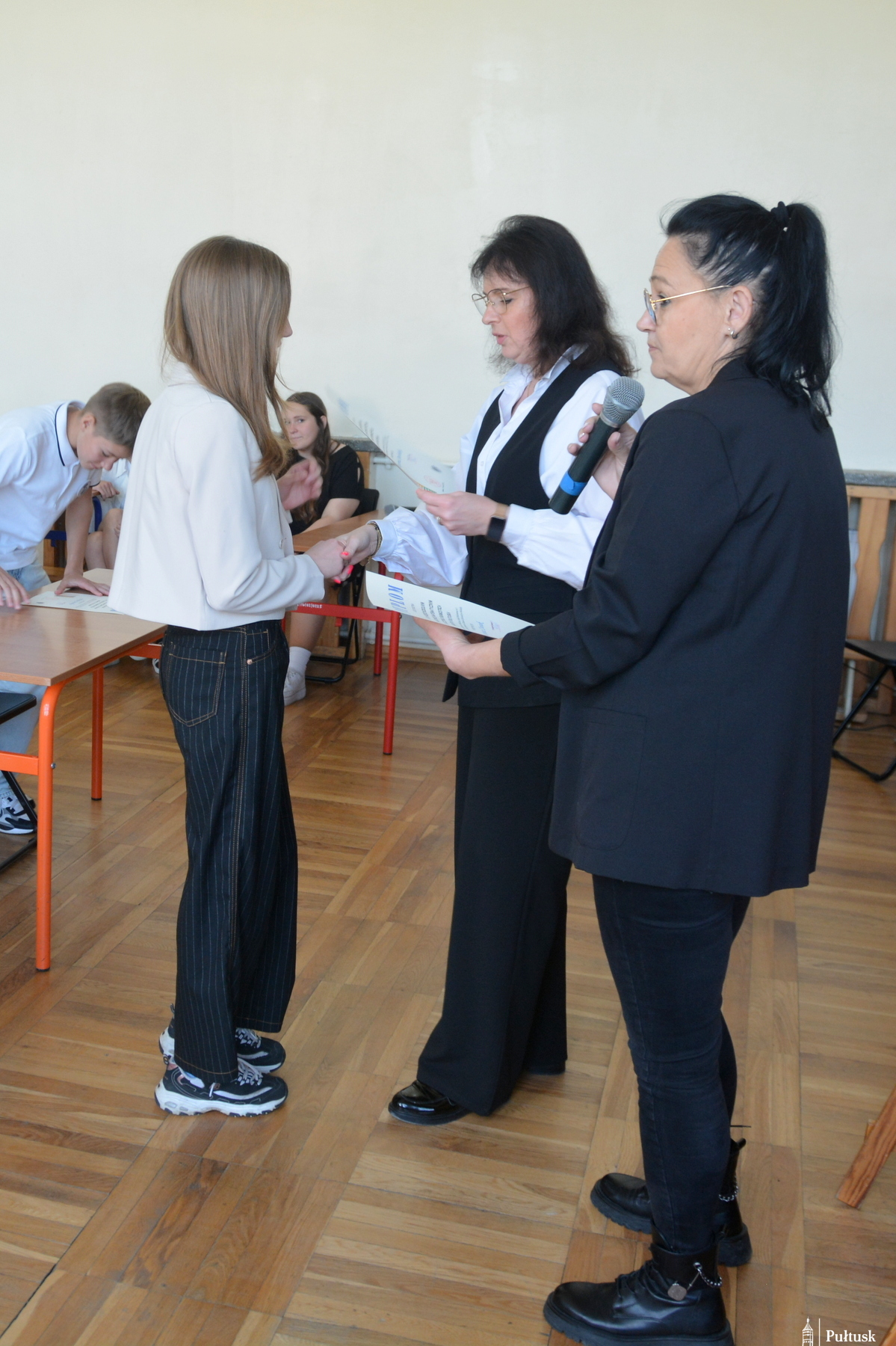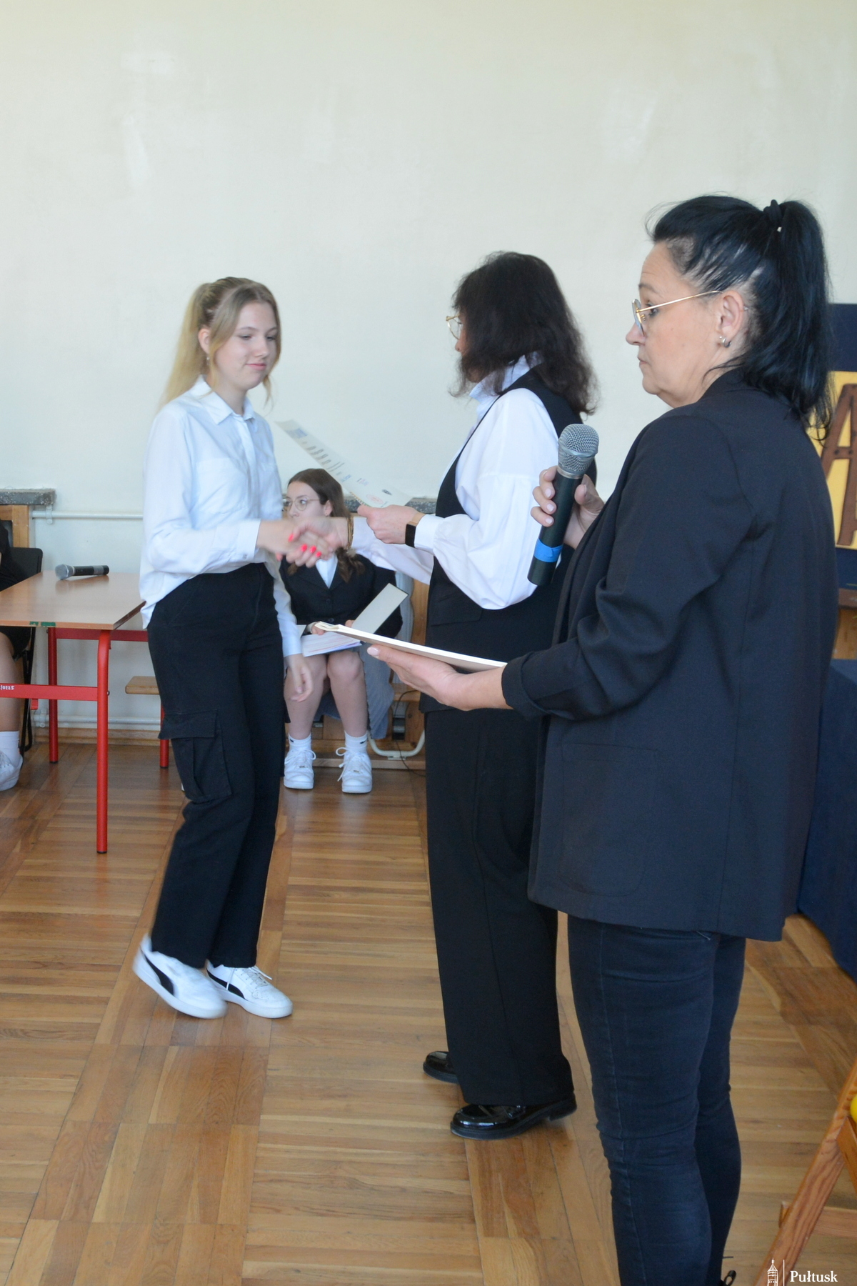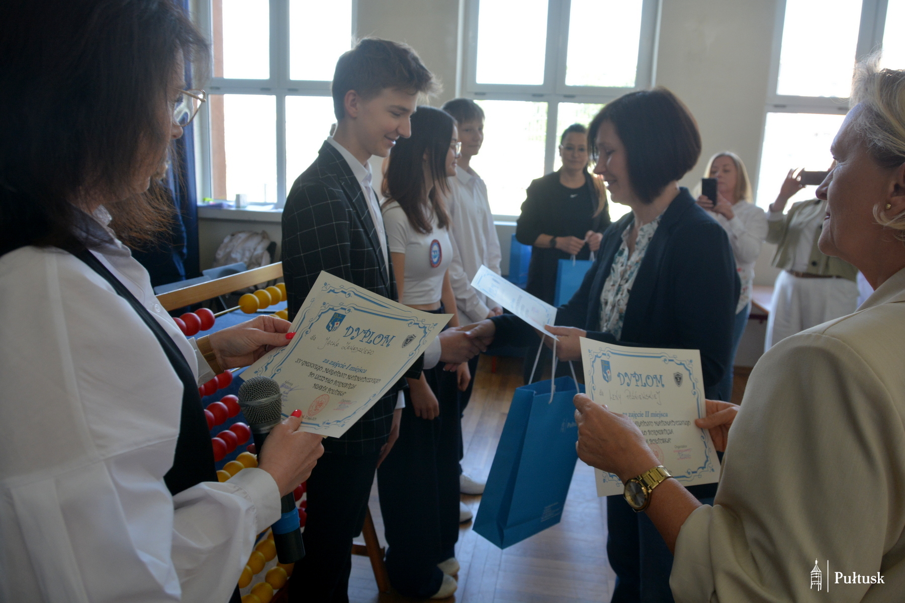 Nagrody laureatom, w imieniu Burmistrza Miasta Pułtusk, wręczyła Pani Maria Wodzyńska, Kierownik Samodzielnego Referatu Edukacji Urzędu Miejskiego w Pułtusku.