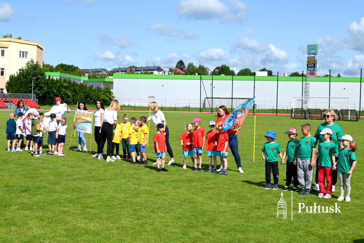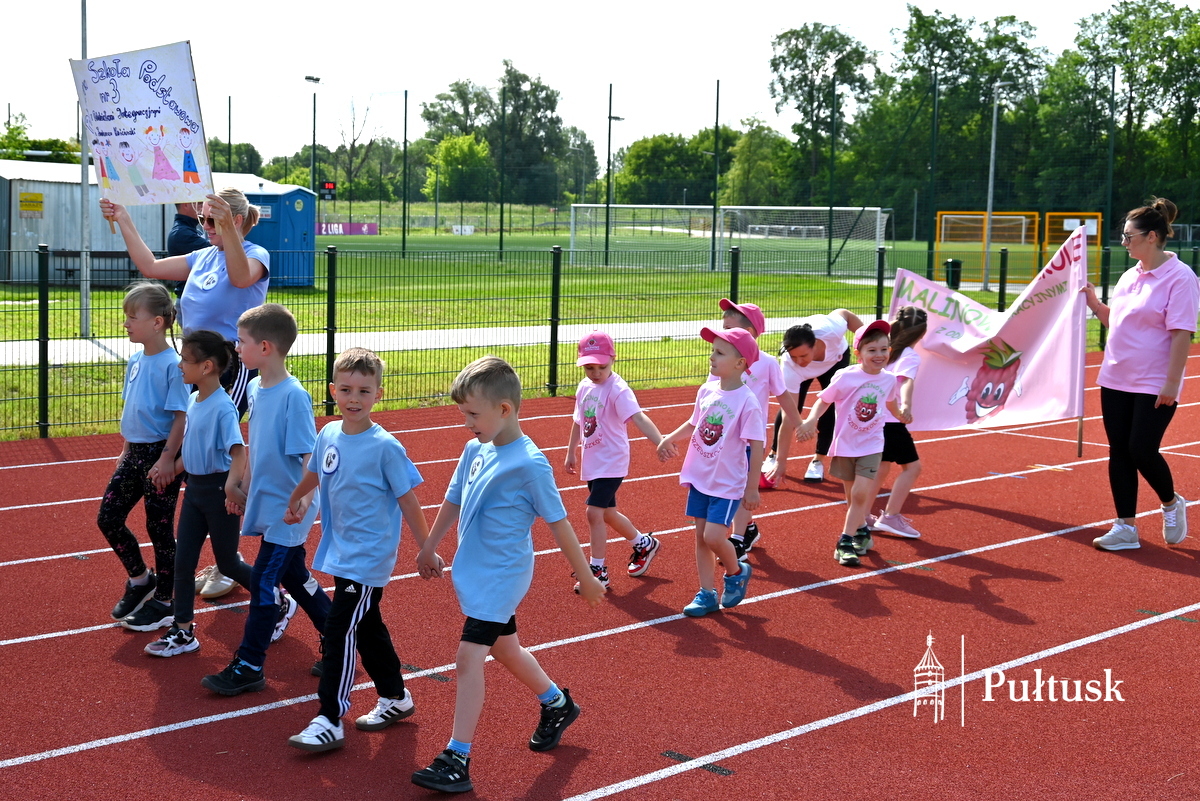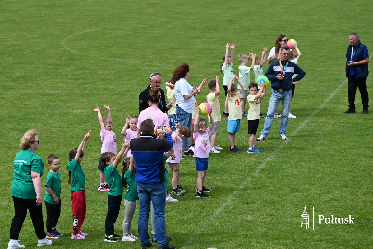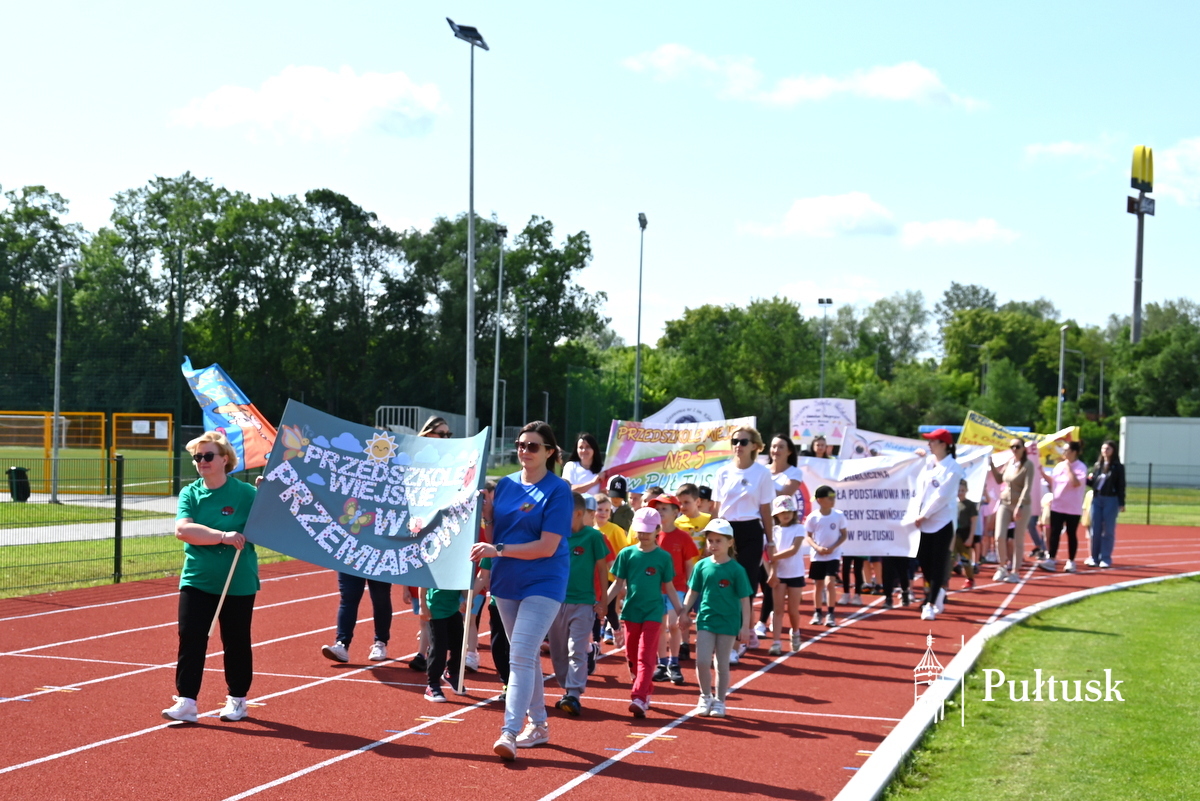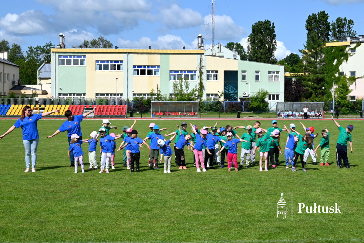 12 czerwca 2025 r. stadion MOSiR wypełnił się dziecięcą radością, ogromną ilością sportowych emocji, piękną i zdrową rywalizacją w XVIII edycji sportowej olimpiady przedszkolaków pod Patronatem Burmistrza Miasta Pułtusk. Organizatorami tegorocznej olimpiady byli: Zespół Zespół Szkolno-Przedszkolny W Przemiarowie oraz tradycyjnie Miejski Ośrodek Sportu i Rekreacji w Pułtusku. Zmagania rozpoczęły się od uroczystego przemarszu reprezentacji przedszkolnych. Następnie uczestnicy obejrzeli występ artystyczny przygotowany przez Gospodarzy wydarzenia. Po zapaleniu znicza olimpijskiego, uroczystego otwarcia wydarzenia dokonali Zastępca Burmistrza Miasta Pułtusk Mateusz Miłoszewski, Dyrektor Zespołu Szkolno-Przedszkolnego Bożena Kościk oraz Dyrektor Miejskiego Ośrodka Sportu i Rekreacji Marta Tyszkiewicz-Wymysłowska. W tegorocznej edycji wzięło udział 11 przedszkoli z terenu Gminy Pułtusk: Przedszkole Wiejskie w Przemiarowie, Malinowe Przedszkole, Przedszkole Miejskie Nr 4 – ul. Krajewskiego oraz ul. Konopnickiej, oddział przedszkolny PSP nr 4, oddział przedszkolny PSP nr 1, oddział przedszkolny PSP nr 3, Przedszkole Miejskie Nr 3, Przedszkole URWIS, Przedszkole Kid’s Academy oraz Przedszkole Miejskie Nr 5. Reprezentacjom przedszkolnym towarzyszyło wielu kibiców na trybunach:opiekunowie rodzice,koleżanki i koledzy.