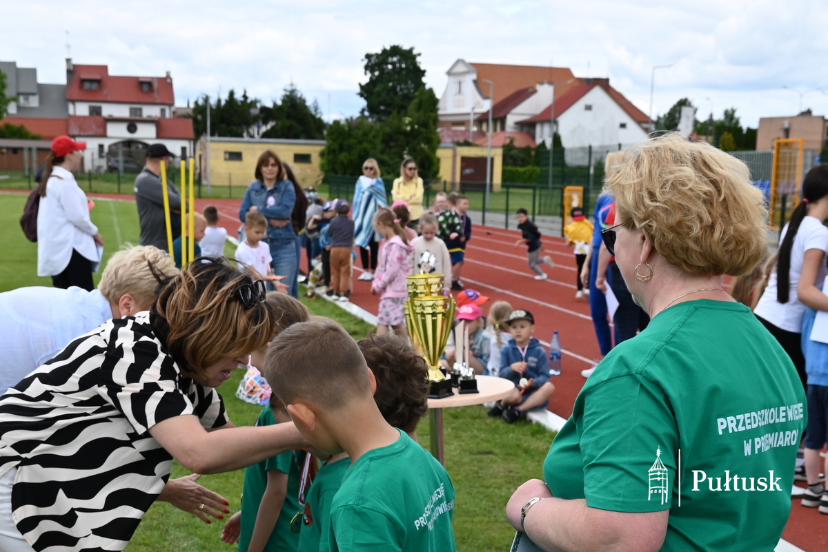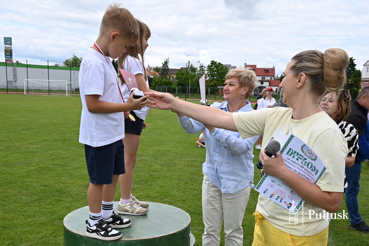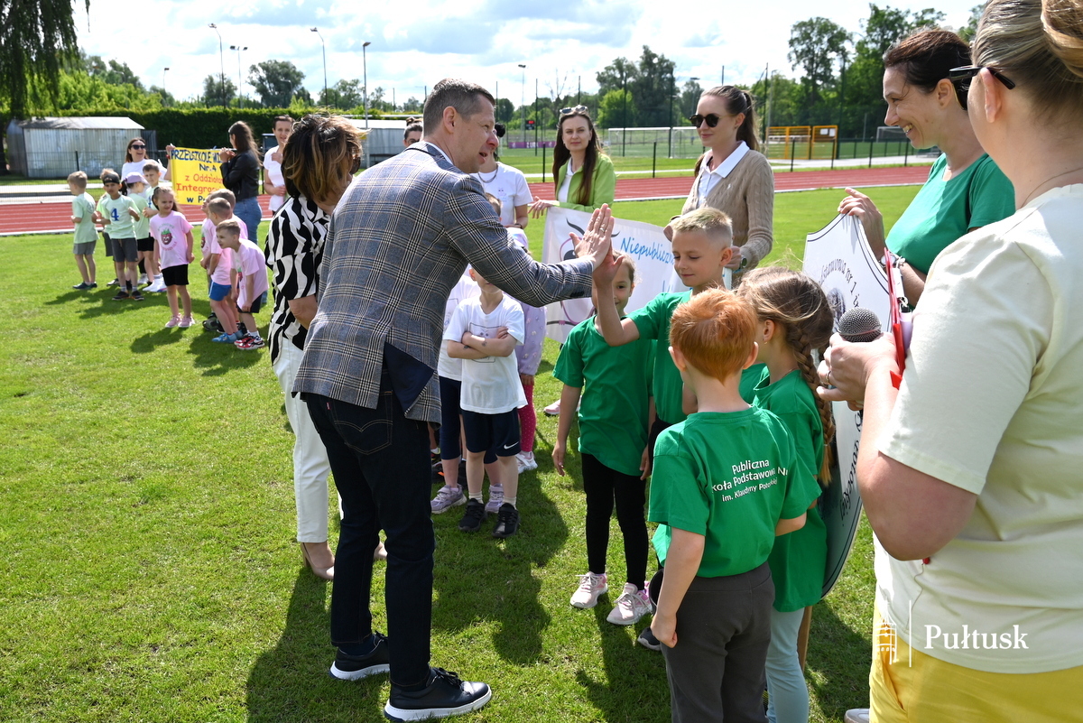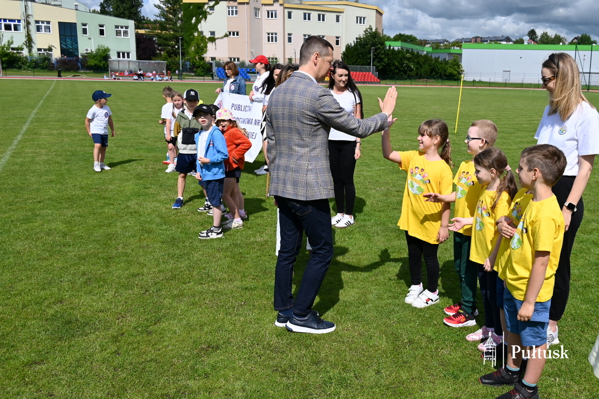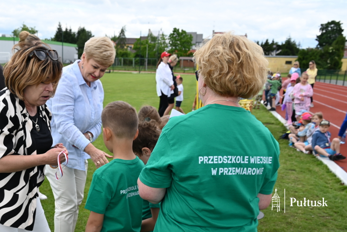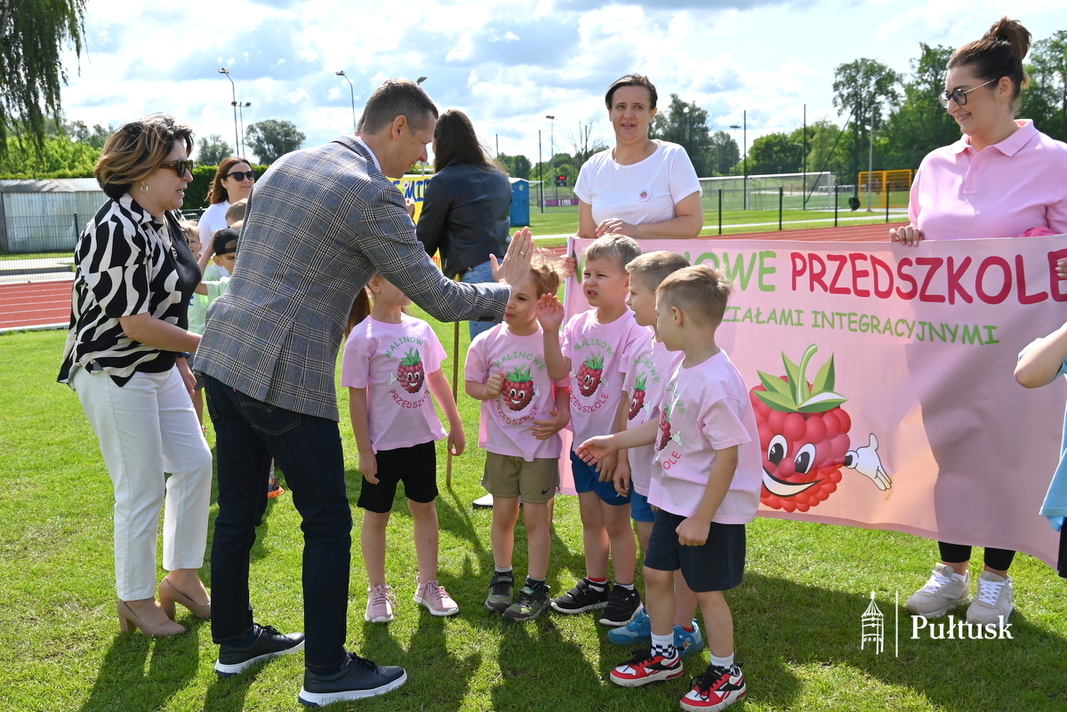 12 czerwca 2025 r. stadion MOSiR wypełnił się dziecięcą radością, ogromną ilością sportowych emocji, piękną i zdrową rywalizacją w XVIII edycji sportowej olimpiady przedszkolaków pod Patronatem Burmistrza Miasta Pułtusk. Organizatorami tegorocznej olimpiady byli: Zespół Zespół Szkolno-Przedszkolny W Przemiarowie oraz tradycyjnie Miejski Ośrodek Sportu i Rekreacji w Pułtusku. Zmagania rozpoczęły się od uroczystego przemarszu reprezentacji przedszkolnych. Następnie uczestnicy obejrzeli występ artystyczny przygotowany przez Gospodarzy wydarzenia. Po zapaleniu znicza olimpijskiego, uroczystego otwarcia wydarzenia dokonali Zastępca Burmistrza Miasta Pułtusk Mateusz Miłoszewski, Dyrektor Zespołu Szkolno-Przedszkolnego Bożena Kościk oraz Dyrektor Miejskiego Ośrodka Sportu i Rekreacji Marta Tyszkiewicz-Wymysłowska. W tegorocznej edycji wzięło udział 11 przedszkoli z terenu Gminy Pułtusk: Przedszkole Wiejskie w Przemiarowie, Malinowe Przedszkole, Przedszkole Miejskie Nr 4 – ul. Krajewskiego oraz ul. Konopnickiej, oddział przedszkolny PSP nr 4, oddział przedszkolny PSP nr 1, oddział przedszkolny PSP nr 3, Przedszkole Miejskie Nr 3, Przedszkole URWIS, Przedszkole Kid’s Academy oraz Przedszkole Miejskie Nr 5. Reprezentacjom przedszkolnym towarzyszyło wielu kibiców na trybunach:opiekunowie rodzice,koleżanki i koledzy.