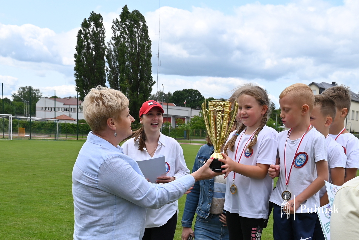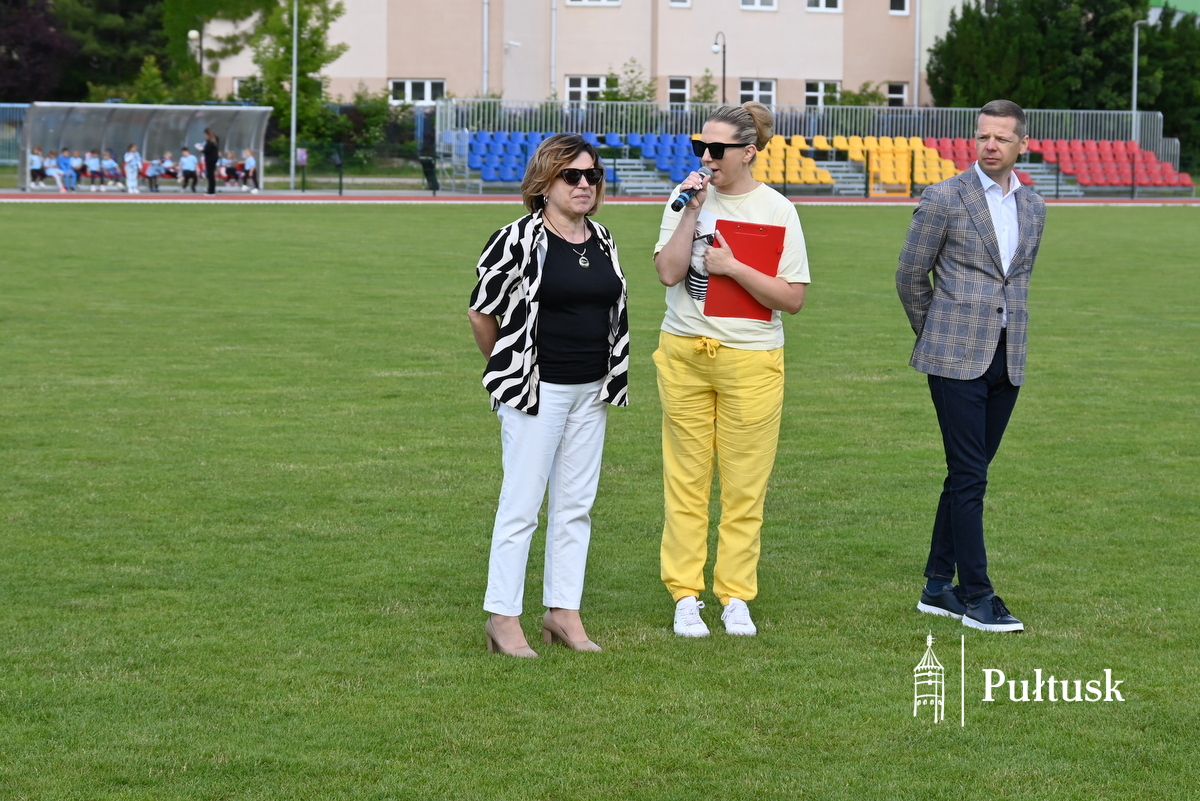 Wręczenia medali, pucharów i dyplomów dokonały: Burmistrz Miasta Pułtusk Beata Jóźwiak, Dyrektor ZSP w Przemiarowie Bożena Kościk oraz Dyrektor MOSiR Marta Tyszkiewicz-Wymysłowska.