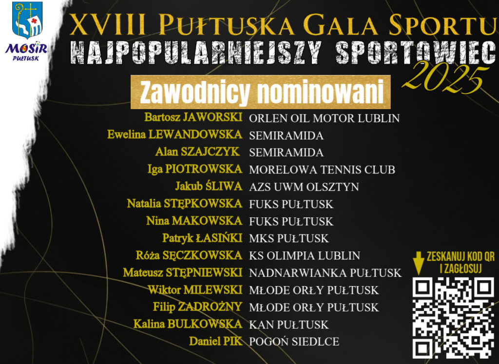 Od 2 marca do 9 marca 2026 r. mogą Państwo wybrać, spośród zawodników nominowanych przez Pułtuską Radę Sportu, NAJPOPULARNIEJSZEGO SPORTOWCA ROKU 2025.