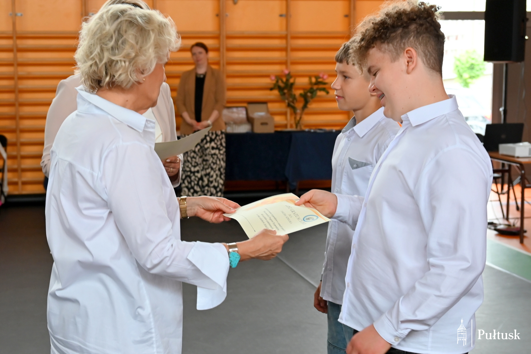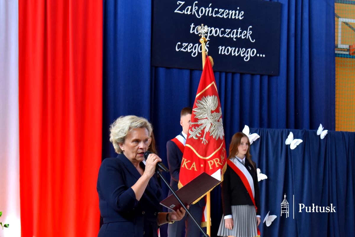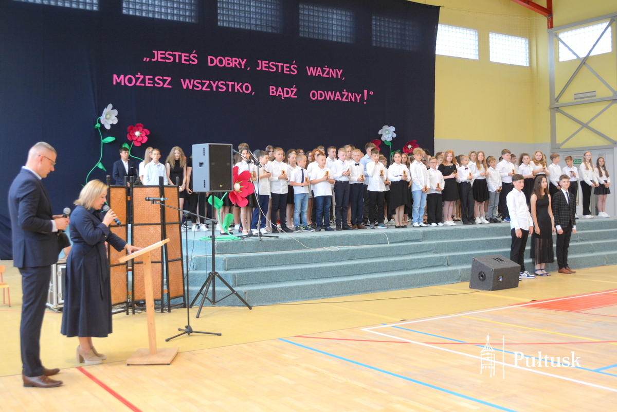 W wydarzeniach udział wzięli przedstawiciele Samorządu Gminy Pułtusk: Burmistrz Miasta Pułtusk Beata Jóźwiak, Zastępca Burmistrza Miasta Pułtusk Mateusz Miłoszewski, Przewodniczący Rady Miejskiej w Pułtusku Łukasz Skarżyński, Sekretarz Miasta Pułtusk Patrycja Kazimierczak oraz Kierownik Samodzielnego Referatu Edukacji Urzędu Miejskiego w Pułtusku Maria Wodzyńska. Podczas uroczystości odczytano skierowany do społeczności szkolnych list Burmistrz Miasta Pułtusk Beaty Jóźwiak z podziękowaniem, gratulacjami i życzeniami dobrego letniego wypoczynku.