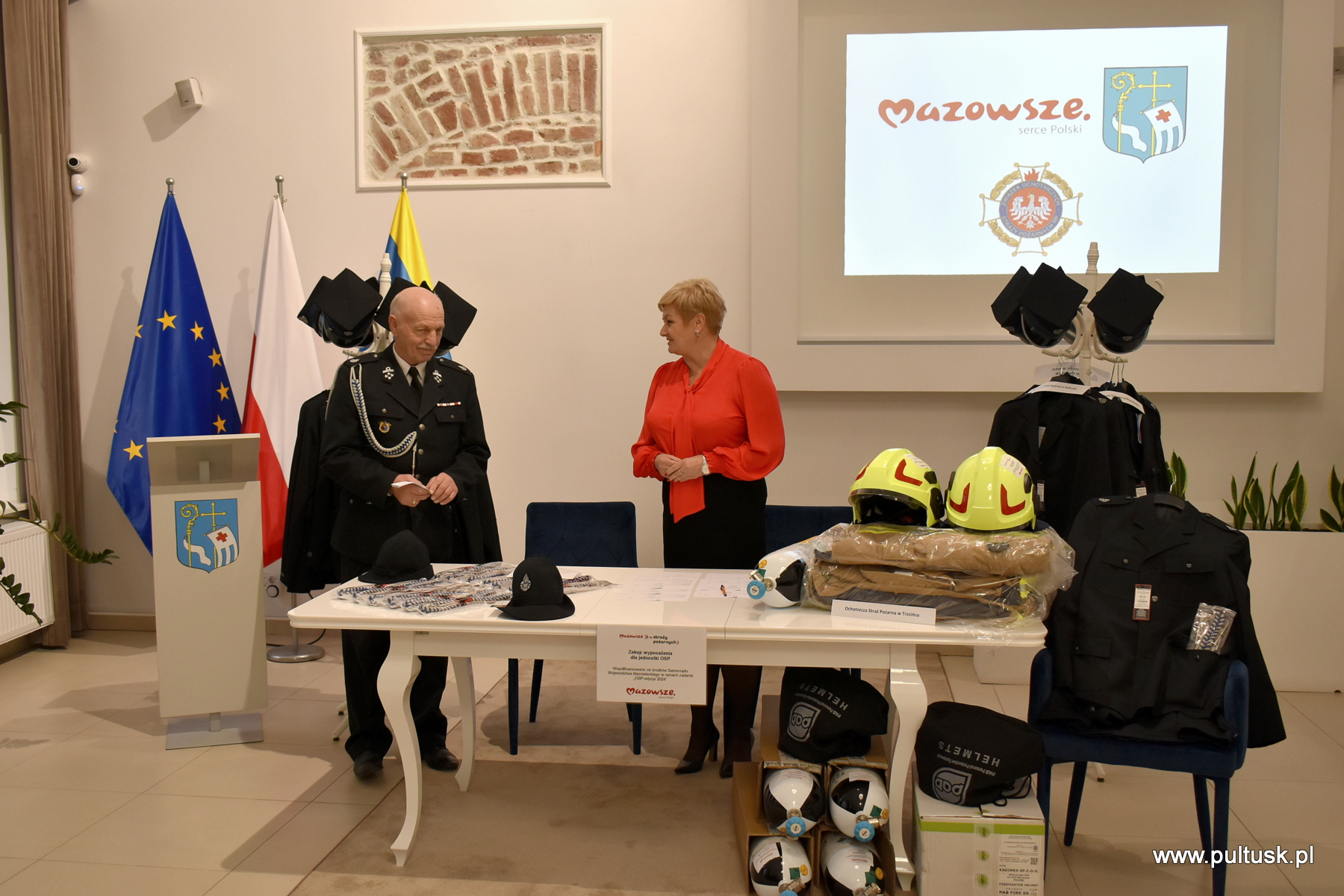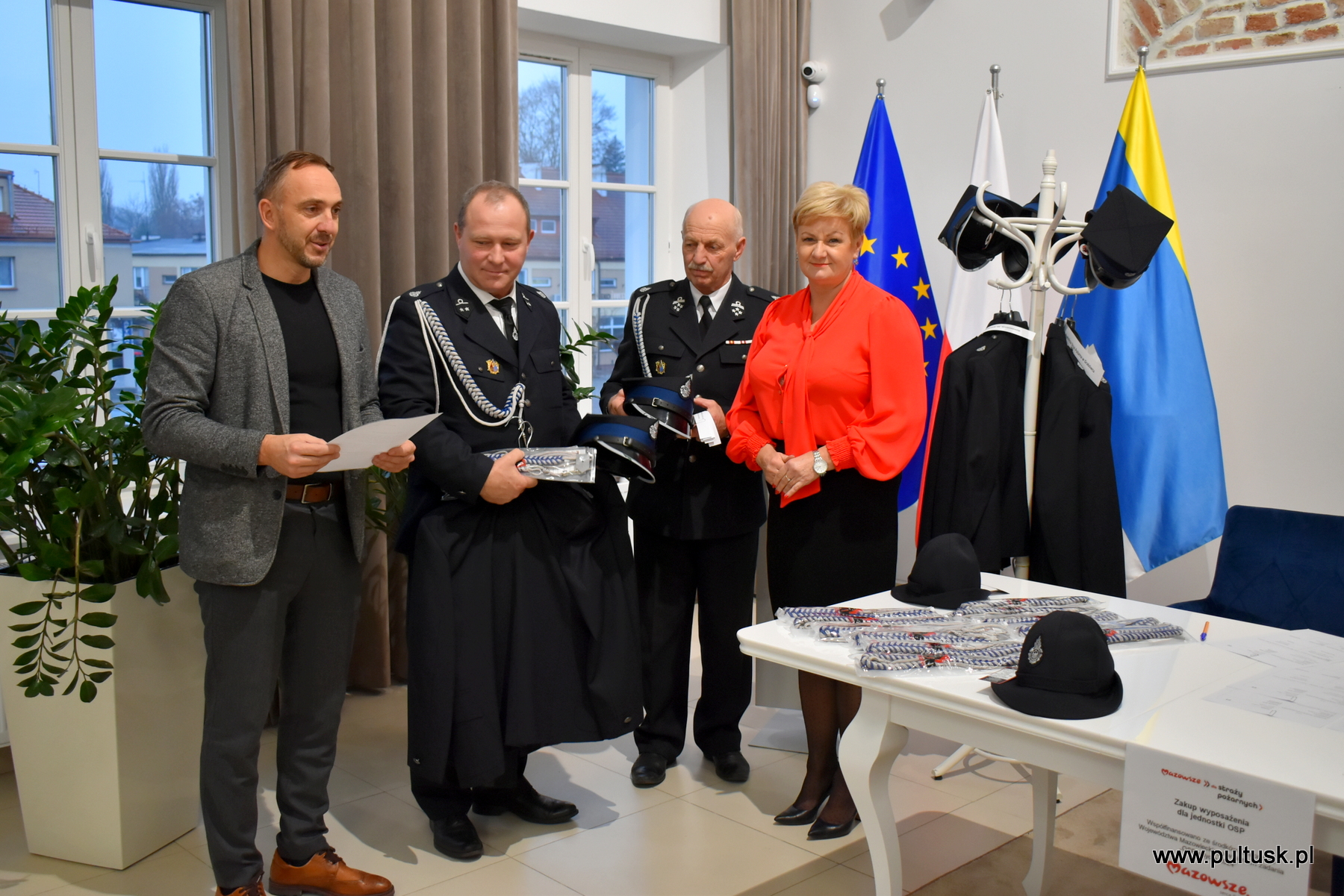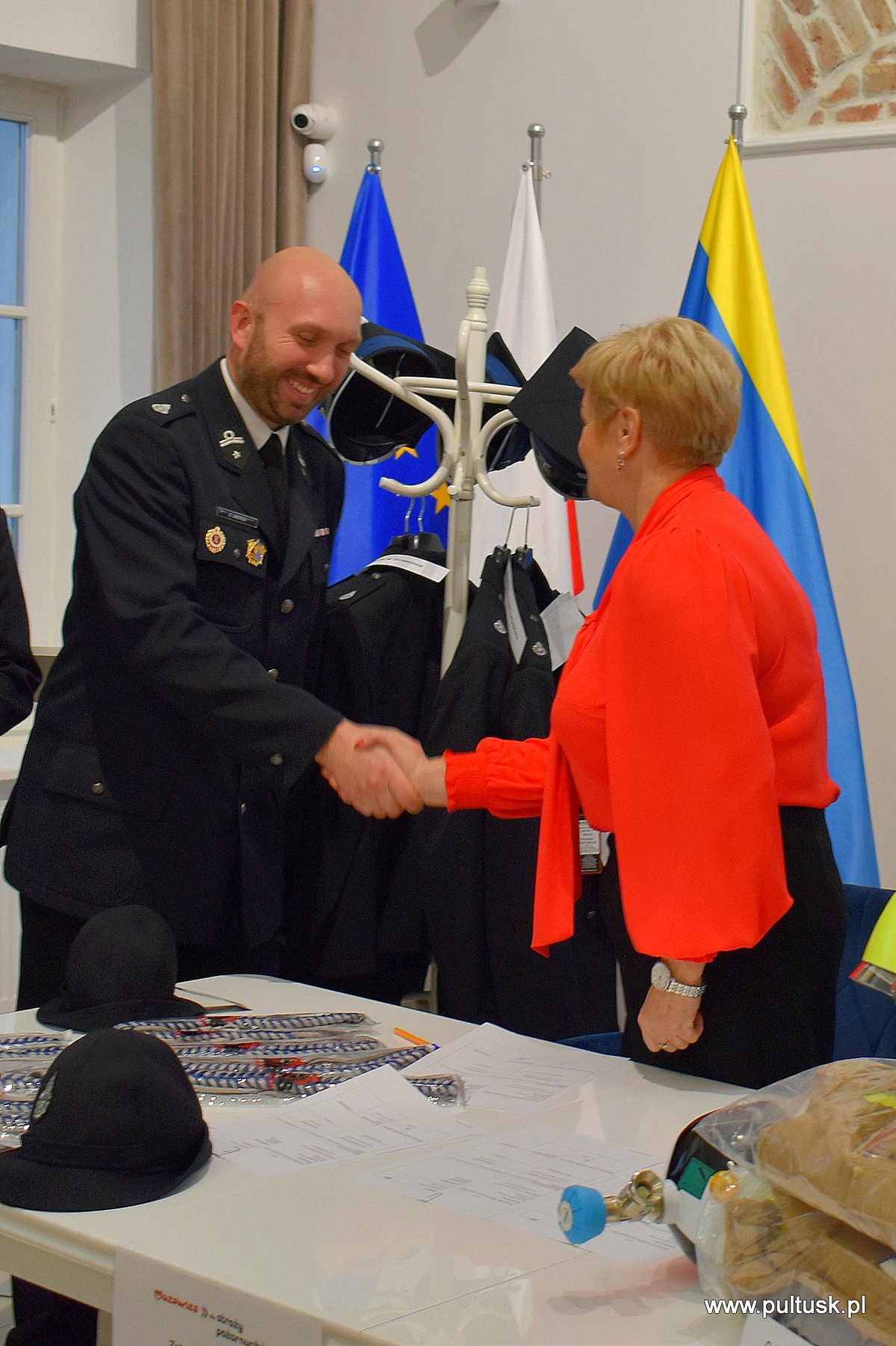 W czwartek 14 listopada br. w związku z umową o pomocy finansowej w ramach Programów wsparcia Samorządu Województwa Mazowieckiego, dotyczącą udzielenia Gminie Pułtusk pomocy finansowej w formie dotacji celowej na dofinansowanie zakupu wyposażenia dla jednostek ochotniczych straży pożarnych z terenu Gminy Pułtusk nastąpiło uroczyste przekazanie sprzętu przez Burmistrza Miasta Pułtusk Beatę Jóźwiak zainteresowanym jednostkom.