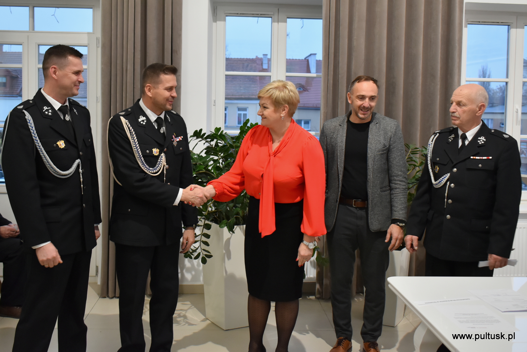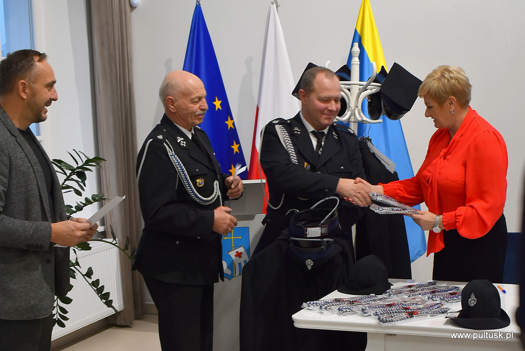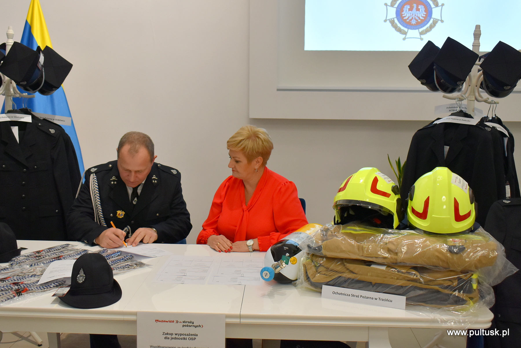 W czwartek 14 listopada br. w związku z umową o pomocy finansowej w ramach Programów wsparcia Samorządu Województwa Mazowieckiego, dotyczącą udzielenia Gminie Pułtusk pomocy finansowej w formie dotacji celowej na dofinansowanie zakupu wyposażenia dla jednostek ochotniczych straży pożarnych z terenu Gminy Pułtusk nastąpiło uroczyste przekazanie sprzętu przez Burmistrza Miasta Pułtusk Beatę Jóźwiak zainteresowanym jednostkom.