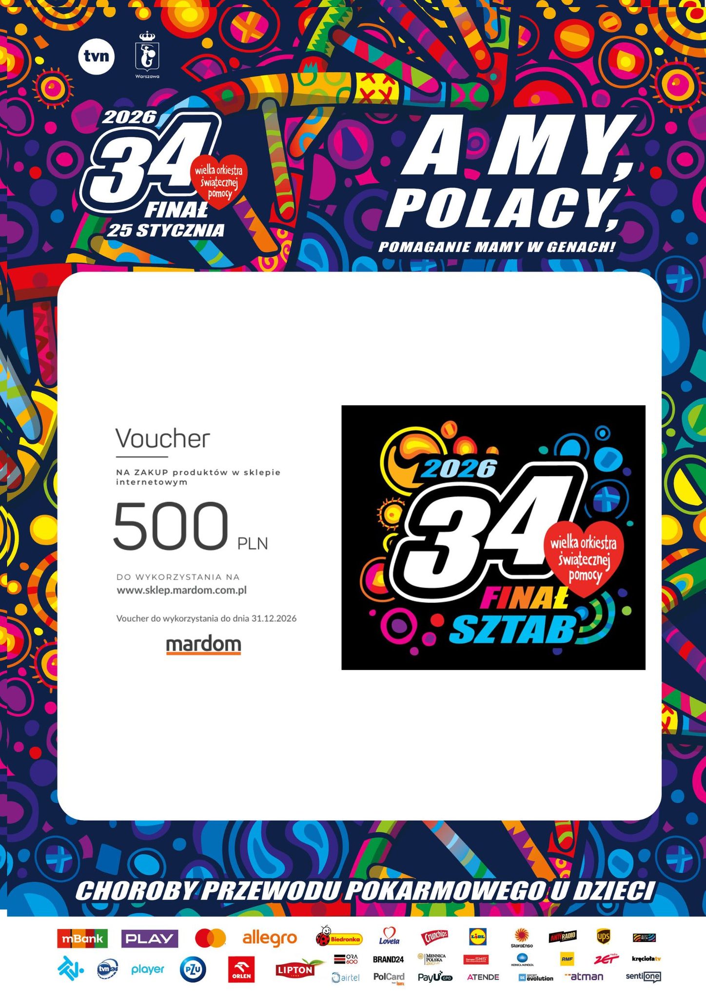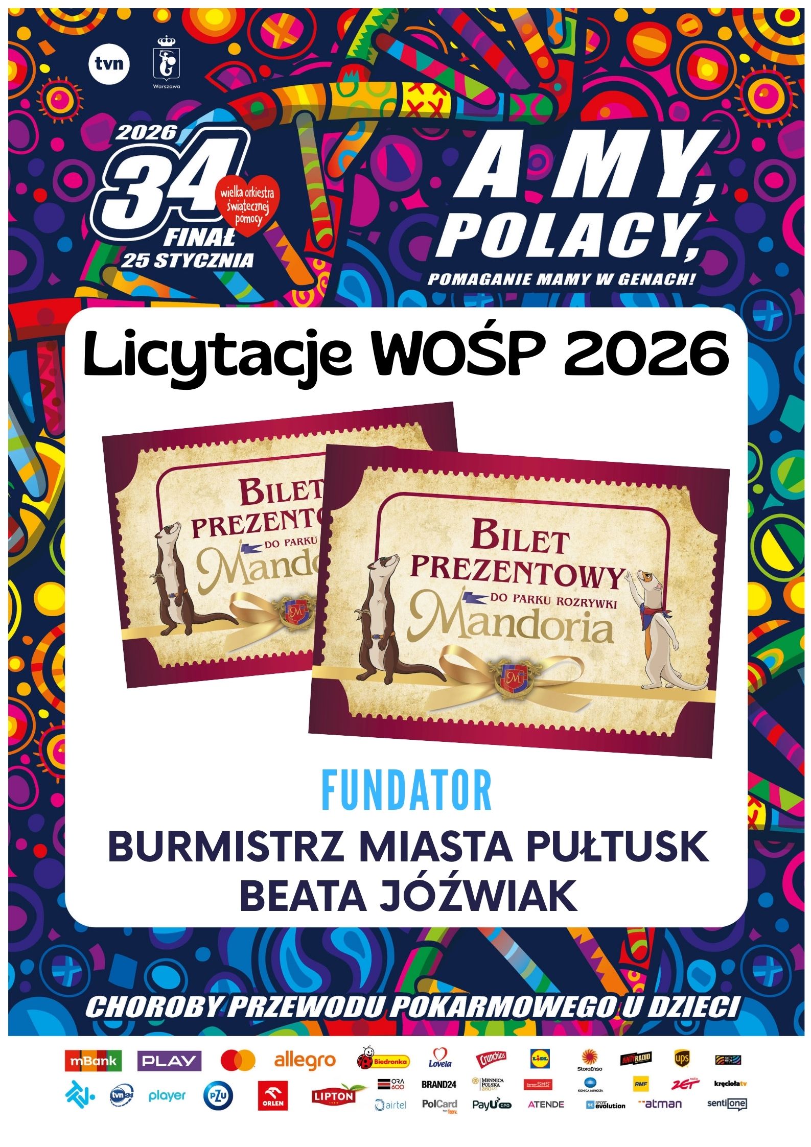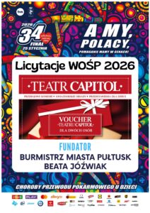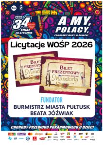 34. Finał Wielkiej Orkiestry Świątecznej Pomocy już 25 stycznia 2026 r. w Liceum Ogólnokształcące im. Piotra Skargi w Pułtusku.