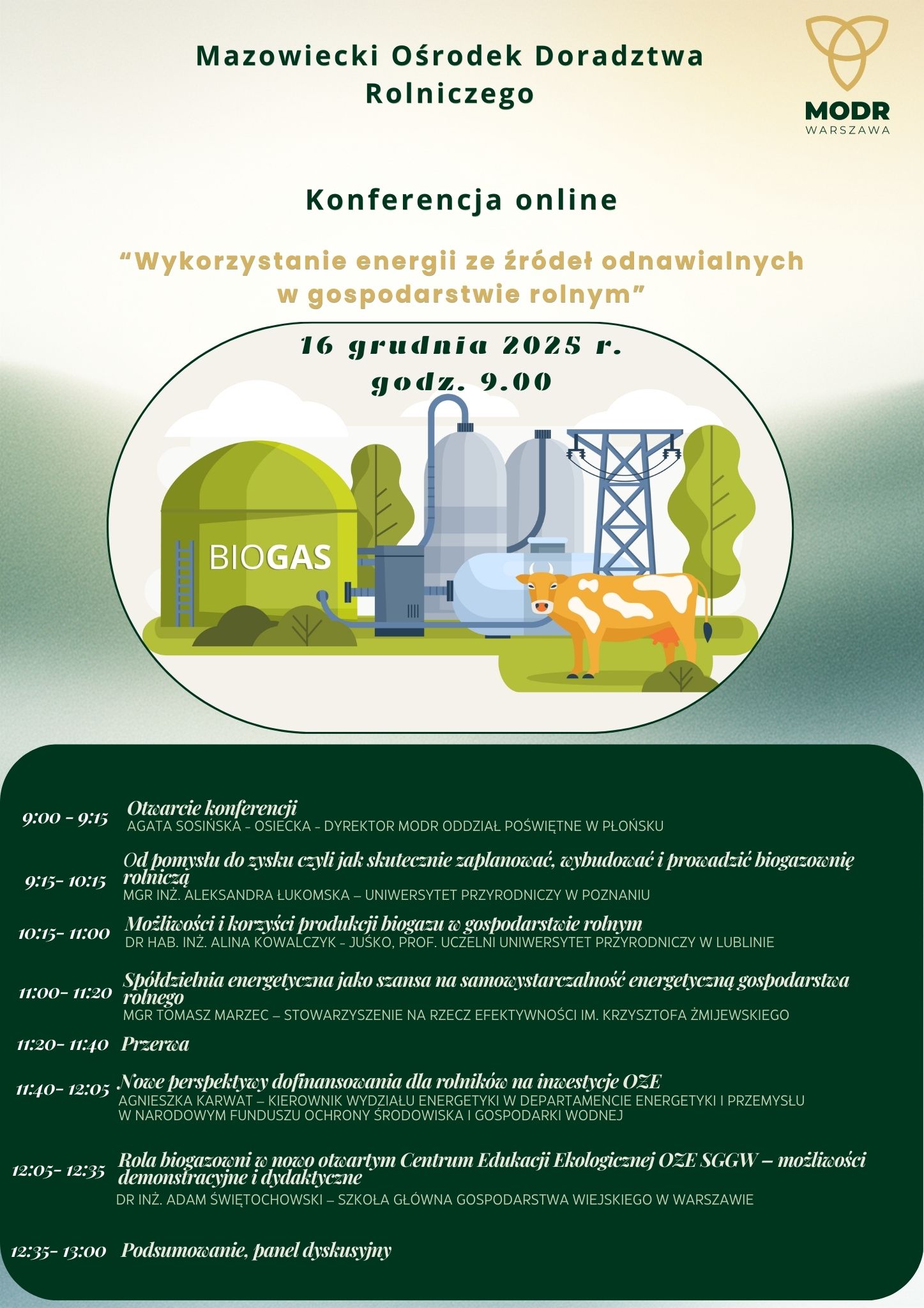 Zapraszamy do udziału w konferencji zdalnej pn. „Wykorzystanie energii ze źródeł odnawialnych w gospodarstwie rolnym”