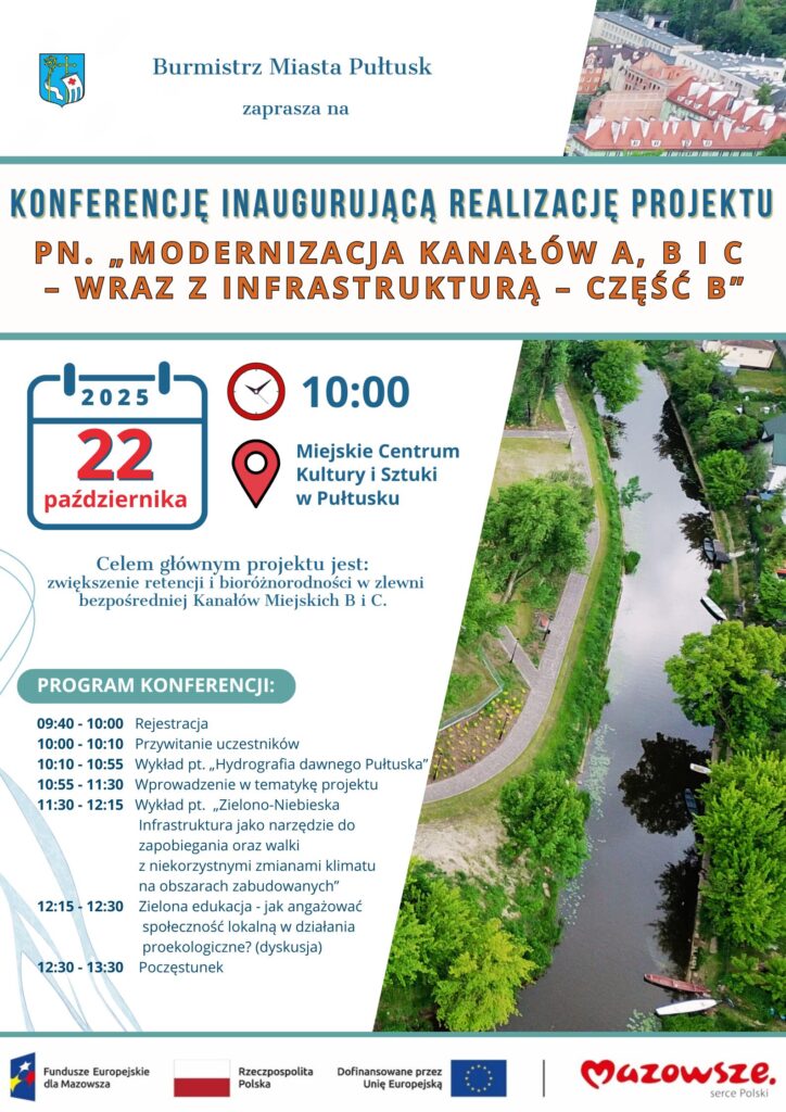 Burmistrz Miasta Pułtusk serdecznie zaprasza na konferencję inaugurującą realizację projektu pn. „Modernizacja kanałów A, B i C – wraz z infrastrukturą – część B”