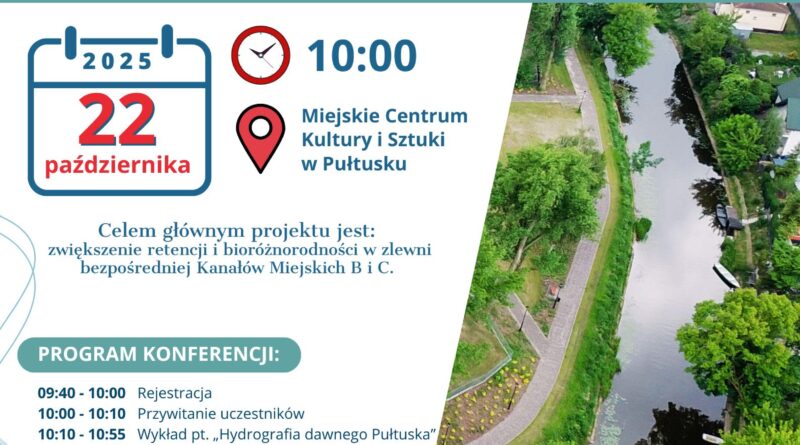 Burmistrz Miasta Pułtusk serdecznie zaprasza na konferencję inaugurującą realizację projektu pn. „Modernizacja kanałów A, B i C – wraz z infrastrukturą – część B”