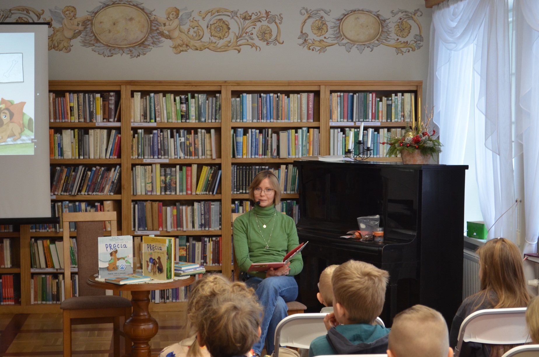 23 stycznia w Pułtuskiej Bibliotece Publicznej im. Joachima Lelewela odbyło się spotkanie z sympatycznym psem Preclem – głównym bohaterem serii książek dla najmłodszych – oraz jego opiekunami: Martą Maj, autorką książek, i Mateuszem Rusem.