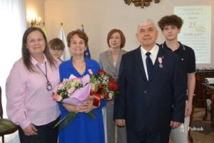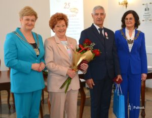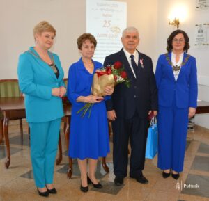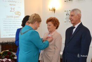 Jubilaci zostali uhonorowani medalami „Za długoletnie pożycie małżeńskie”, nadanymi przez Prezydenta RP. Dekoracji dokonała Burmistrz Miasta Pułtusk Beata Jóźwiak, podkreślając wartość trwałego związku opartego na miłości, zaufaniu i wzajemnym wsparciu. Zaznaczyła, że pół wieku wspólnego życia to nie tylko piękny jubileusz, ale także świadectwo wytrwałości, oddania i siły rodzinnych więzi.